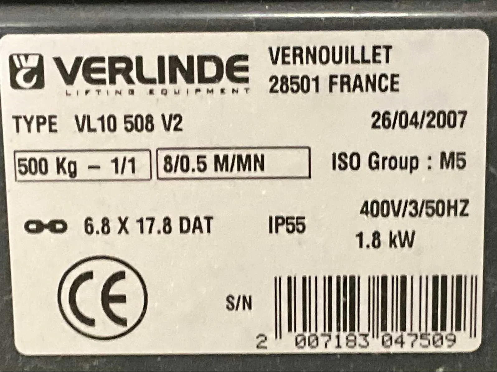 Draadbediend; Merk: Verlinde Type: VL10 508 Bouwjaar: 2007 Capaciteit.: 500kg Aansluiting: 400V