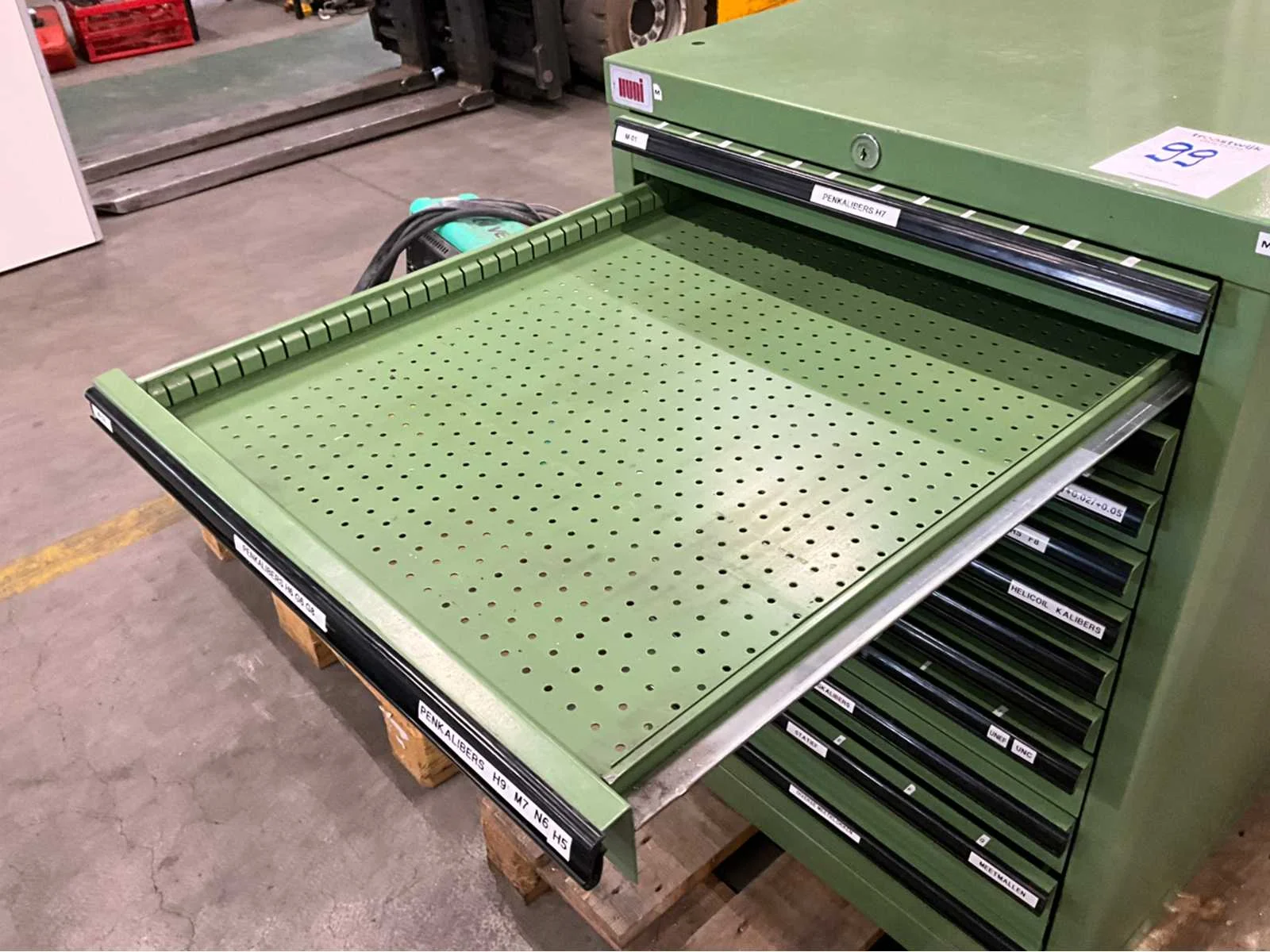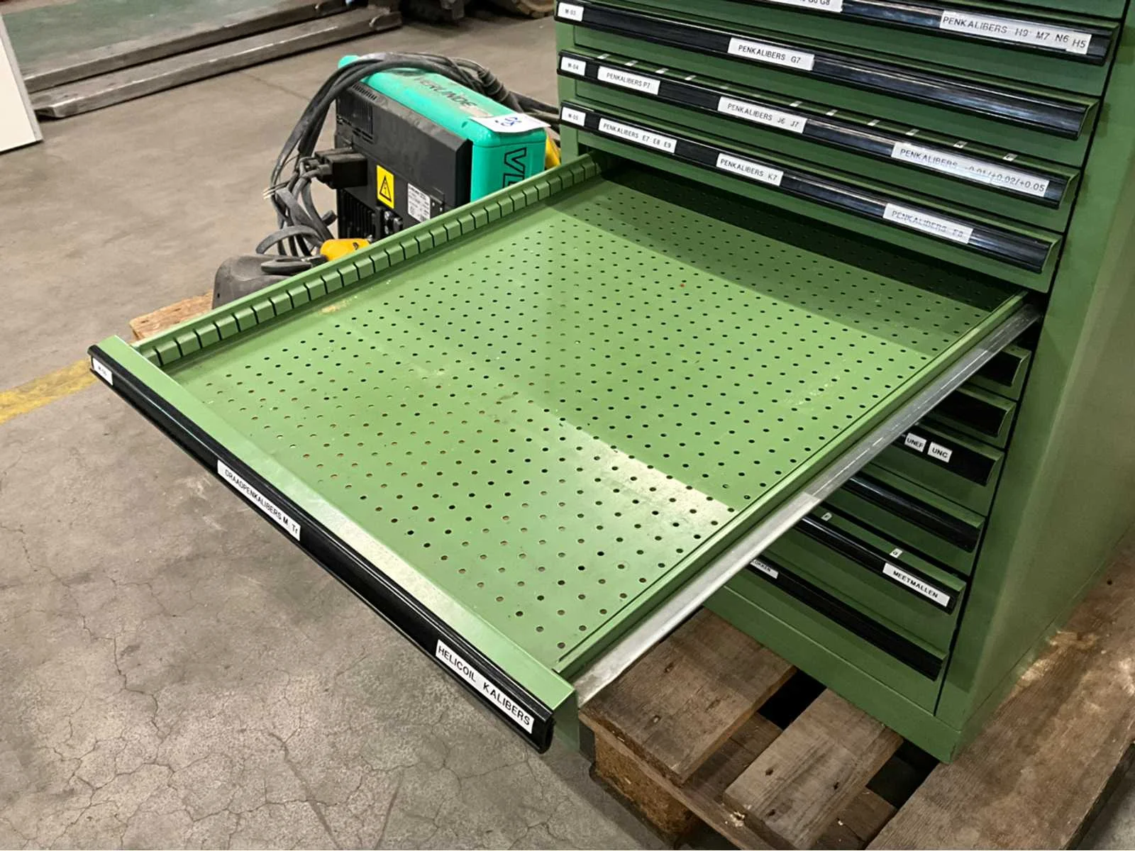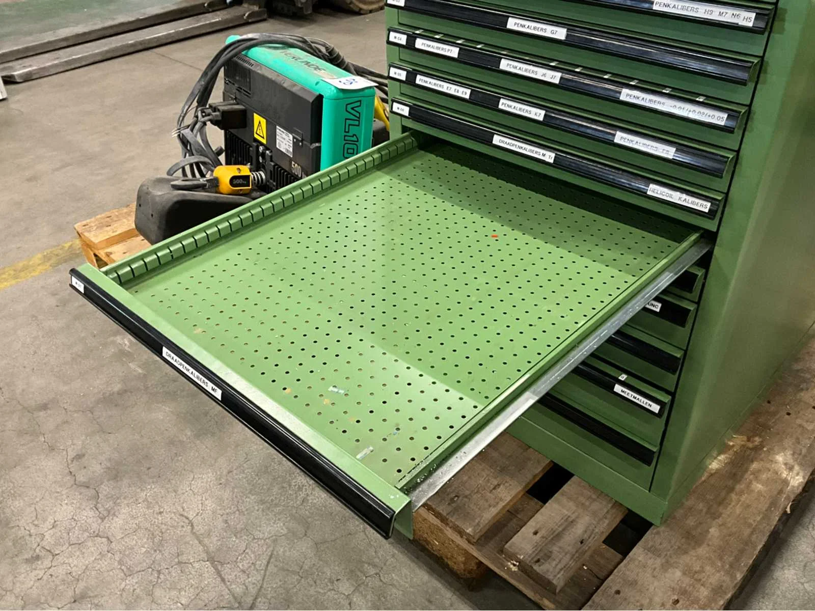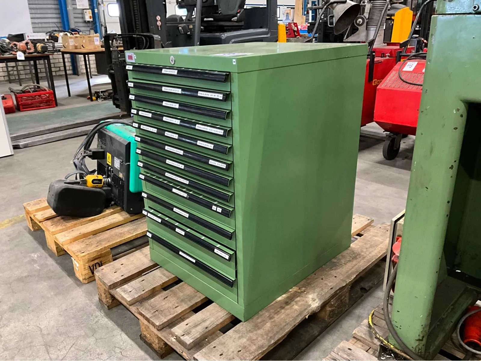 Staal; voorzien van 12 laden; Merk: Huni Lengte: 57cm Breedte: 70cm Hoogte: 90cm