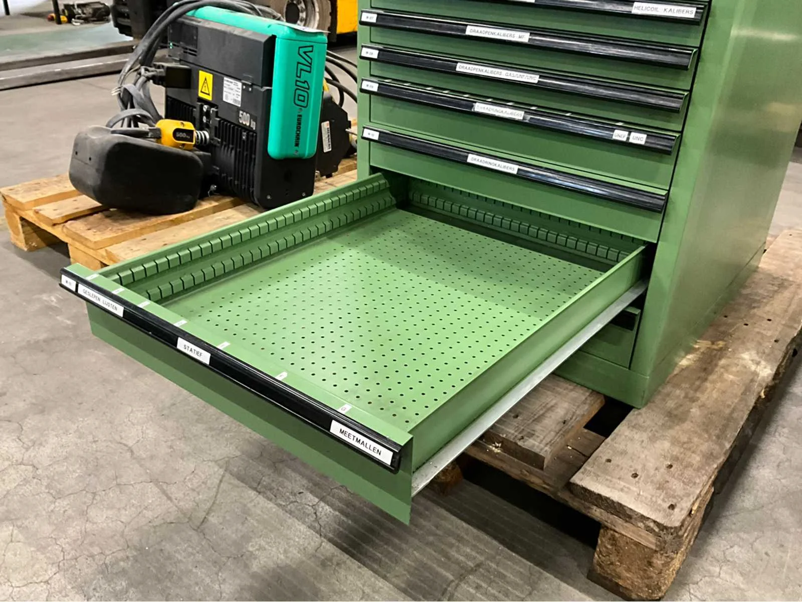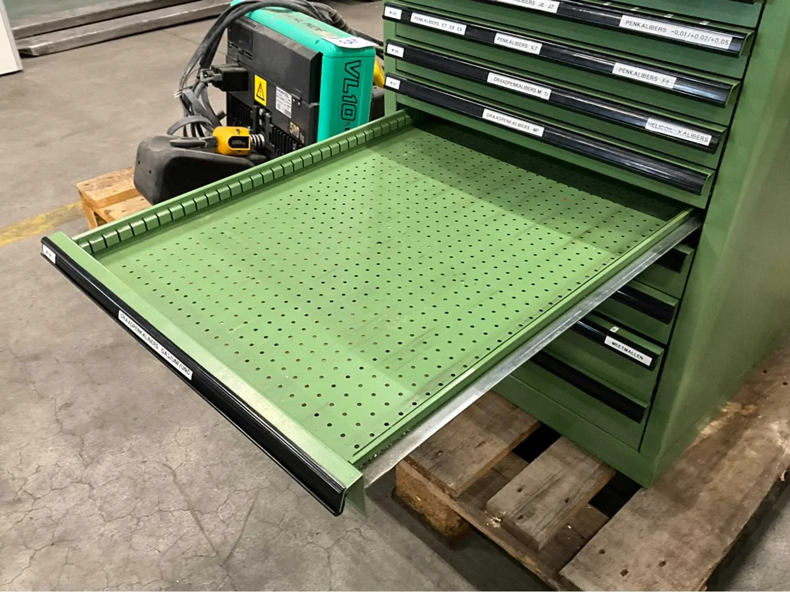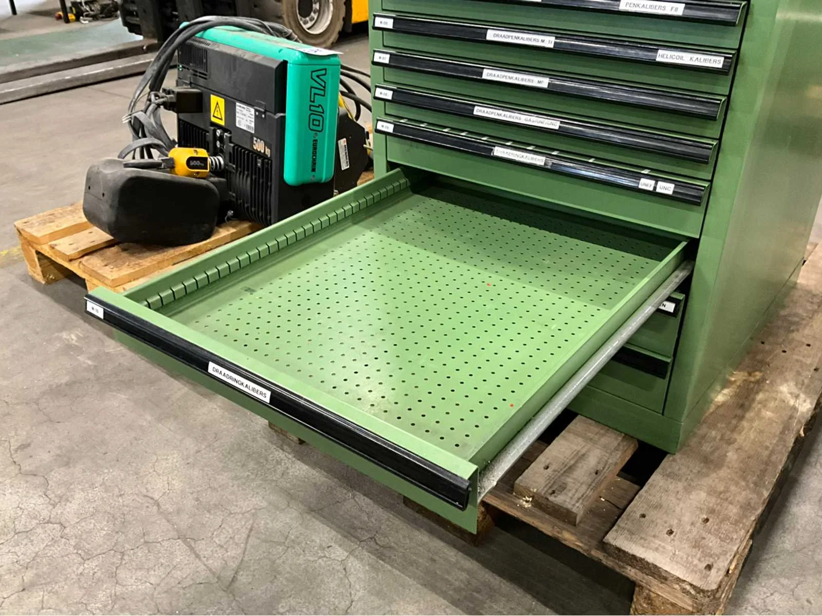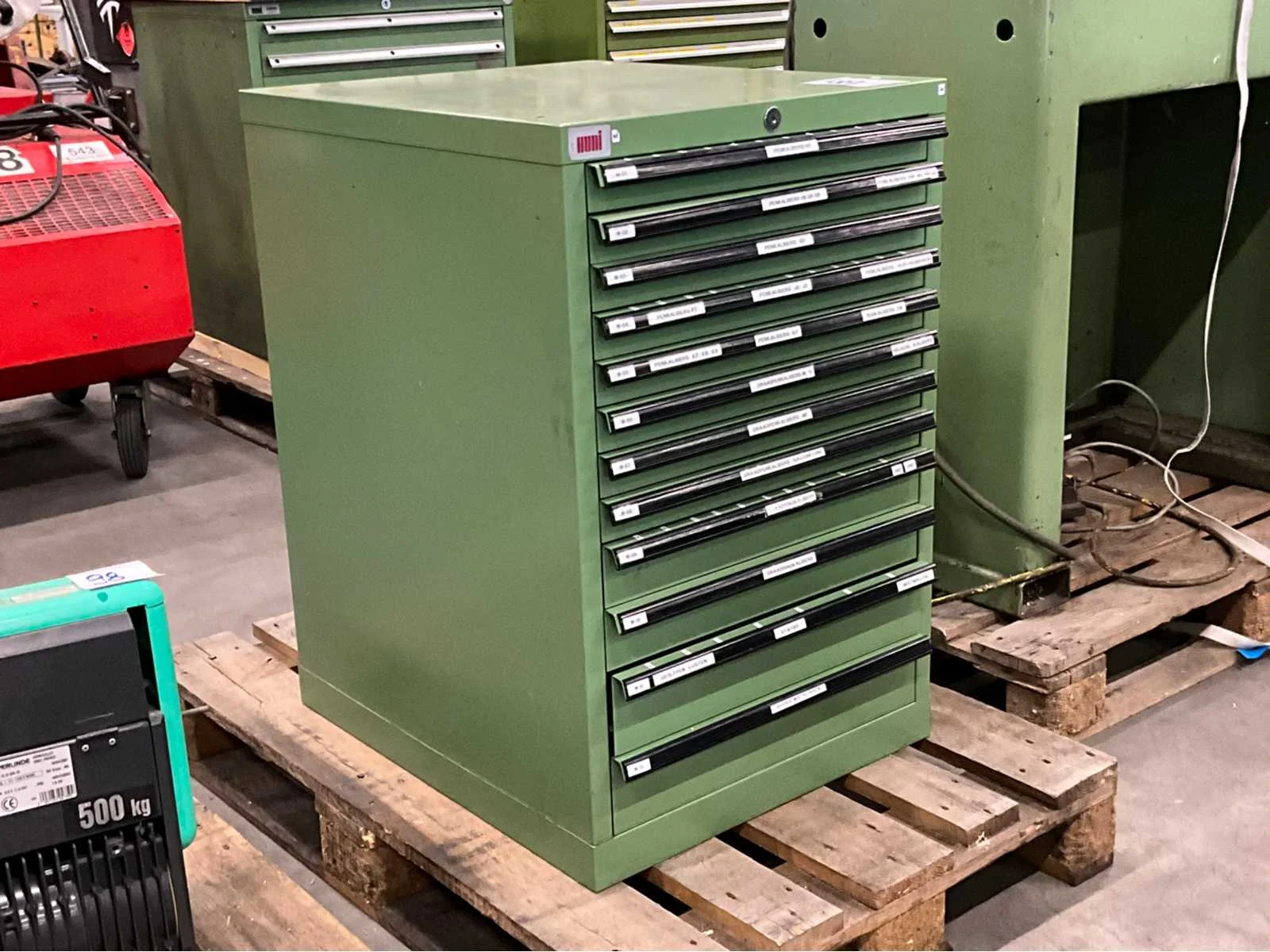 Staal; voorzien van 12 laden; Merk: Huni Lengte: 57cm Breedte: 70cm Hoogte: 90cm