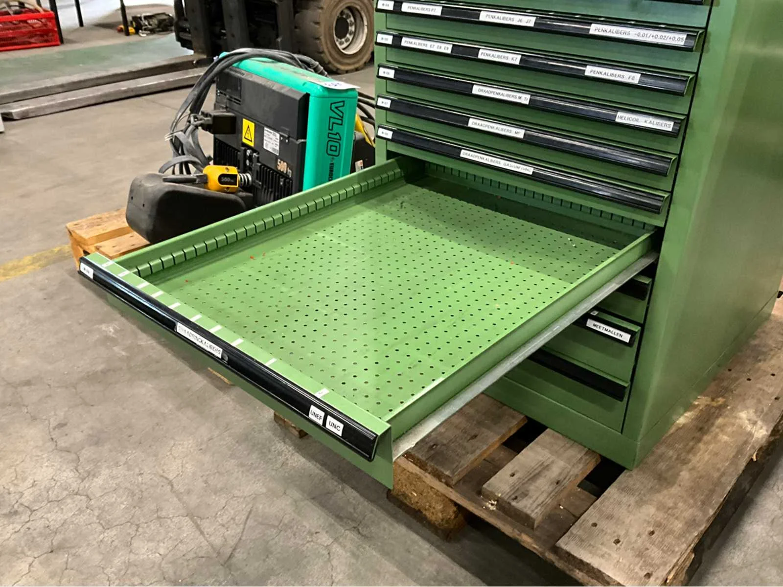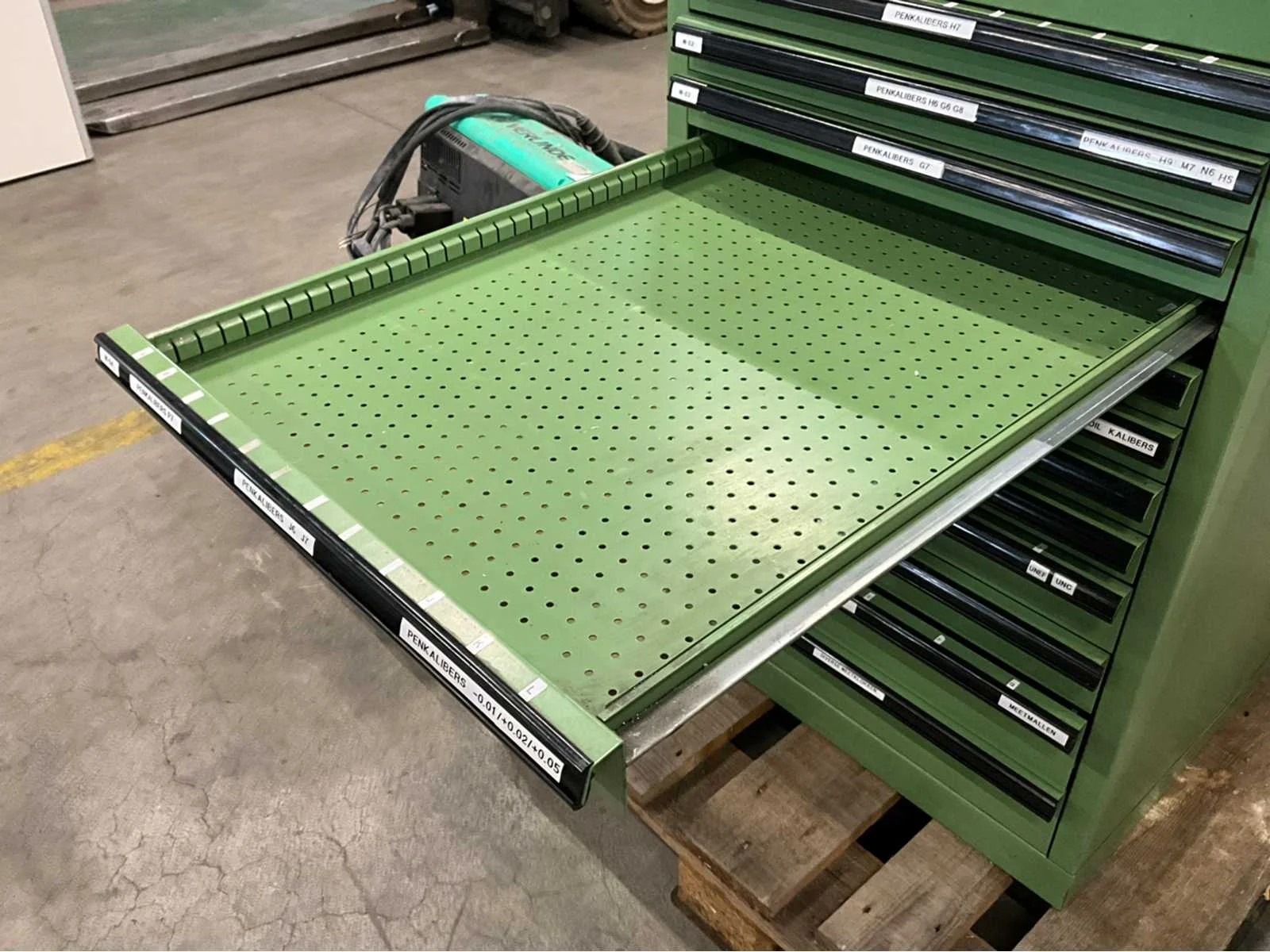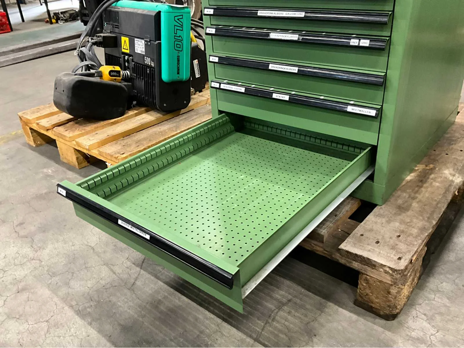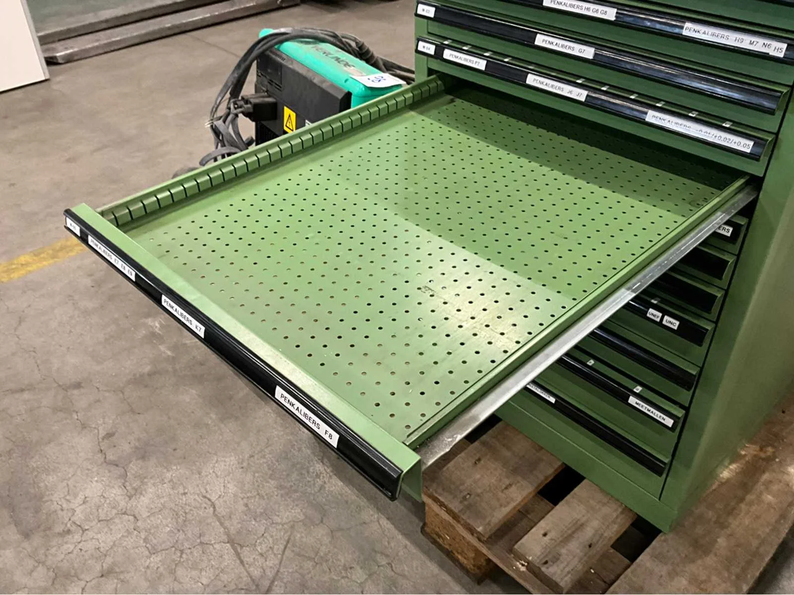 Staal; voorzien van 12 laden; Merk: Huni Lengte: 57cm Breedte: 70cm Hoogte: 90cm