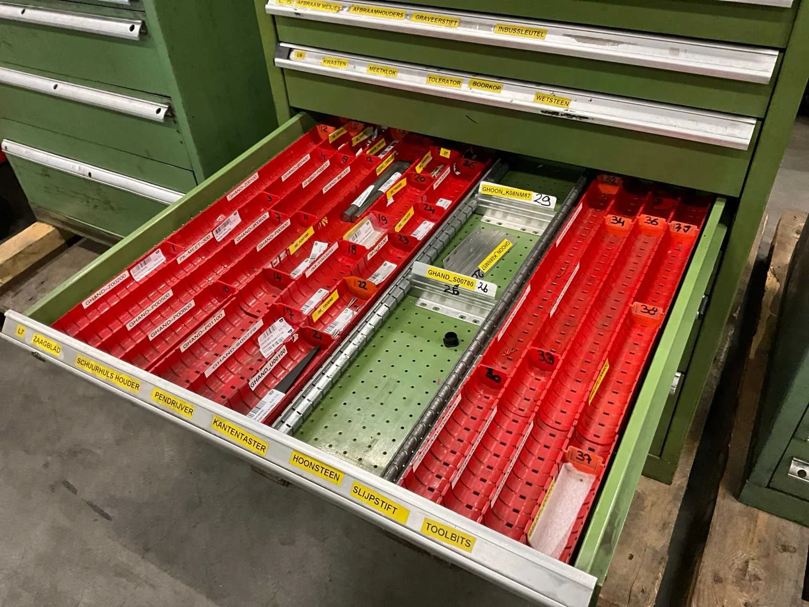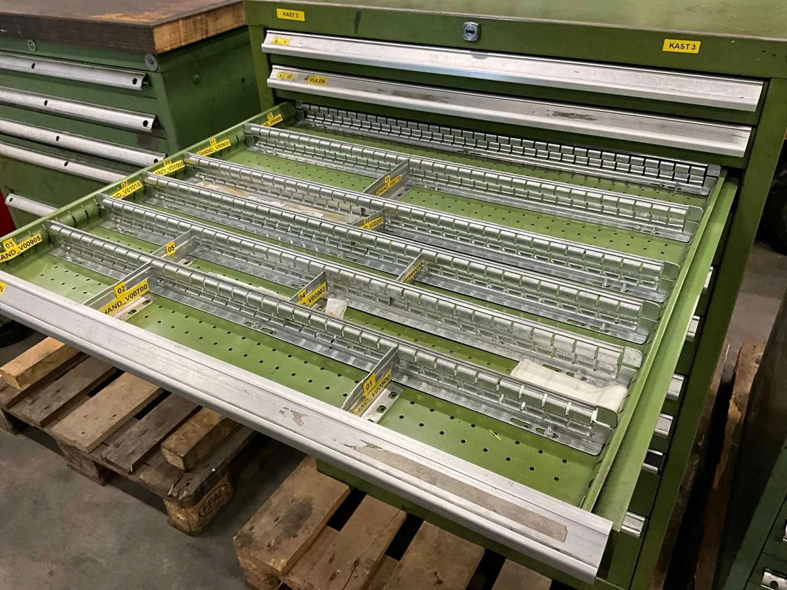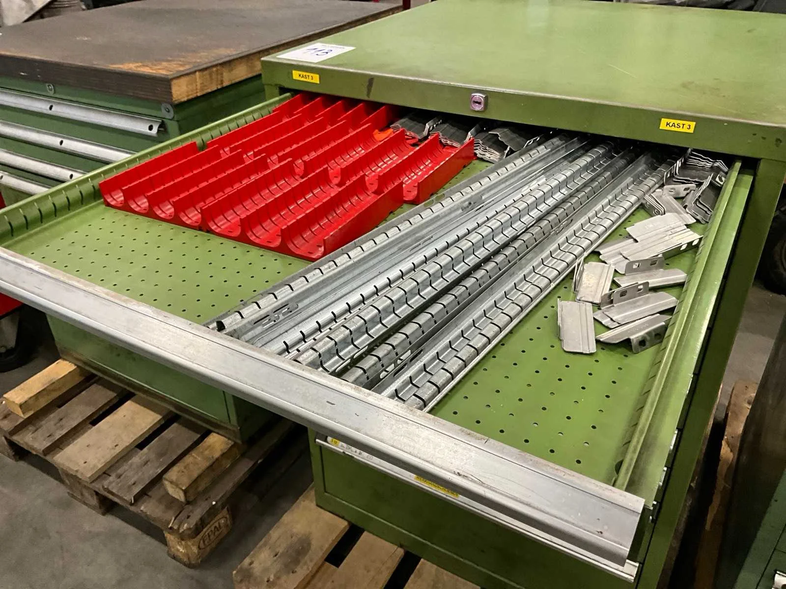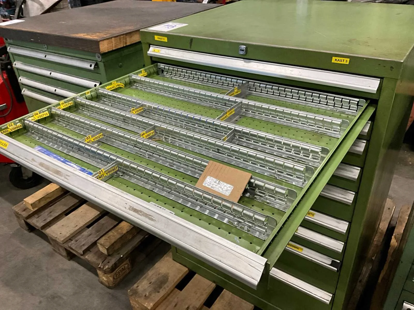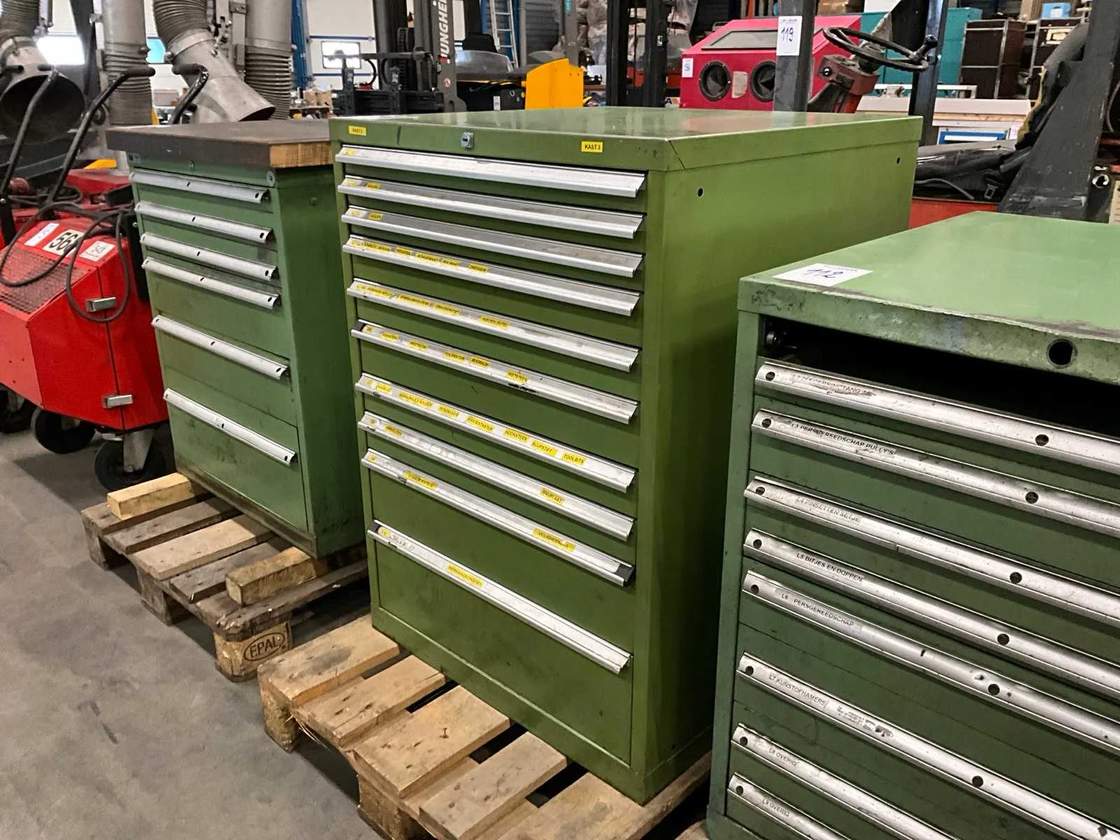 Staal; voorzien van 10 laden; gebruiksporen; Lengte: 72cm Breedte: 72cm Hoogte: 100cm