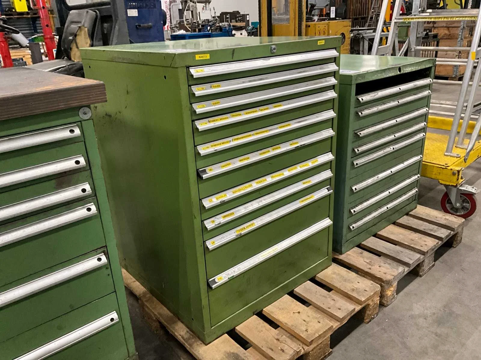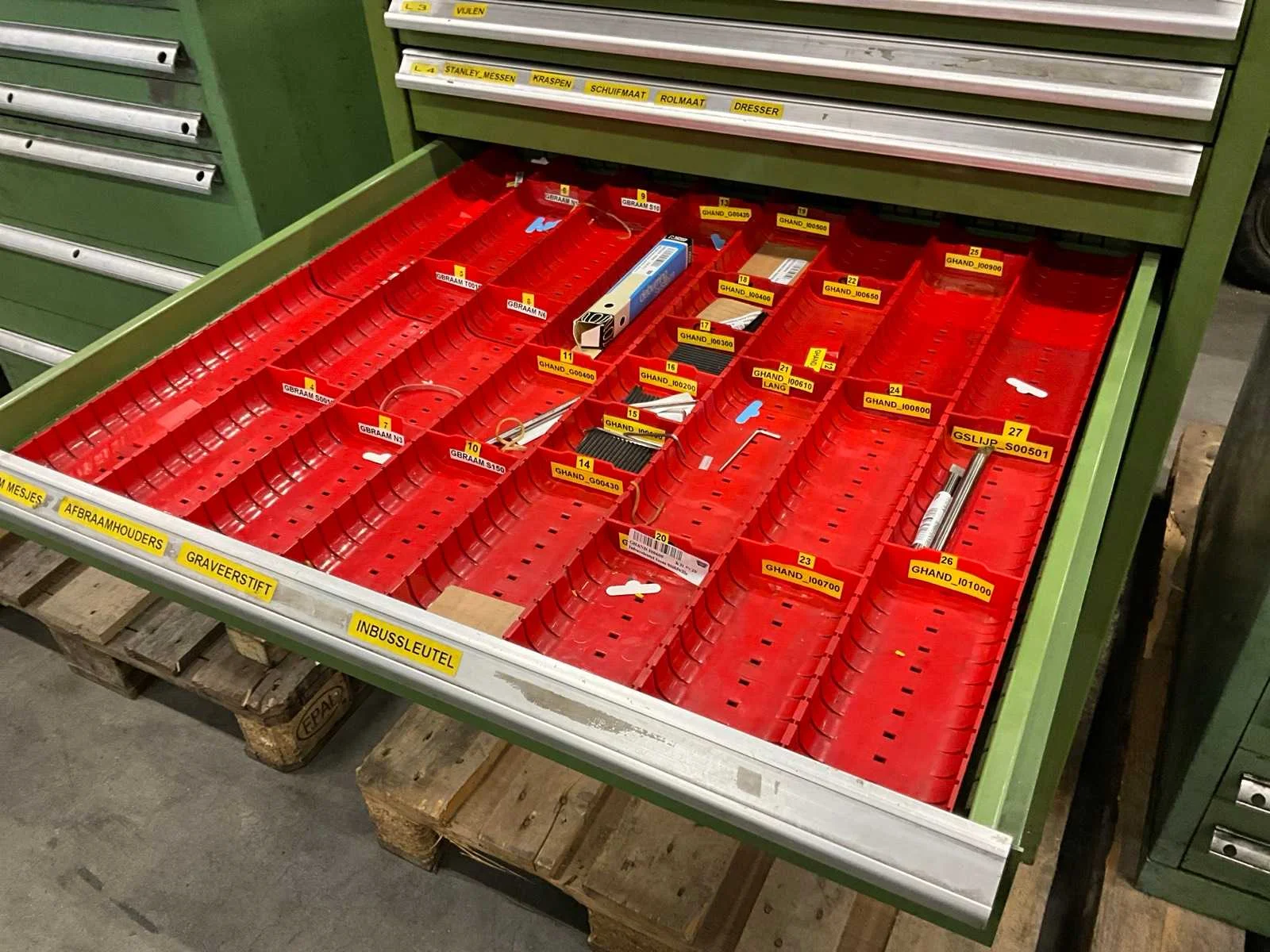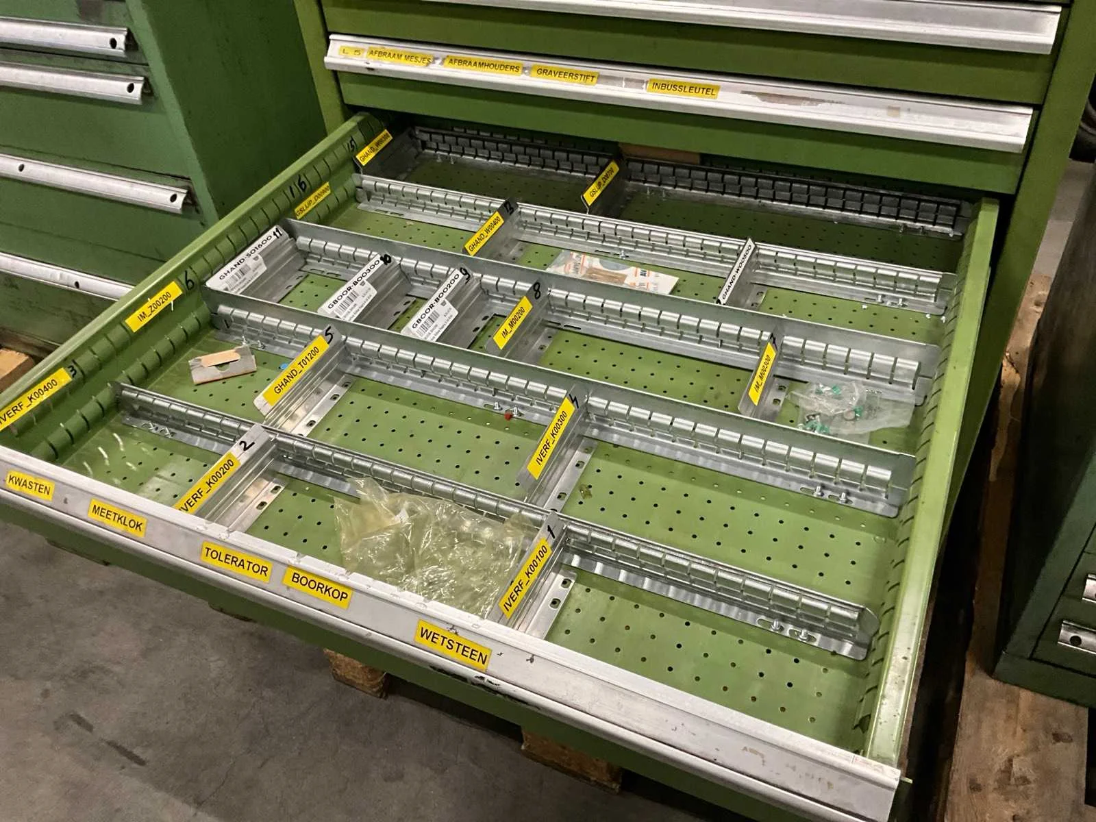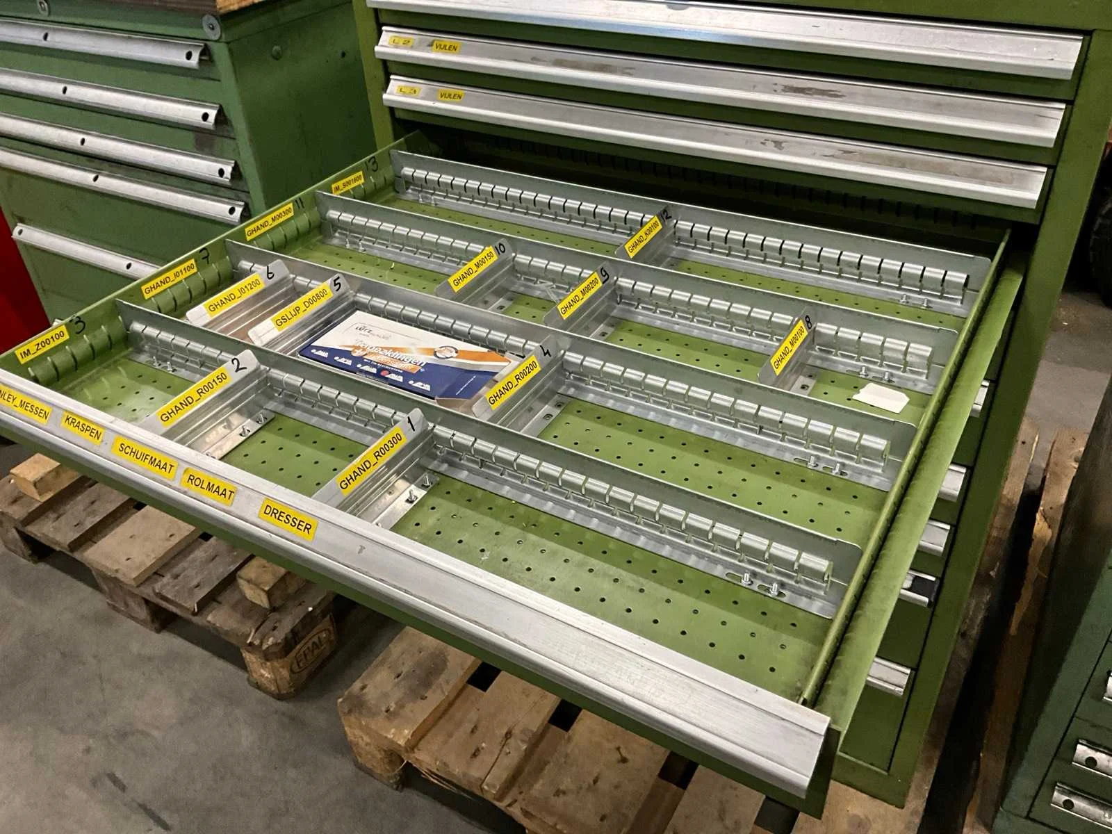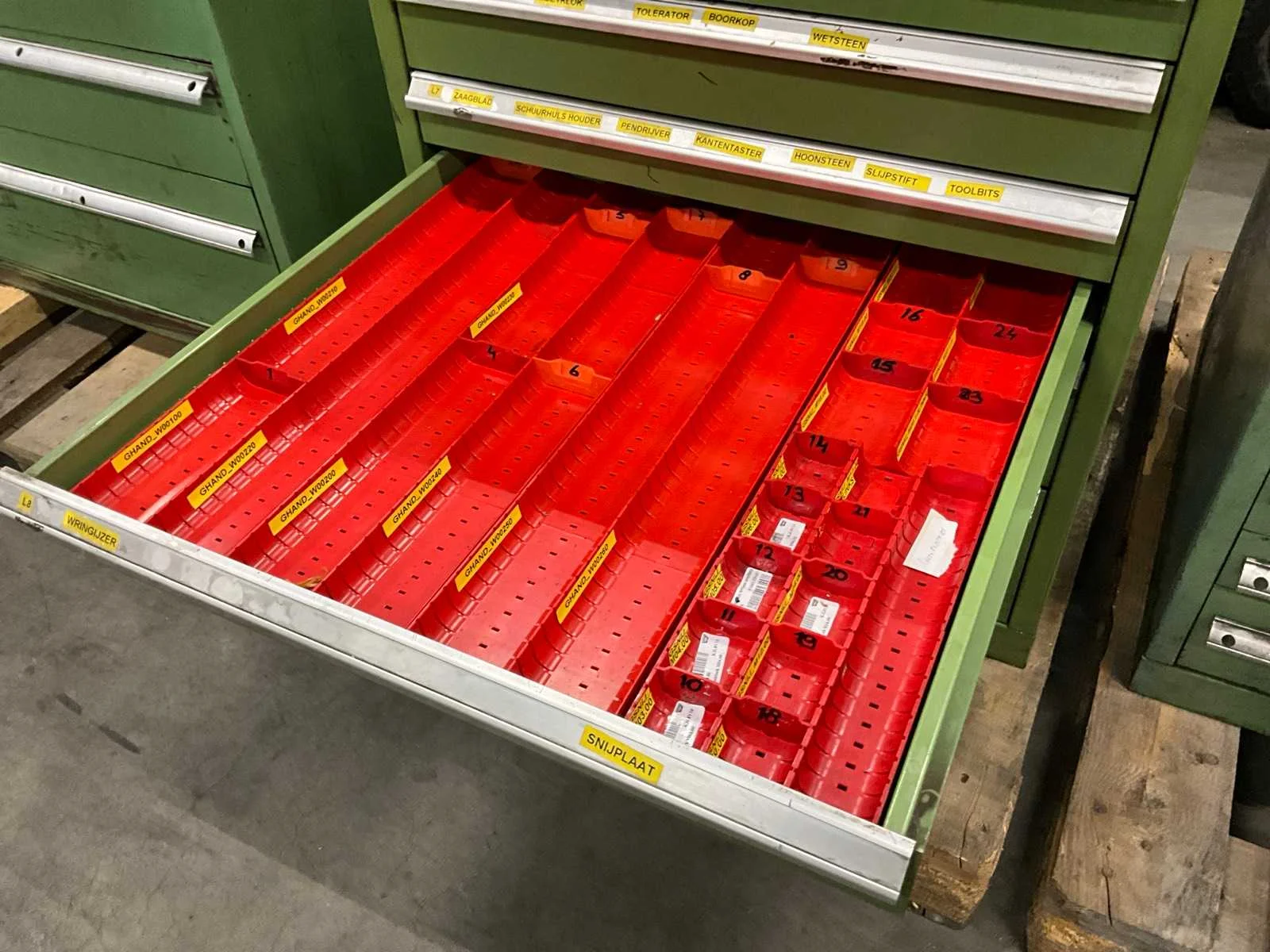 Staal; voorzien van 10 laden; gebruiksporen; Lengte: 72cm Breedte: 72cm Hoogte: 100cm