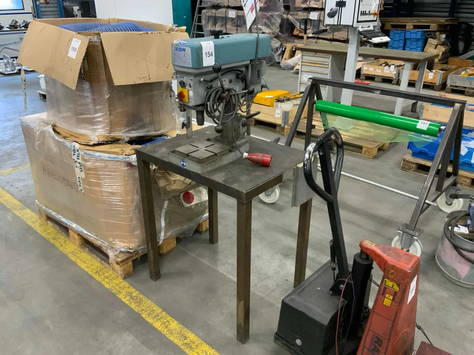 Merk: Ixion Type: BT6 Serienummer: 180530 Boorcapaciteit: 14mm Aantal snelheden: 8 Snelheid van n =: 630rpm Snelheid tot n =: 3550rpm Boordiepte: 60mm Uitlading: 165mm Opname mc: 2 Tafel afmeting l: 200mm Tafel afmeting b: 200mm Aansluiting: 380V Afmeting l: 800mm Afmeting b: 600mm Afmeting h: 2480mm