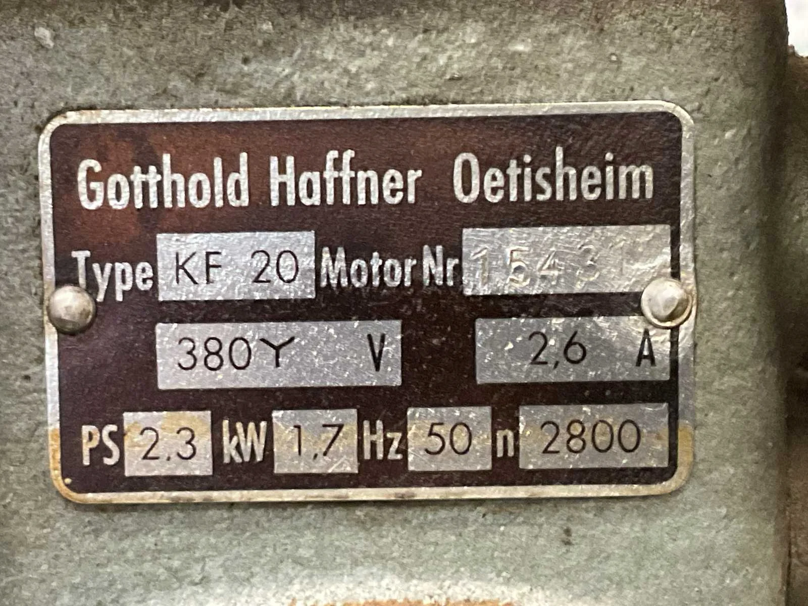 W Merk: Haffner Type: KF 20 Serienummer: 15431 Slaglengte: 200mm Tafel afmeting l: 740mm Tafel afmeting b: 250mm Aansluiting: 380V Afmeting l: 770mm Afmeting b: 720mm Afmeting h: 2000mm