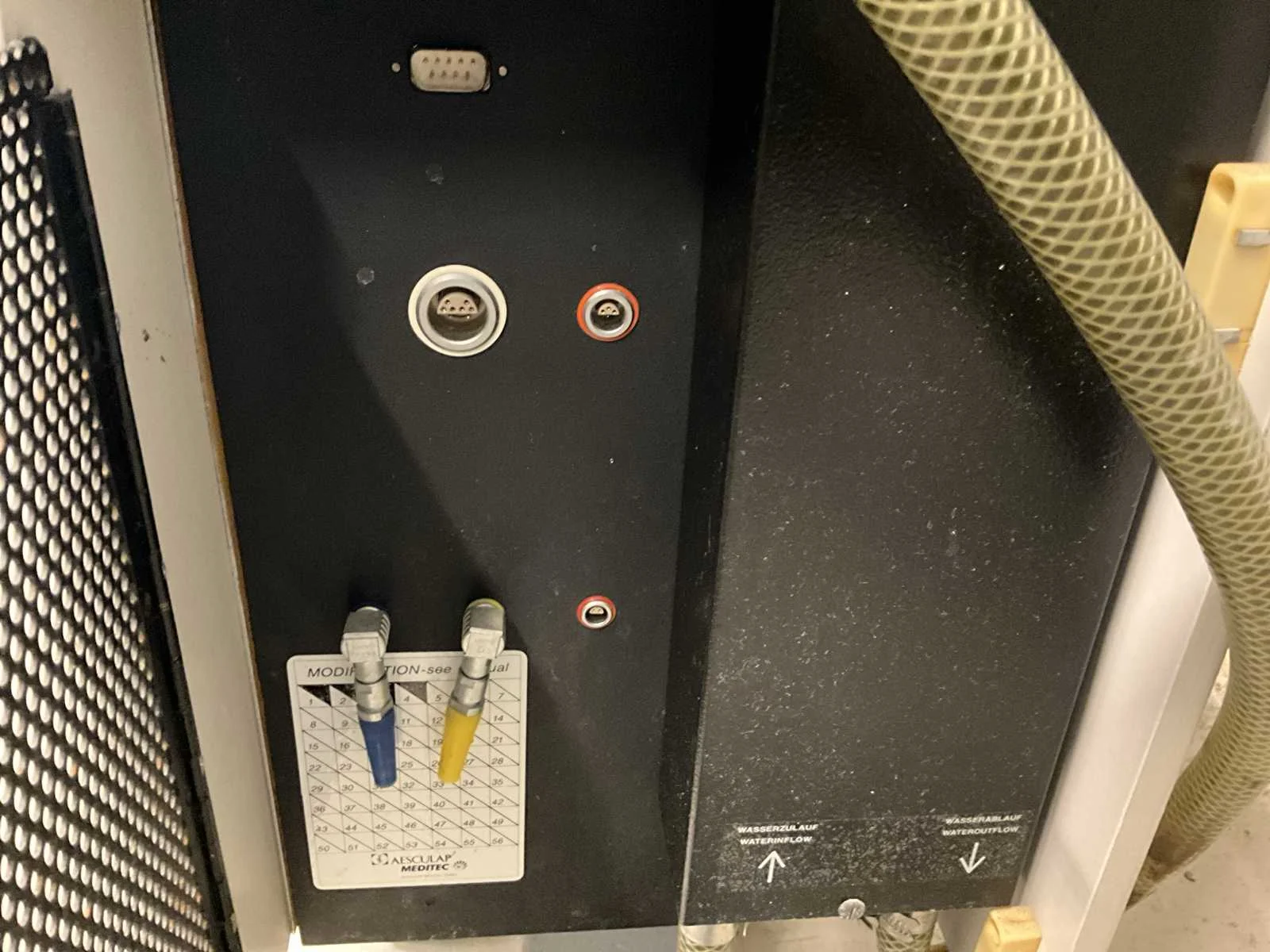 Voorzien van 2 waterslangen. Let op!! Locatie Eindhoven, uitlevering maandag 25 augustus, 9.00 - 16.00 uur. Merk: Aesculap Type: DLS5 Aansluiting: 400V Totale afmeting L: 1050mm Totale afmeting Breedte: 350mm Totale afmeting Hoogte: 700mm