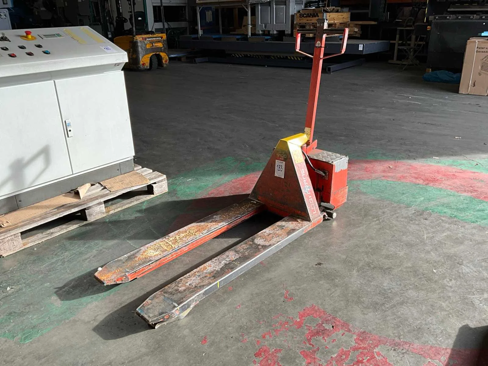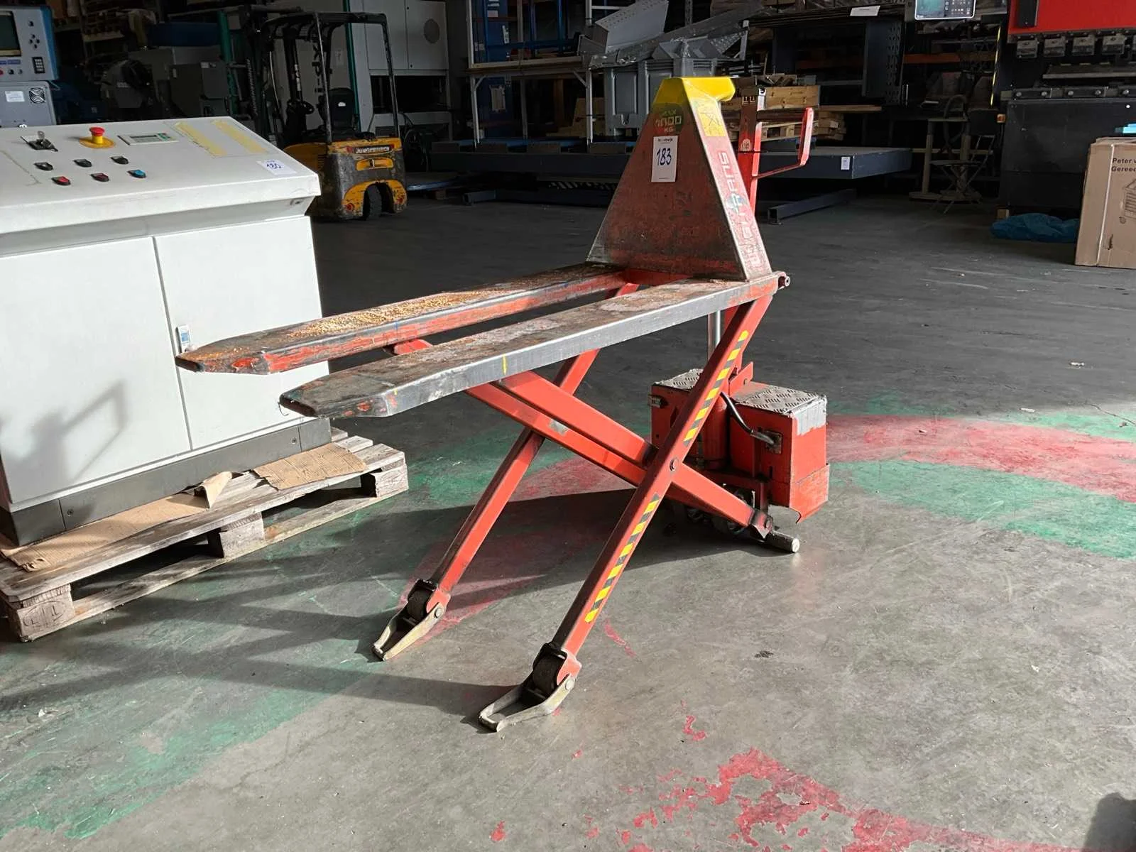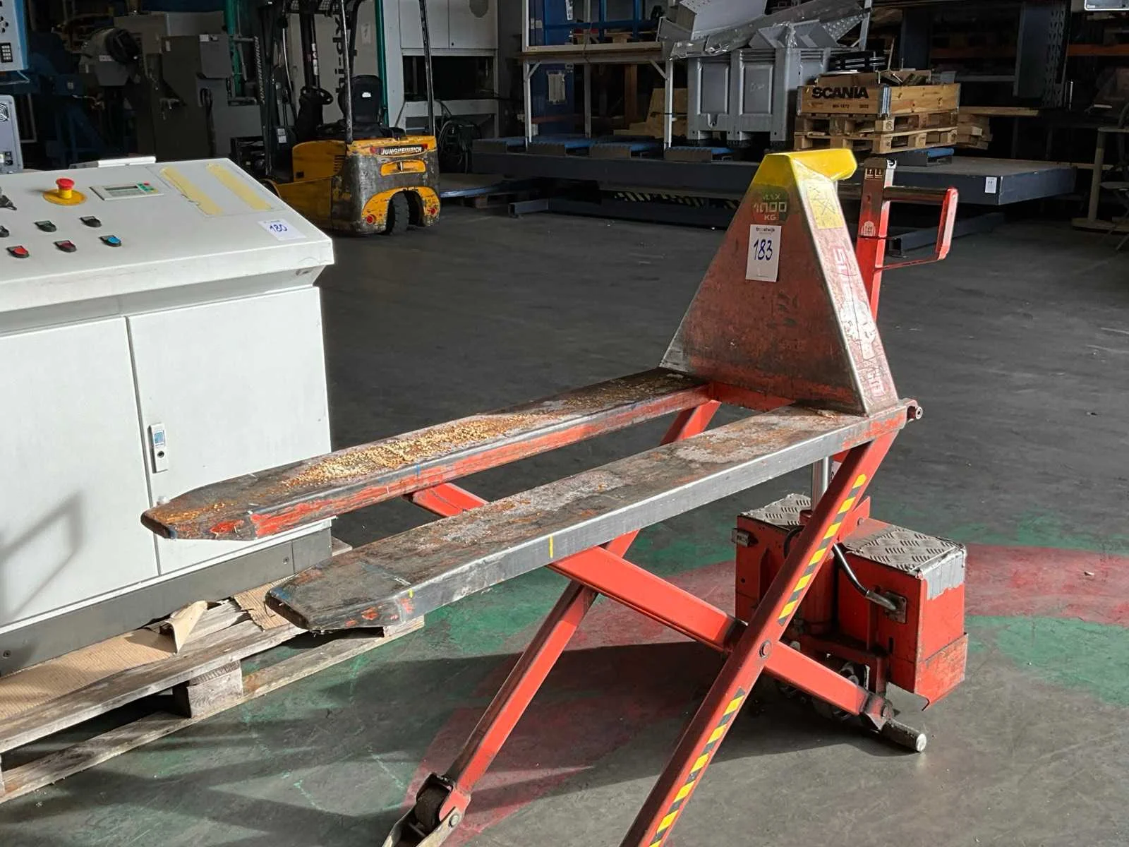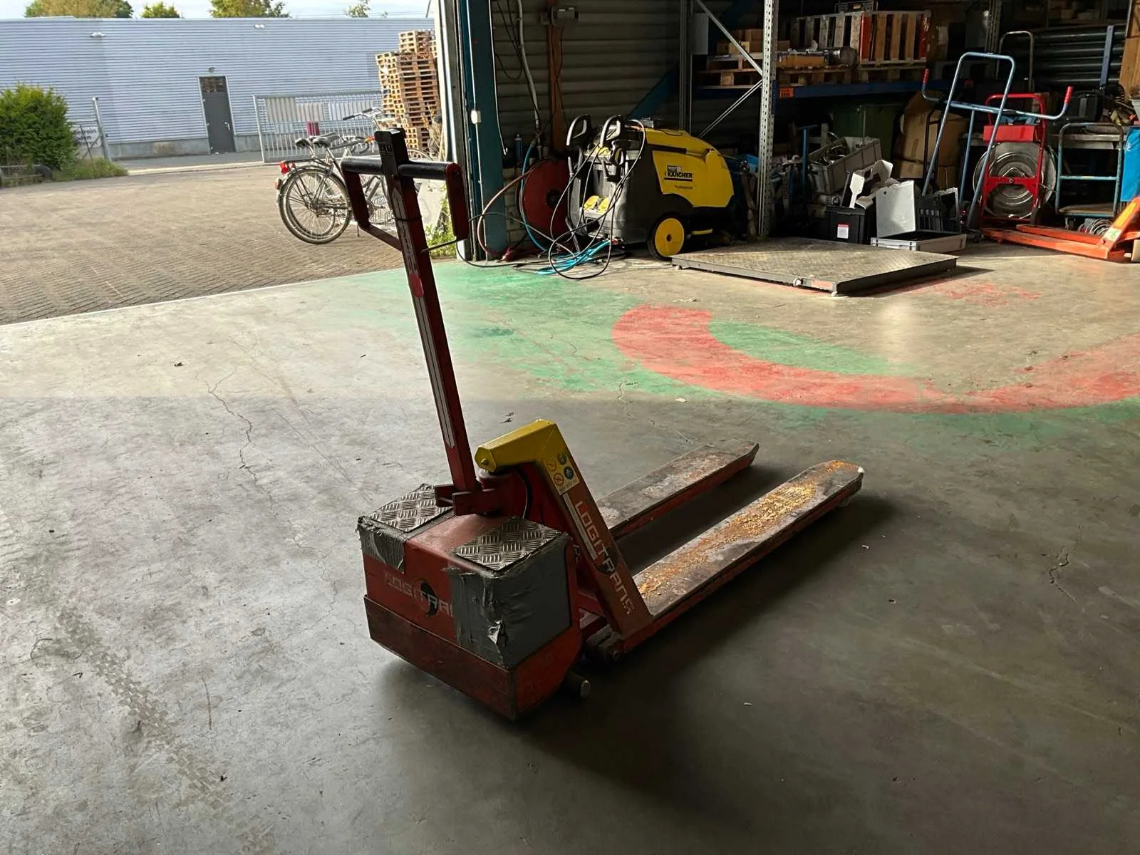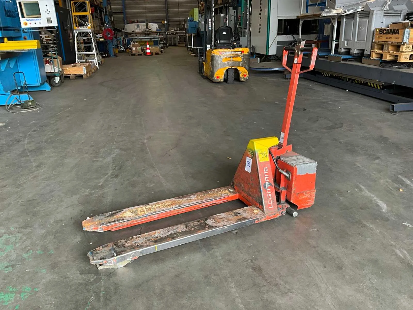 Hefhoogte 800 mm; ingebouwde accu; zonder acculader; Merk: Logitrans Type: EHL 1000/3 Bouwjaar: 1995 Hefvermogen: 1000kg Lepellengte: 1150mm