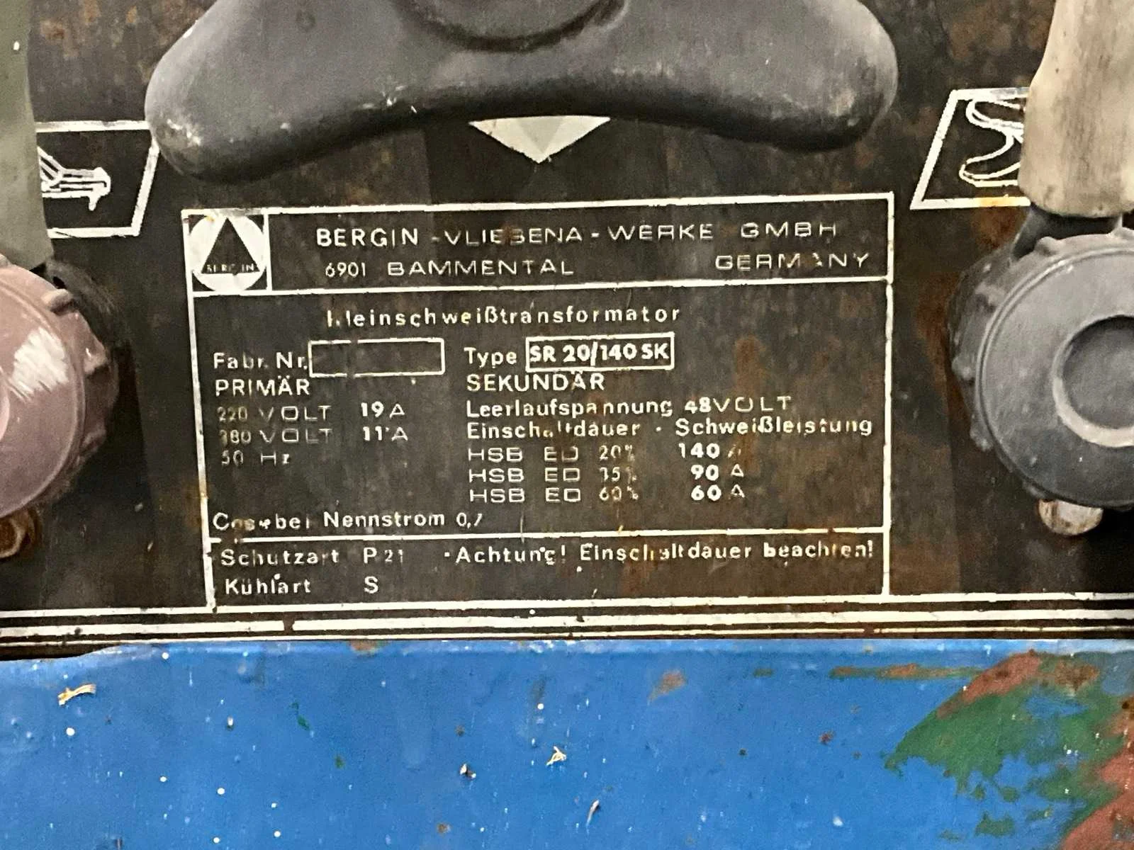 Voorzien van leidingen en lastoorts; gemonteerd op verrijdbaar onderstel; Merk: Bergin Elektrowerkzeuge Type: SR20/140SK