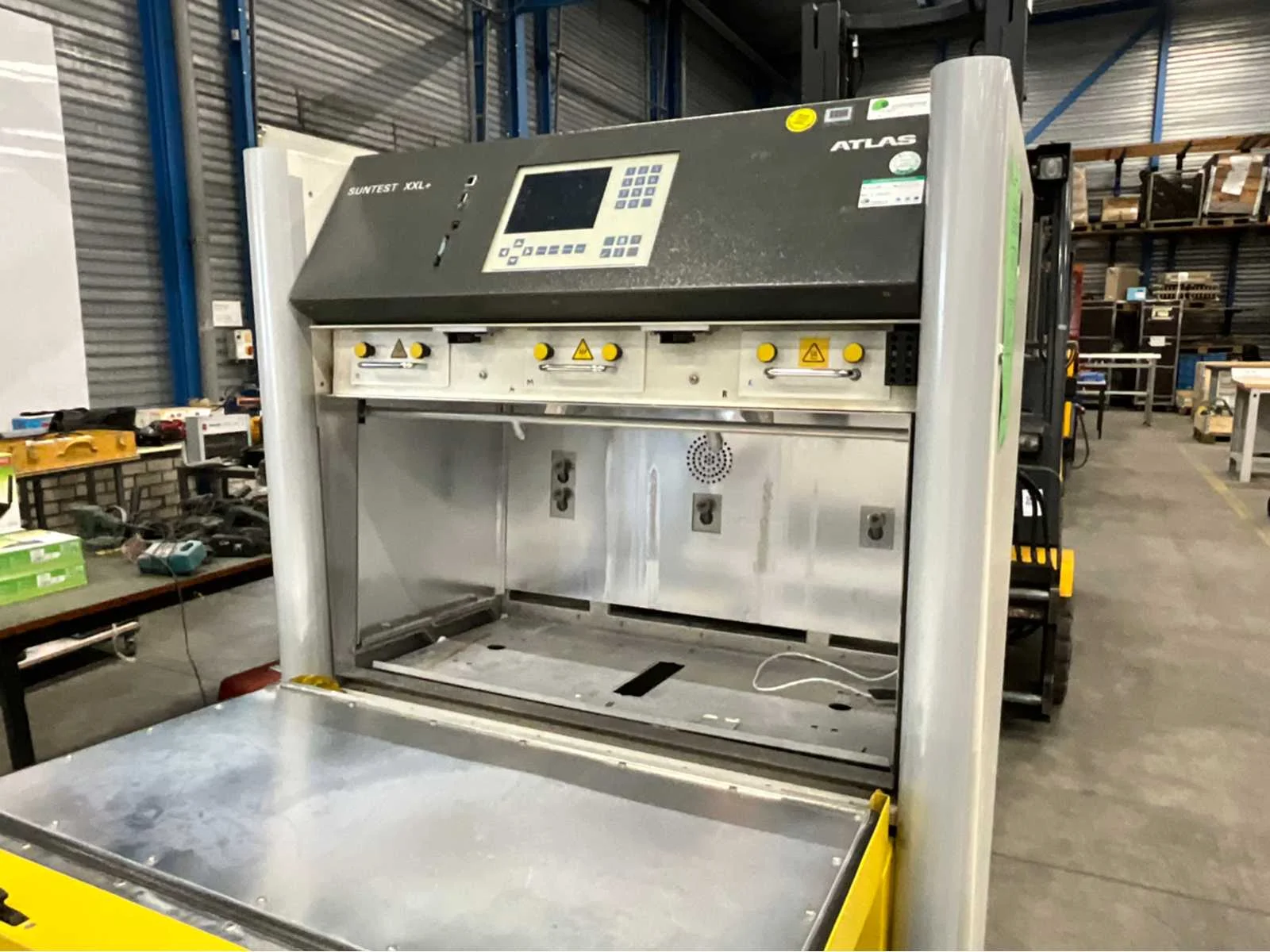 Voorzien van neerklapbare frontdeur; kamer afmeting circa 750x400x300 mm; 9,1 kVA; Merk: Atlas Type: Suntest XXL+ Aansluiting: 400V Afmeting l: 900mm Afmeting b: 950mm Afmeting h: 1700mm