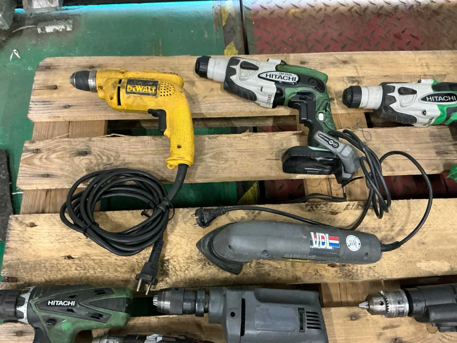 4x accu schroef- / boormachine; 3x elektrische boormachine; 1x Kinzo handschuurmachine; 1x haakse slijper; zonder pallet