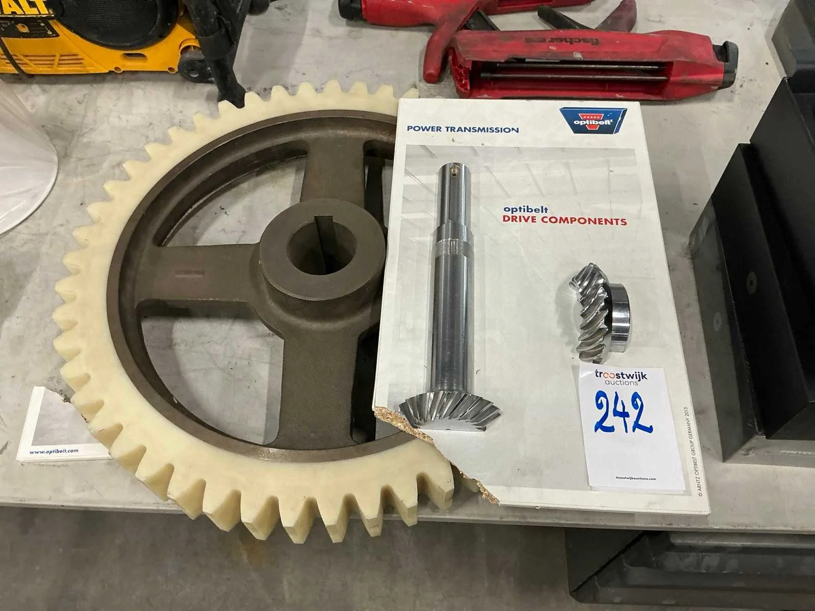 Kunststof tandwiel op stalen wiel en 1 optibelt drive component Merk: SHW Type: WI Totale afmeting L: 500mm Totale afmeting Breedte: 500mm Totale afmeting Hoogte: 110mm