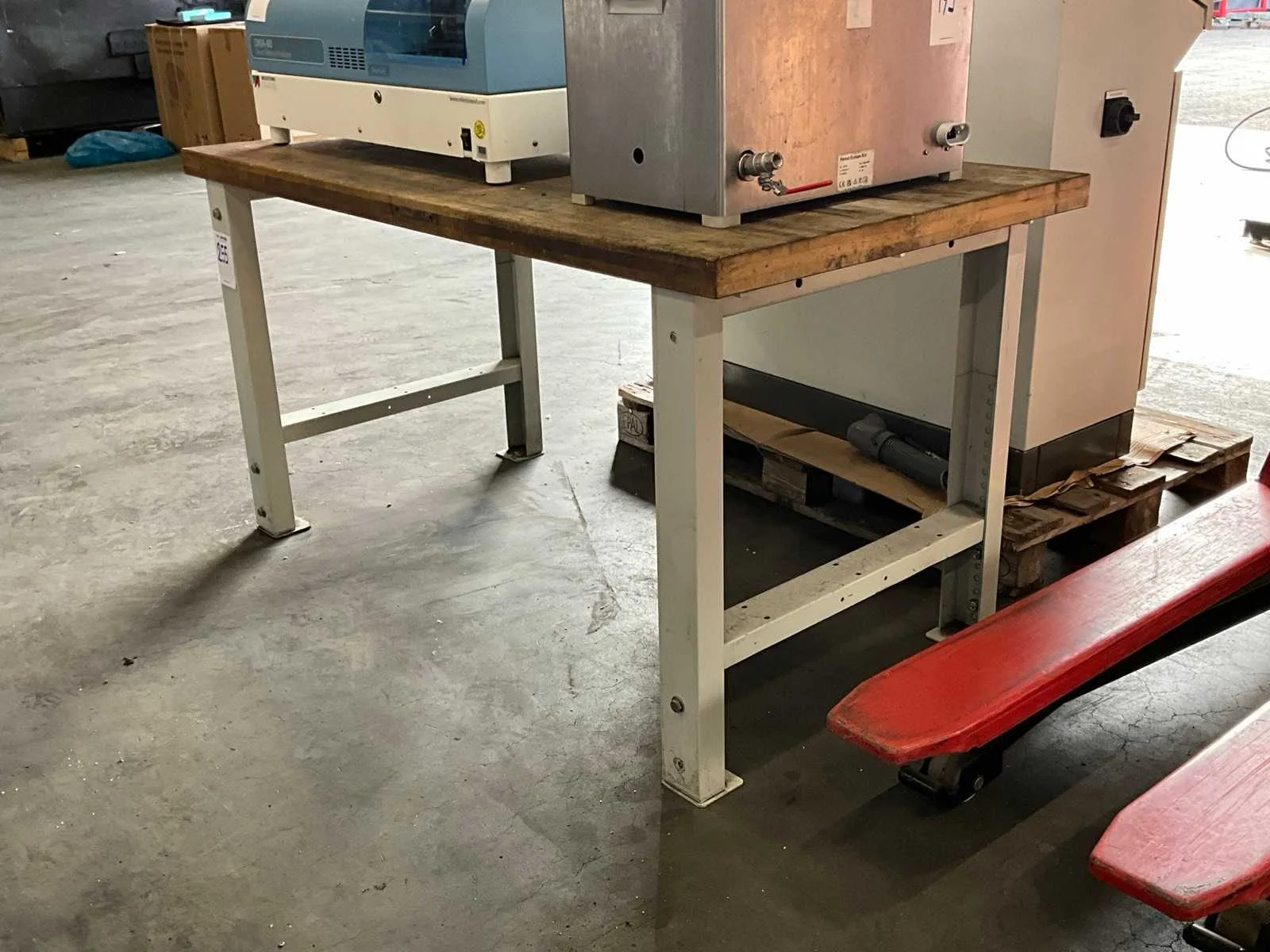 Profielstaal onderstel; in hoogte verstelbaar; zwaar hout tafelblad; dikte tafelblad 50 mm; afmeting 1500x800x800 mm; zonder apparatuur op de tafel;