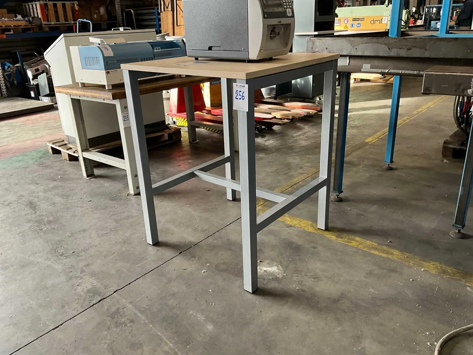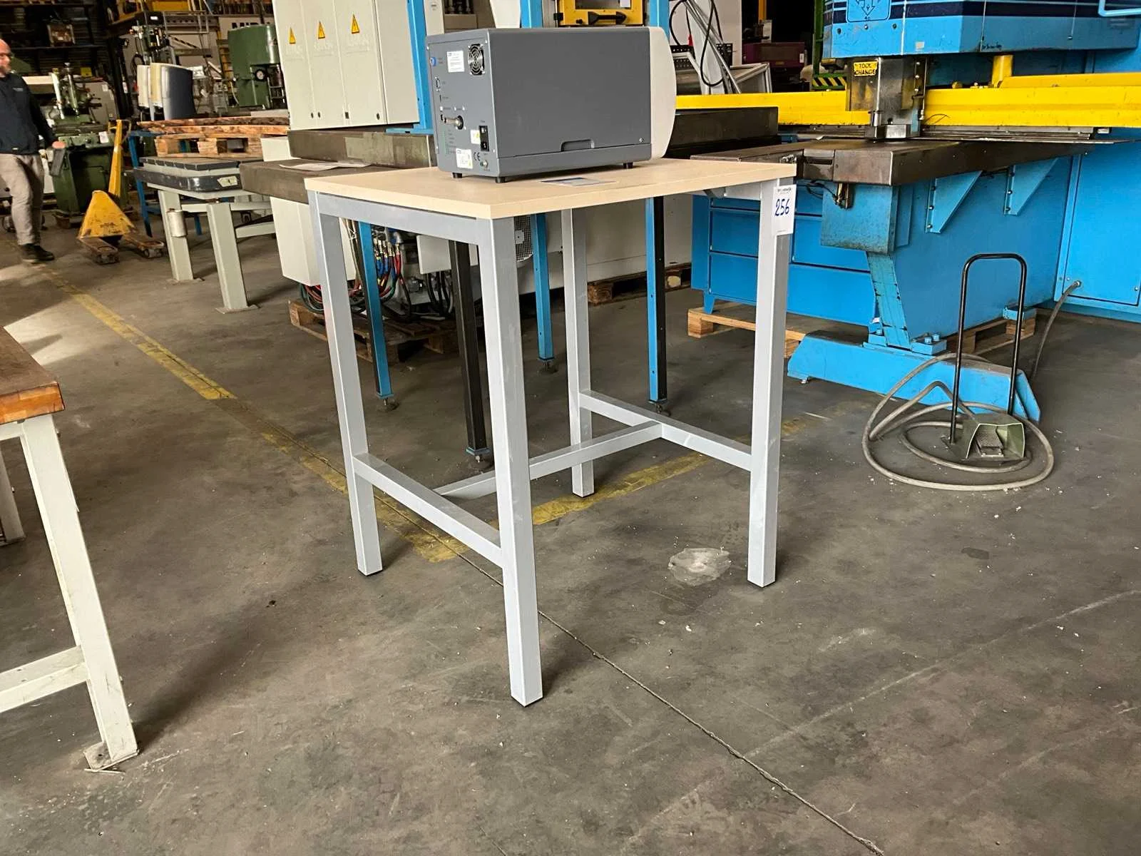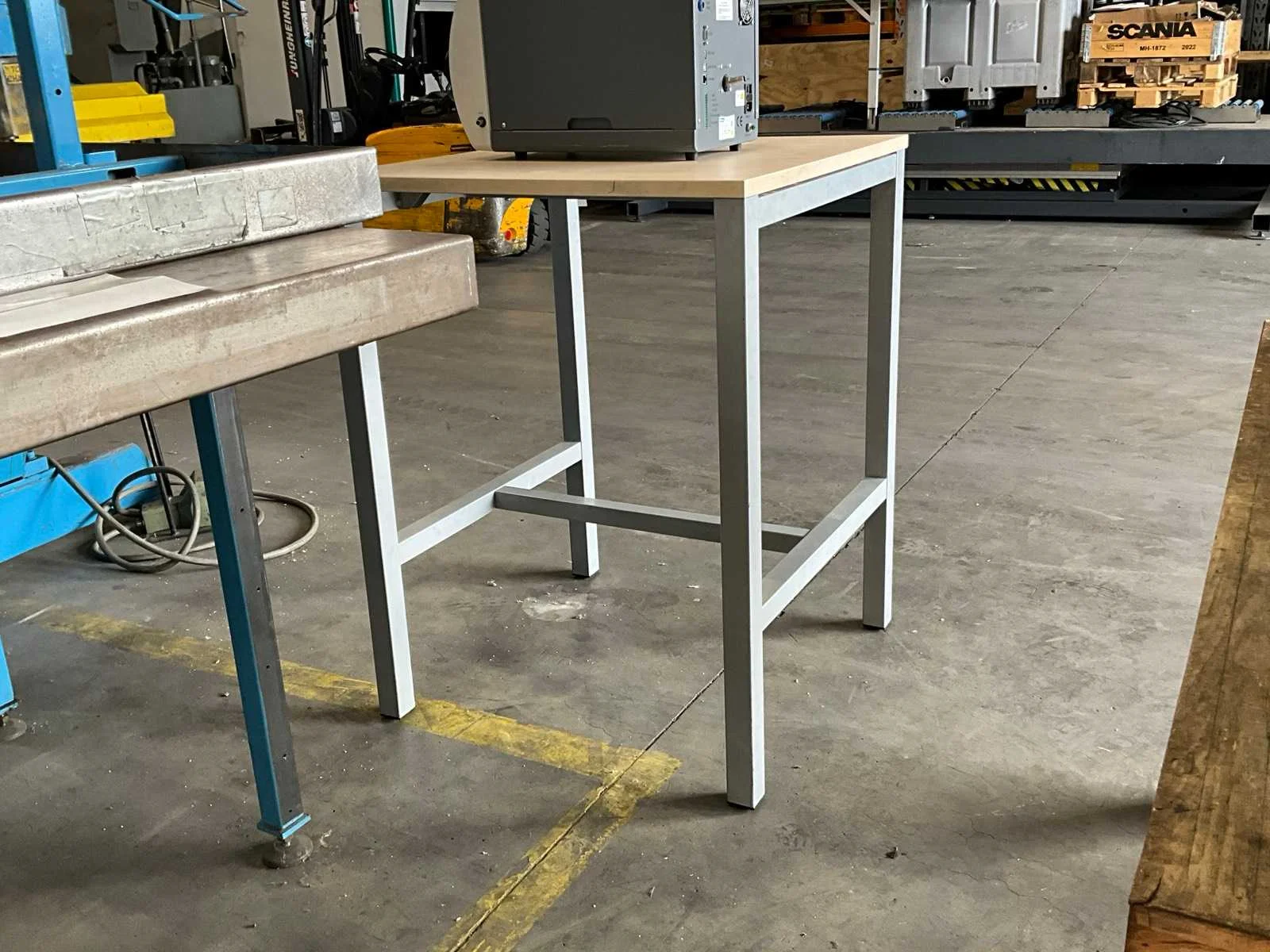 Profielstaal onderstel; gelamineerd tafelblad; afmeting 800x800x1050 mm; zonder apparatuur op de tafel;