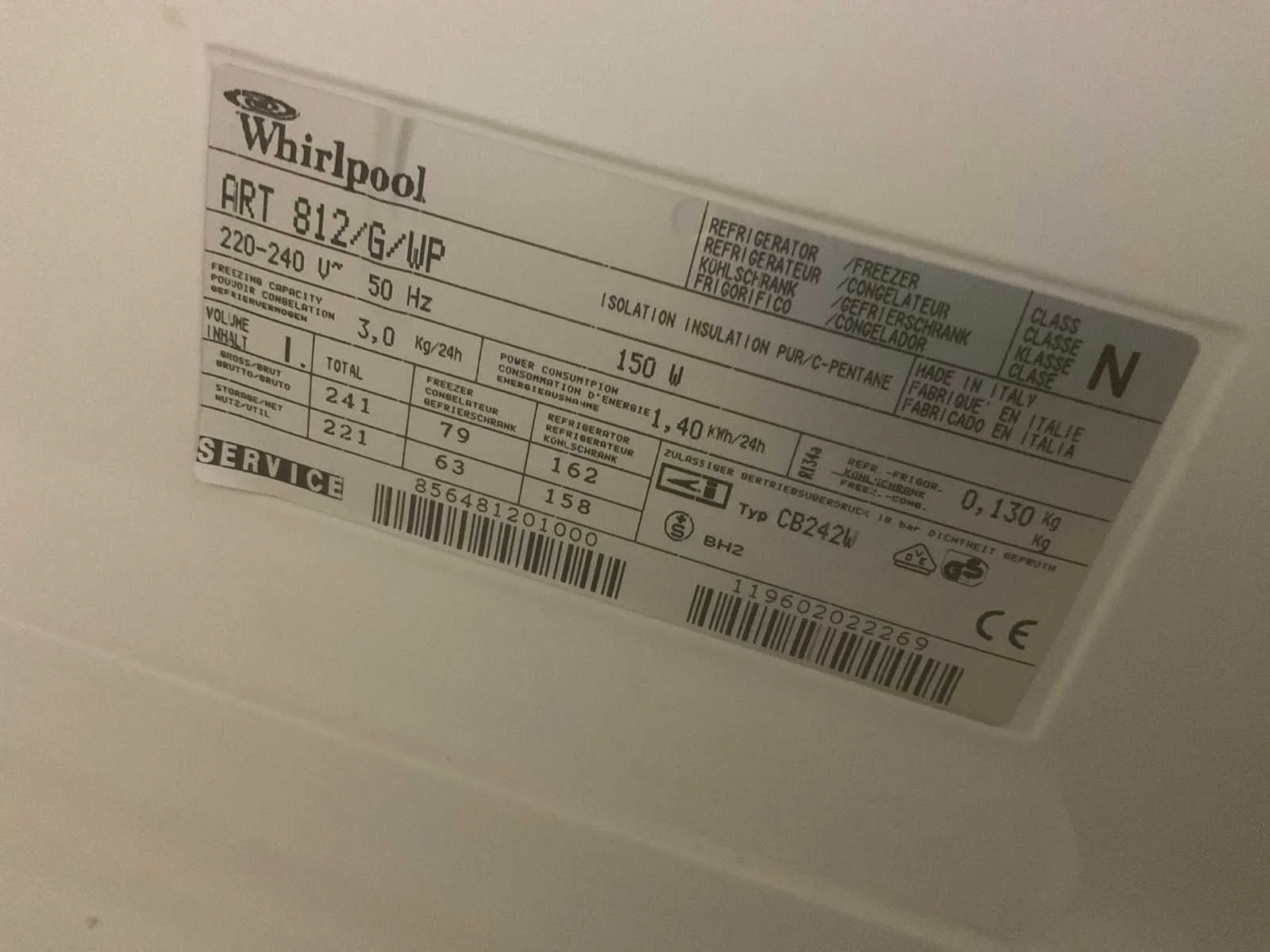 Merk: Whirlpool Deur opent naar: Rechts Netto inhoud koelvakken: 158l Netto inhoud Vriesvak: 63l Totaal netto inhoud: 221l