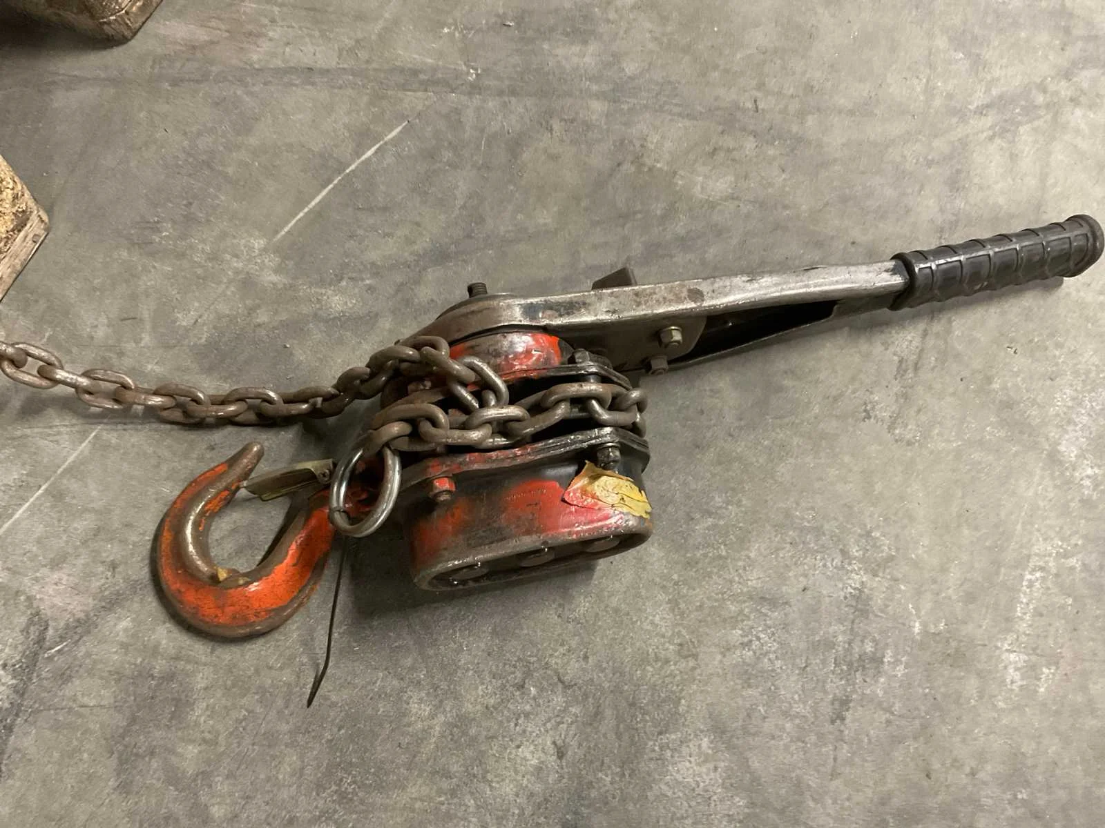 Bestaande uit motoren en hand kettingtakel, rateltakel in kunststof bak Pallet niet inbegrepen