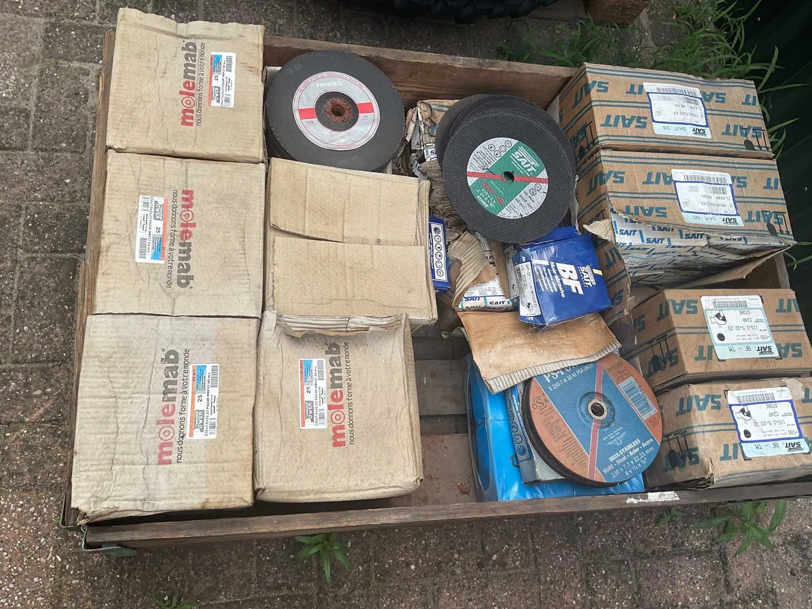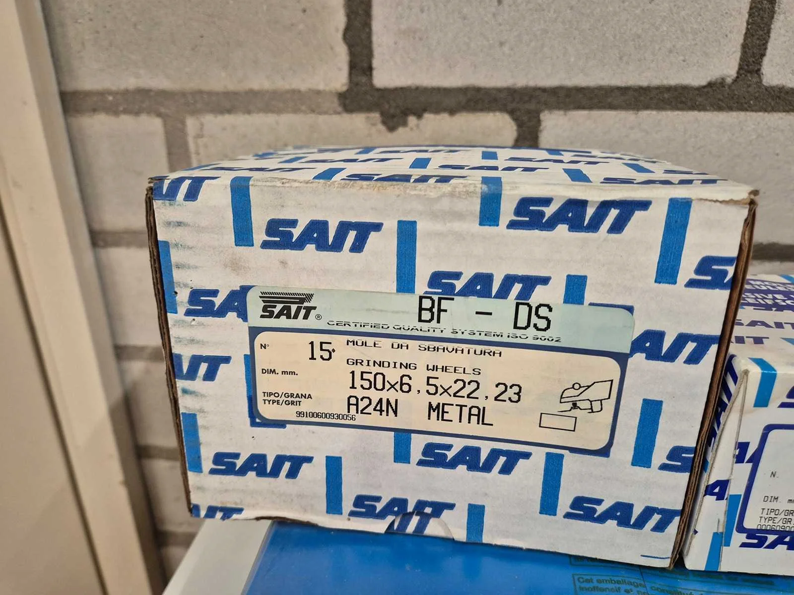 4x 10stuks tyrolit 115x7x22,23 aluminium 10X 10stuks sait 115x6x22.23 inox 8X 15stuks sait 150x6,5x22,23 metaal 1x 20stuks power cut 180x7x22,23 inox 1x 4stuks sait 180x6x22,23 metaal 1x 4stuks ps-forte 230x7,2x22,23 inox staal 3x 10stuks sait 125x3,2x22,23 inox 5X 25stuks power grind 230x7.0x22,23 inox (niet op foto) 20X 10stuks 115x2,5x22.23 stone steen