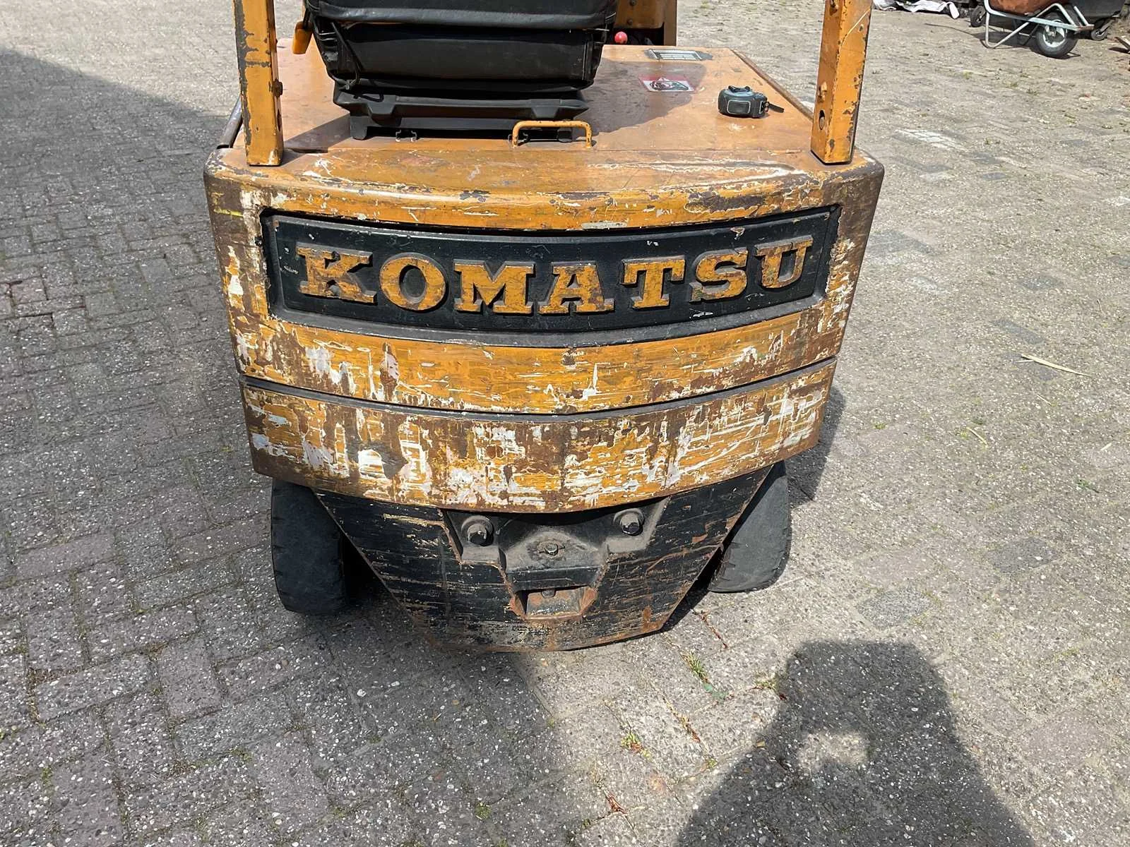 Machine werkt naar behoren en voert alle functies uit, Machine heeft gebruikssporen conform urenstand en leeftijd Merk: Komatsu Type: Fb15-4 Serienummer: 12009 Brandstof: Electrisch Afgelezen urenstand: 15522 Accu lader: true Side-shift: true Duplex mast: true Hefvermogen: 1500kg Lepellengte: 1100mm Max. hefhoogte: 3000mm Vol rubber banden: true Minimale doorrijhoogte: 2150mm Totale afmeting L: 1950mm Totale afmeting Breedte: 1040mm Totale afmeting Hoogte: 2150mm