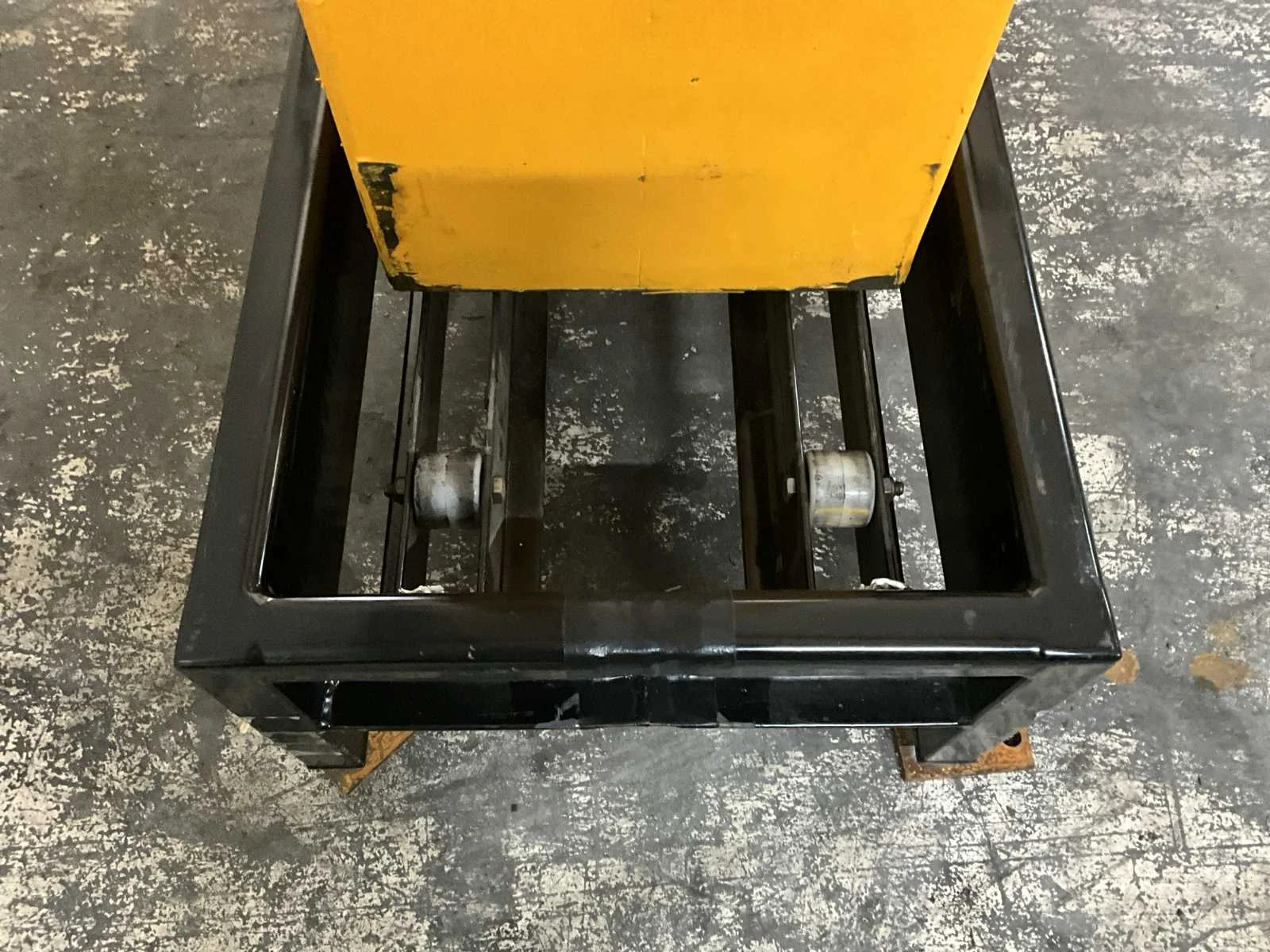 Met frame voorzien van looprollen testcapaciteit 94% Merk: Jungheinrich Type: 48 V 4 EPZS 620 Bouwjaar: 2018 Serienummer: G 00811438 Eigen gewicht: 935kg Totale afmeting L: 1220mm Totale afmeting Breedte: 355mm Totale afmeting Hoogte: 780mm