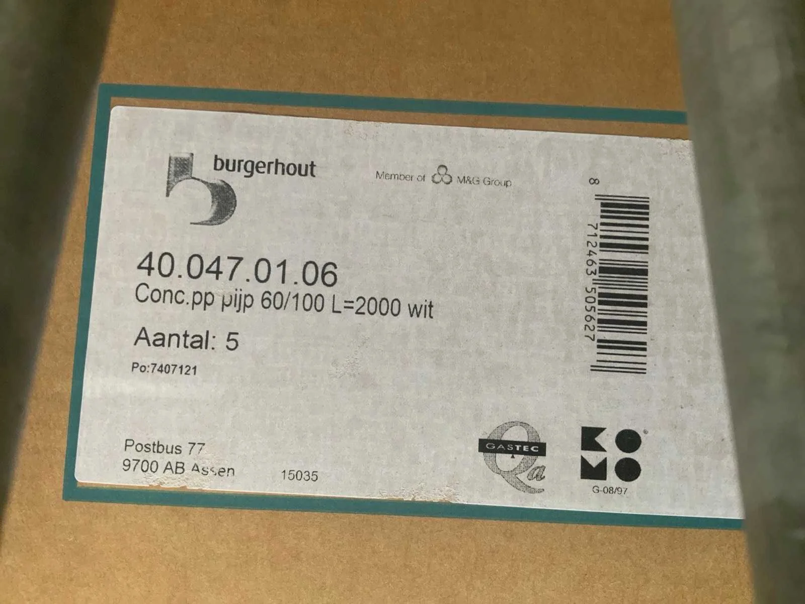 Burgerhout 40.047.01.06 conc. pp pijp (doos á 5 stuks)