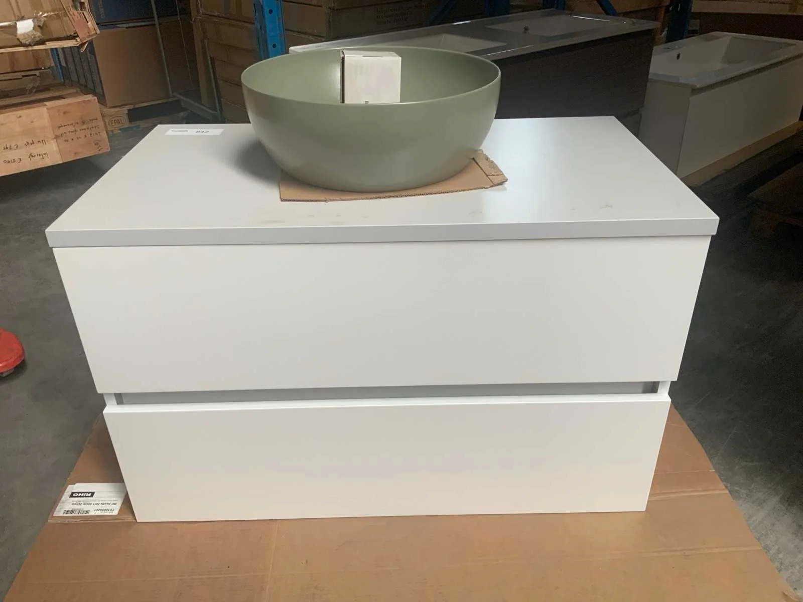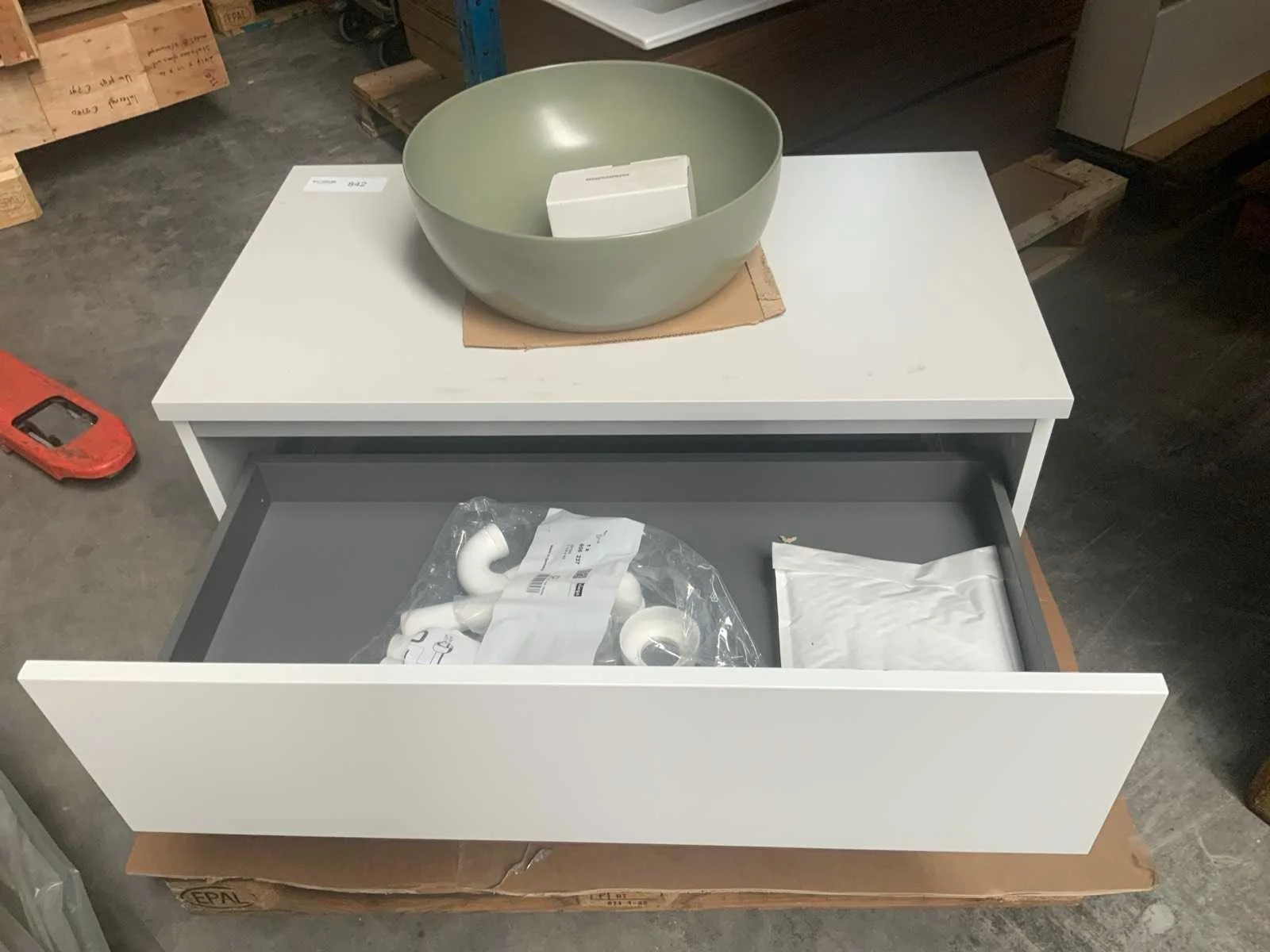 Hoogte: 56cm Breedte: 90cm Waskom: Groen 40cm Lades: 2 Softclose: true