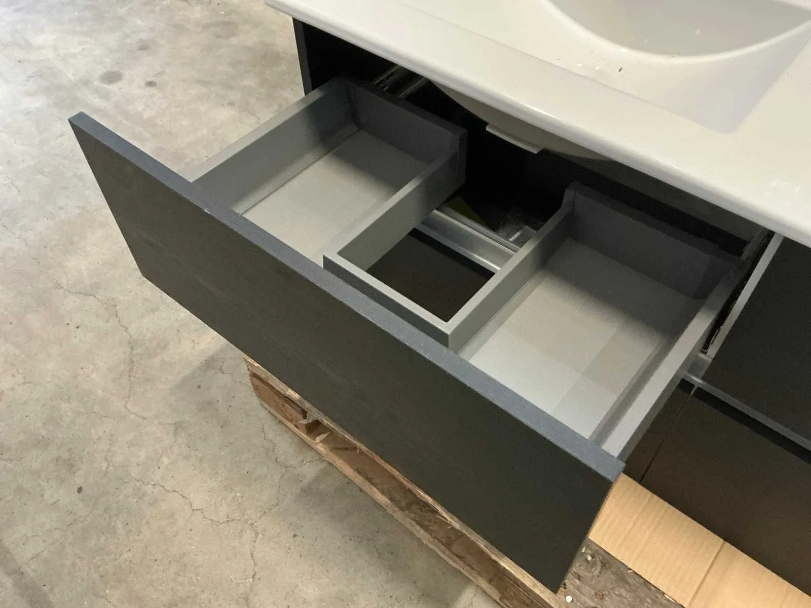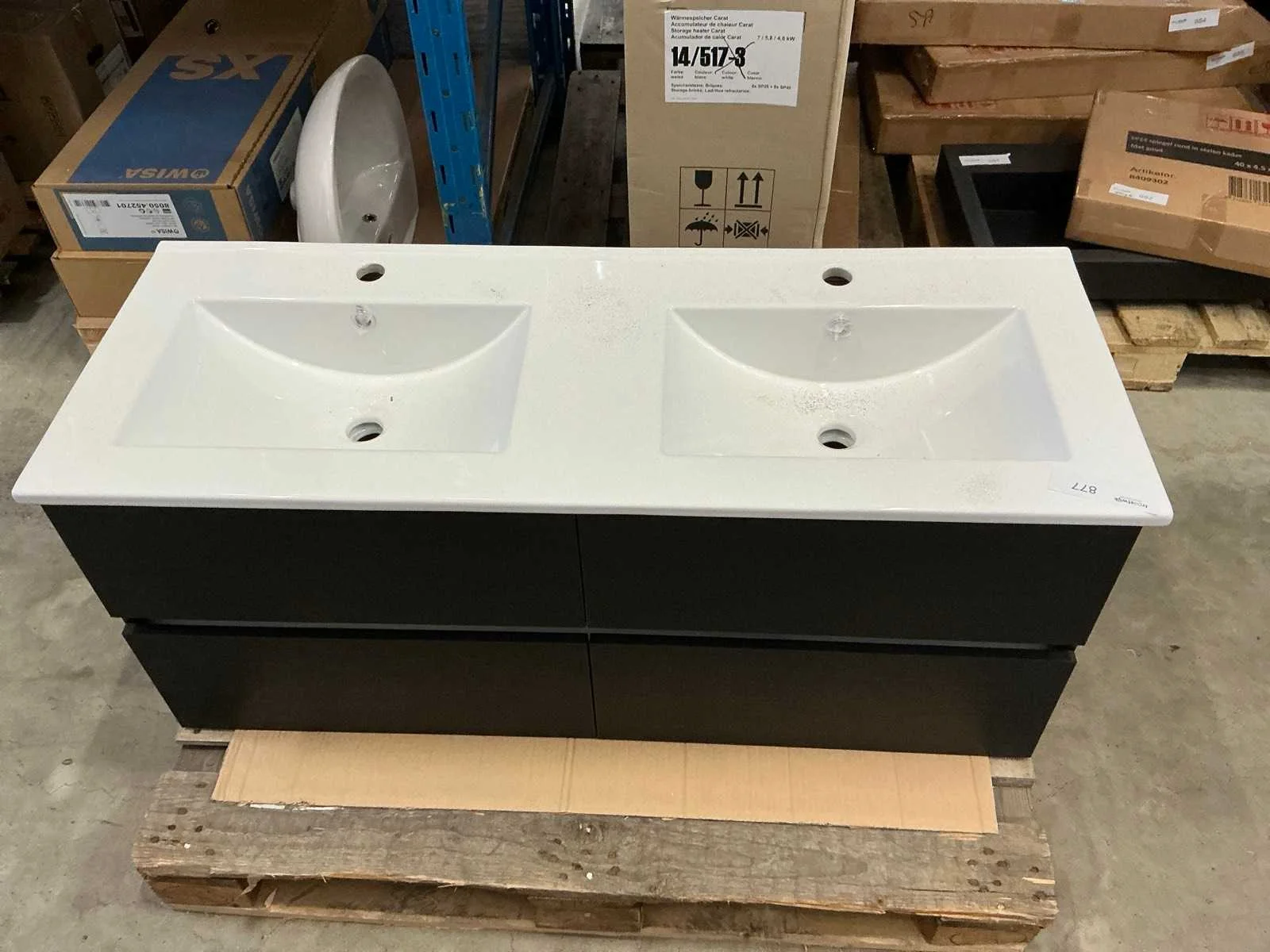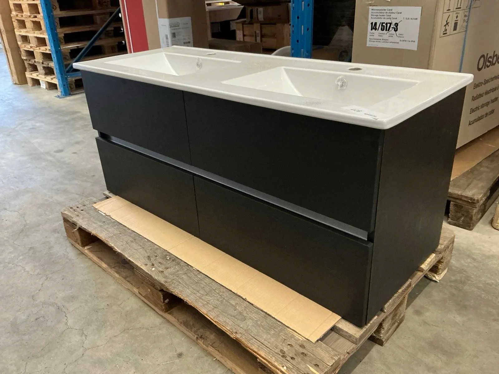 Merk: Riho Hoogte: 51cm Lengte: 120cm Breedte: 47cm Materiaal: Hout Kleur: Zwart Wastafel: 2 spoelbakken met kraangat en waste Onderkast: Ja Lades: 4 Softclose: true