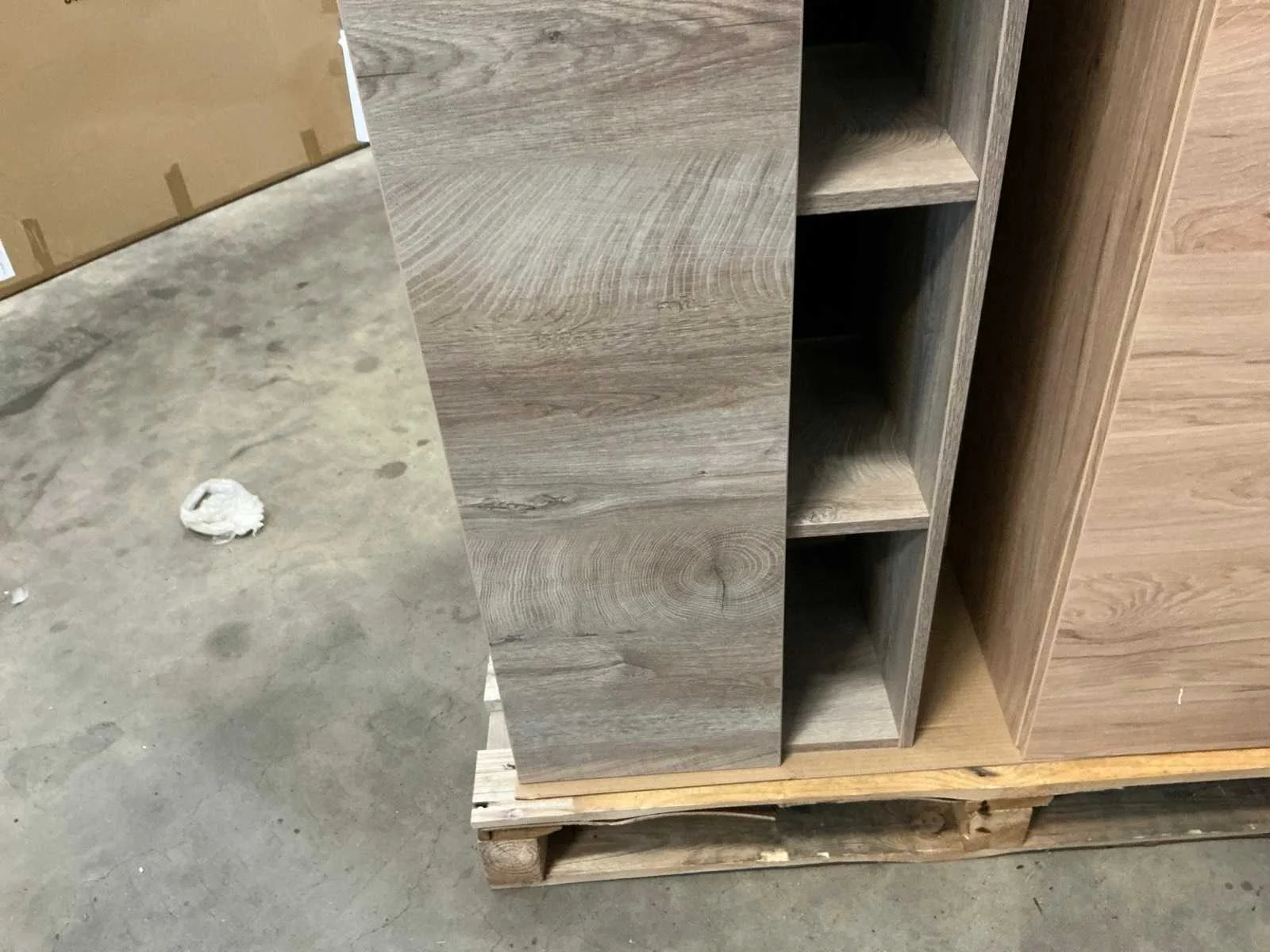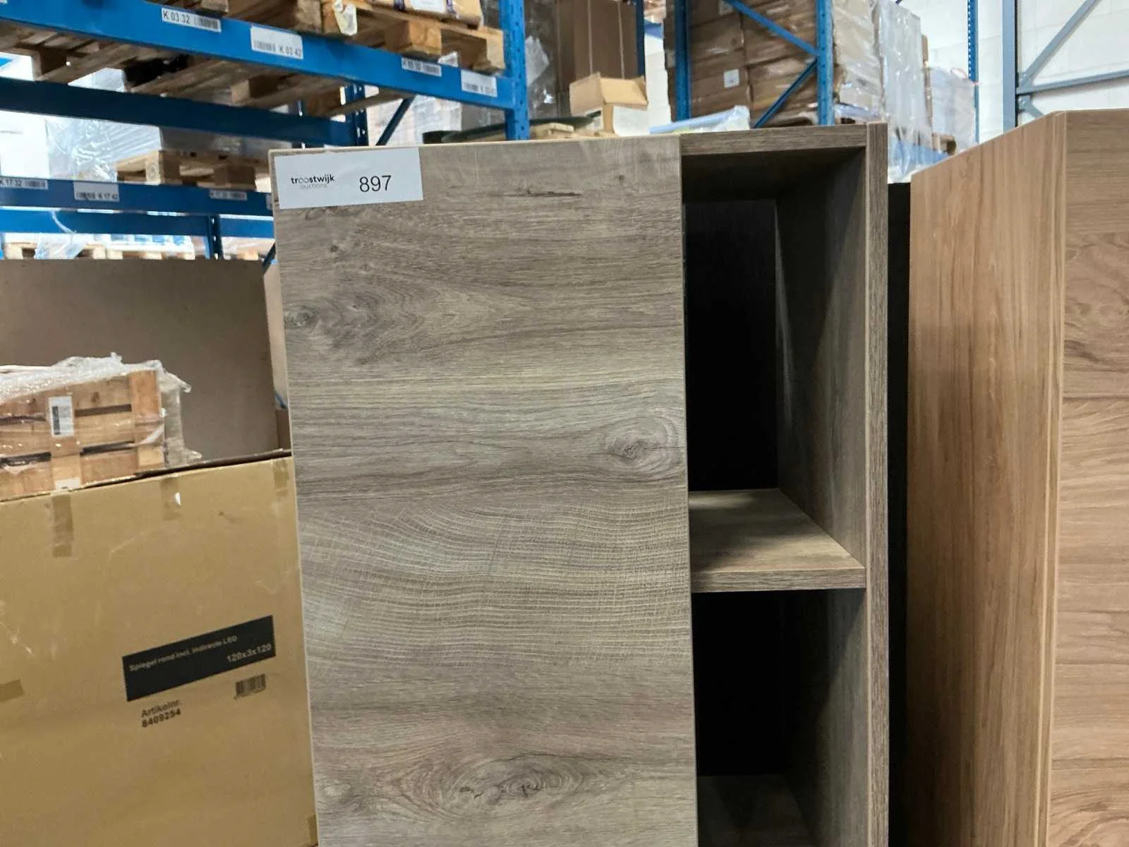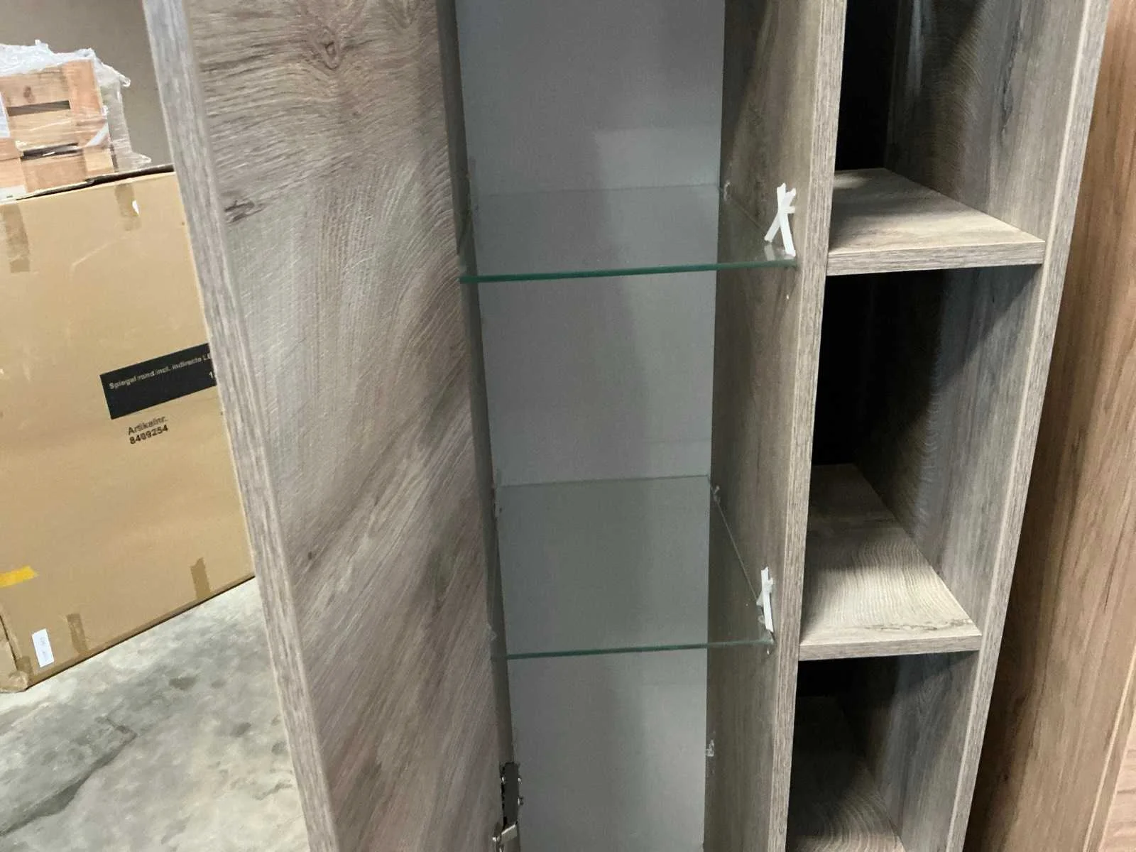 1 deur linksdraaiend, 2 glazen schapdragers Model: 1deurs Kleur: Ideal oak Lengte: 45cm Breedte: 35cm Hoogte: 169cm Materiaal: Hout/glas