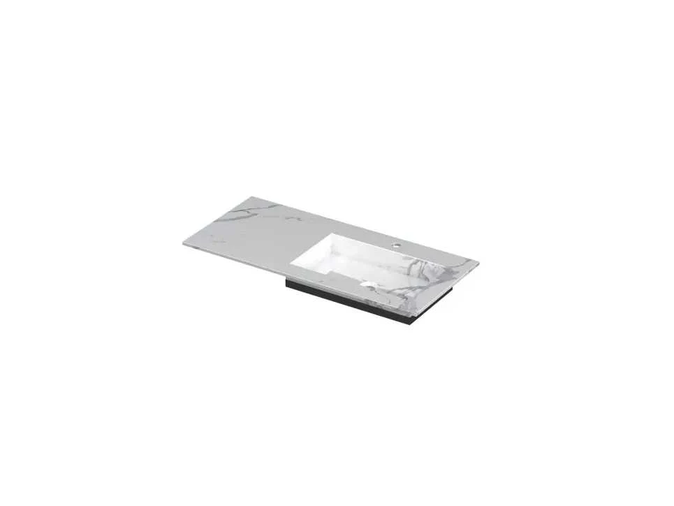 INK Post Wastafel rechts - 1 wasbak - 1 kraangat - 100x45x1 cm - Keramiek statuario glans De INK Post wastafel is een stijlvolle wastafel die perfect is voor elke badkamer. Hij is 100 cm breed, 45 cm diep en 1 cm hoog. De wastafel bevat 1 wasbak en 1 kraangat, de kleur van de wastafel is Statuario glans. De INK Post wastafel is gemaakt van 10 mm dik keramisch tegelmateriaal met superieure technische eigenschappen. Het 100% natuurlijke, keramische materiaal is gemaakt van granietmaterialen, glasmineralen en natuurlijke oxiden. Deze tegelplaten worden onder extreem hoge druk samengeperst en daarna door een oven op een temperatuur van 1200 graden gevoerd. Dit verdichtingsproces creëert een hard en esthetisch tegelmateriaal dat onderhoudsarm, niet poreus en bijzonder kras- en hittebestendig is en eveneens een lange levensduur garandeert. Deze slanke keramische watafels zijn verkrijgbaar in 7 breedtematen en 3 matte kleuren; wit marmer (Calacatta mat), grijs marmer (Armani Grey) en zwart marmer (Lauren Black) en 1 glanzende wit marmerkleur (Statuario glans). De Post wastafel heeft een wasbak met een centraal, schuin aflopende envelopbodem en laat zich prima combineren met alle 45 cm diep onderkasten uit de INK-collectie. Merk: INK Type: Post Totale afmeting L: 1000mm Totale afmeting Breedte: 450mm Totale afmeting Hoogte: 10mm