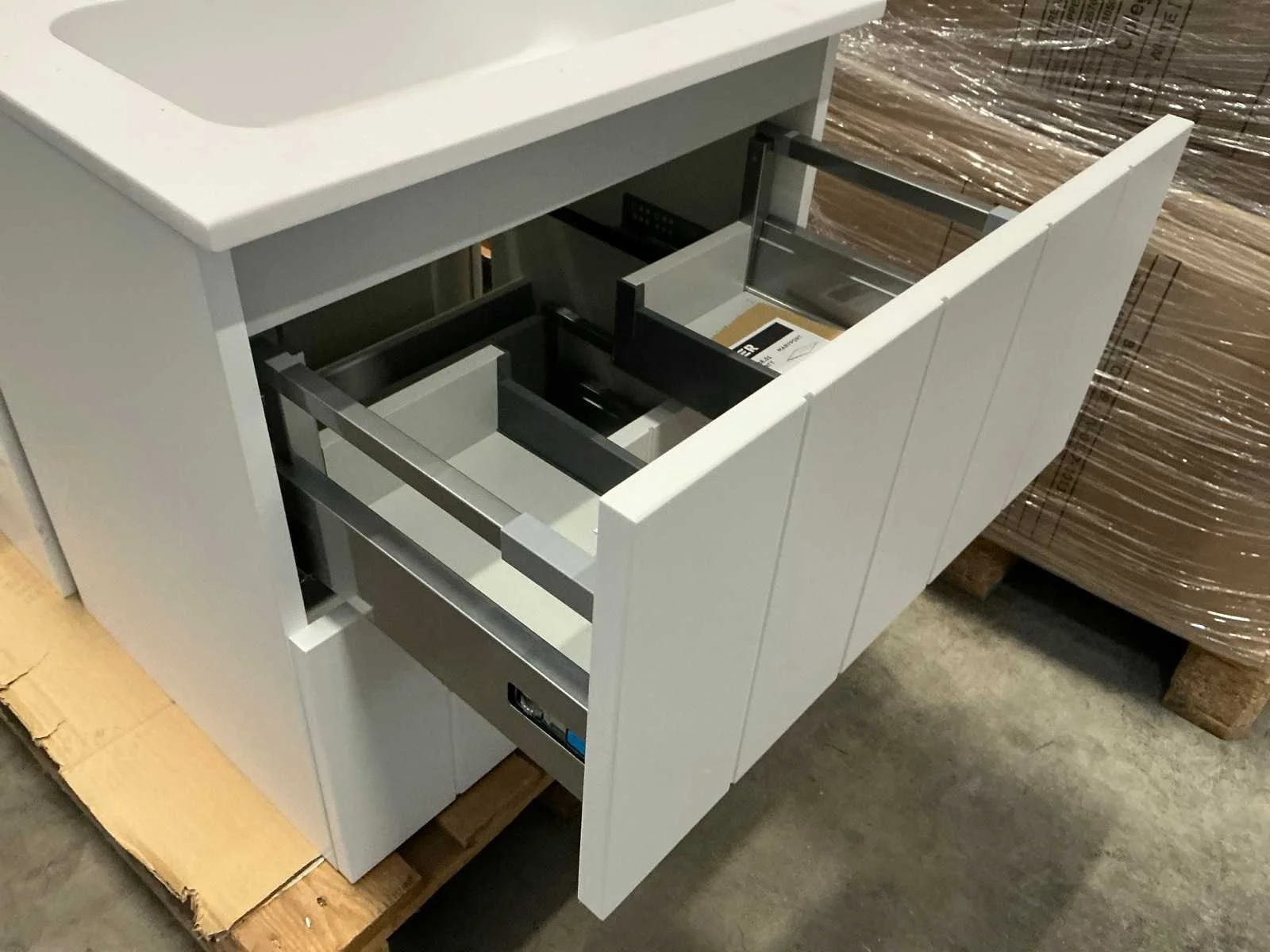 Model: Maryport Hoogte: 60cm Lengte: 60cm Breedte: 45cm Materiaal: Hout Kleur: Mat wit Spiegel: Ja, 60x60cm Lades: 2 Softclose: true