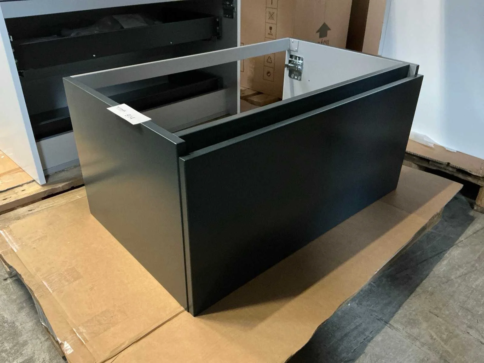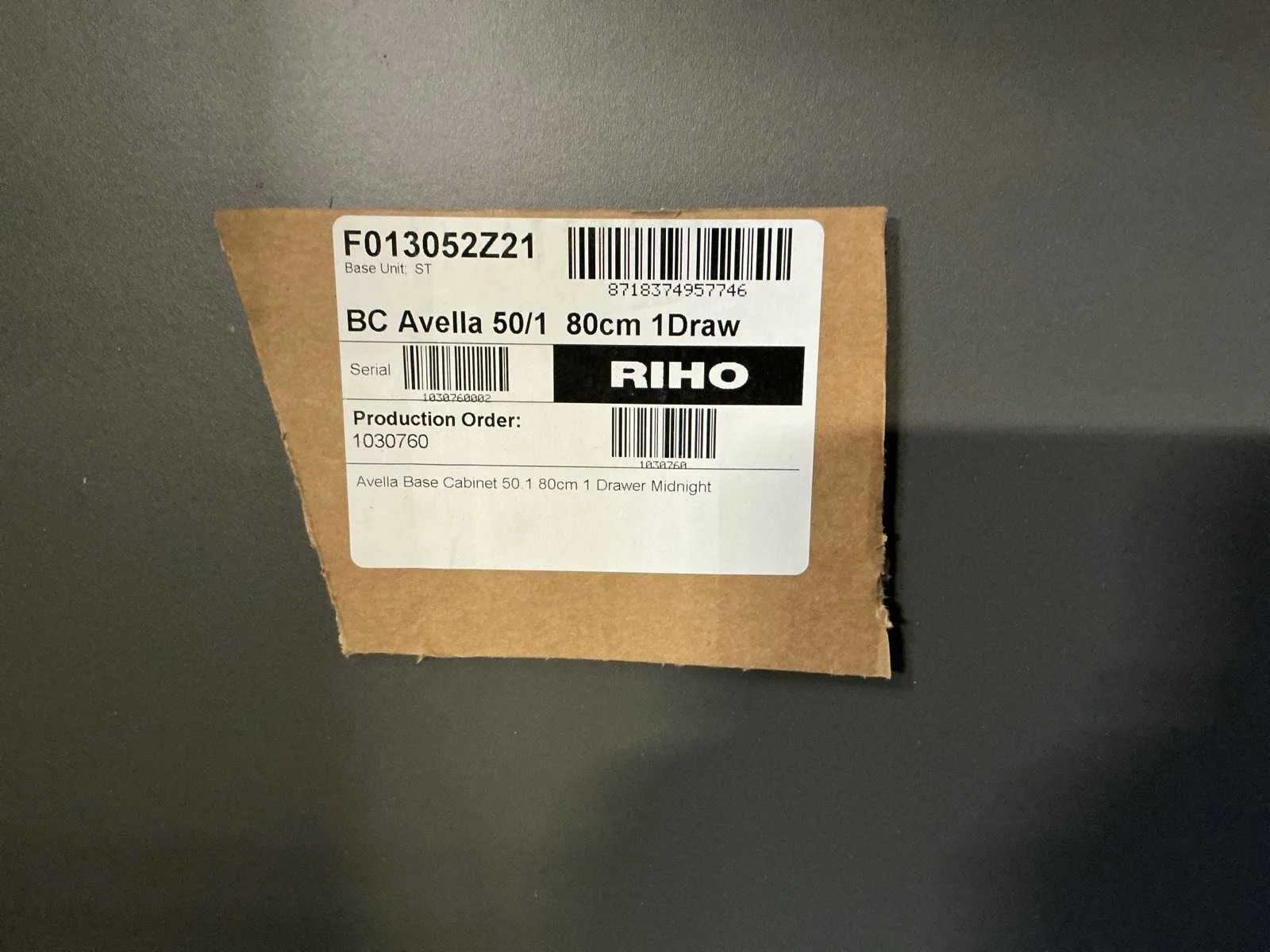 Merk: Riho Model: Avella Hoogte: 39cm Lengte: 80cm Breedte: 50cm Materiaal: Hout Kleur: Midnight Lades: 1 Softclose: true