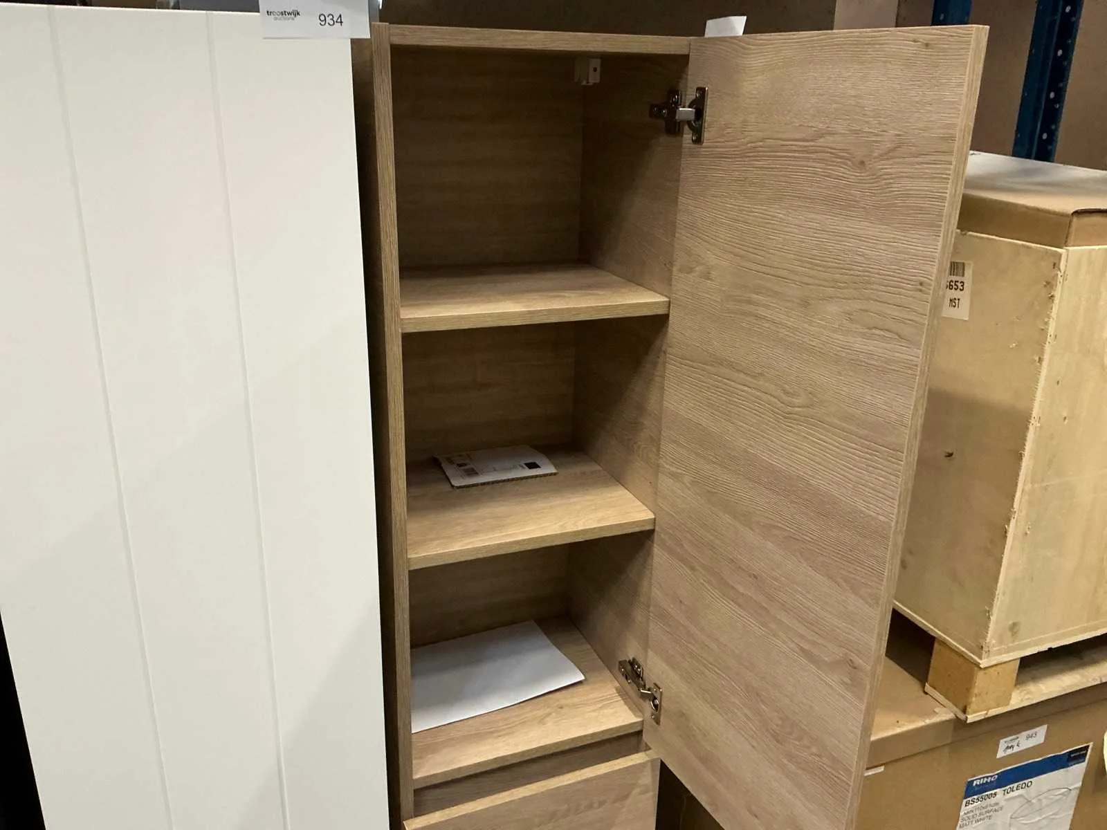 2 deurs, rechtsdraaiend Model: Loft Kleur: Naturel oak Lengte: 40cm Breedte: 35cm Hoogte: 160cm Materiaal: Hout