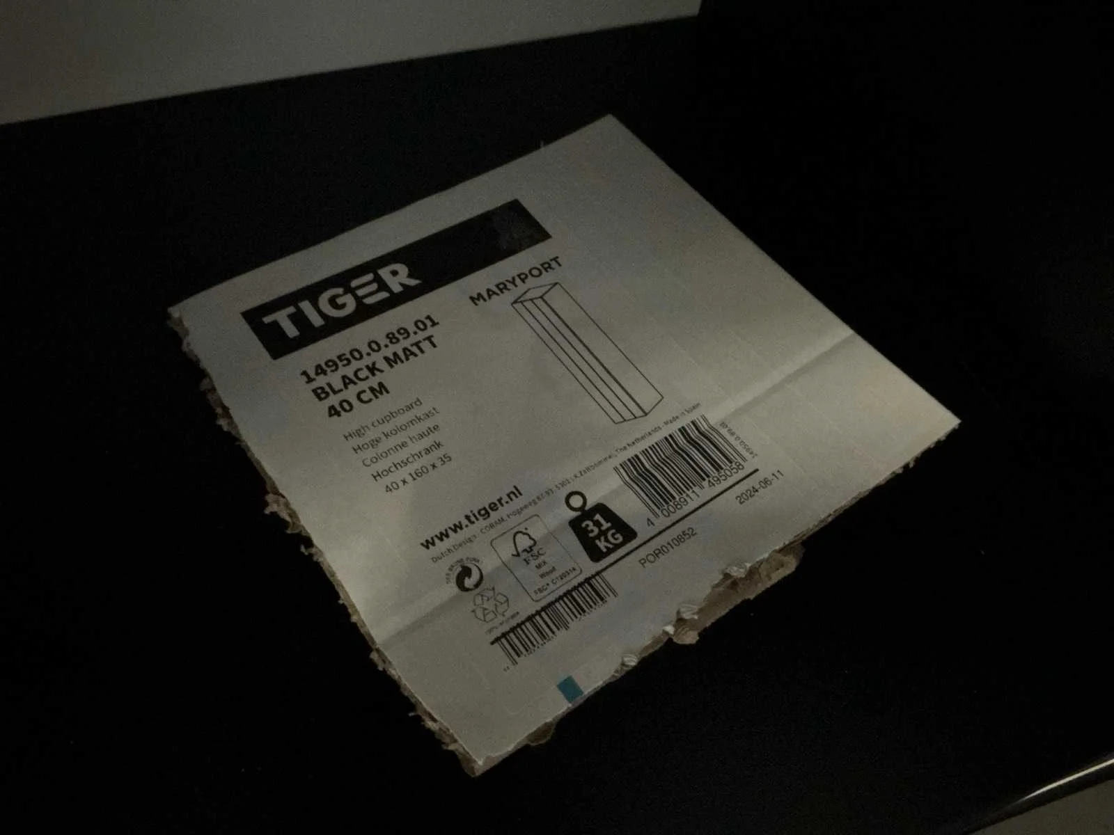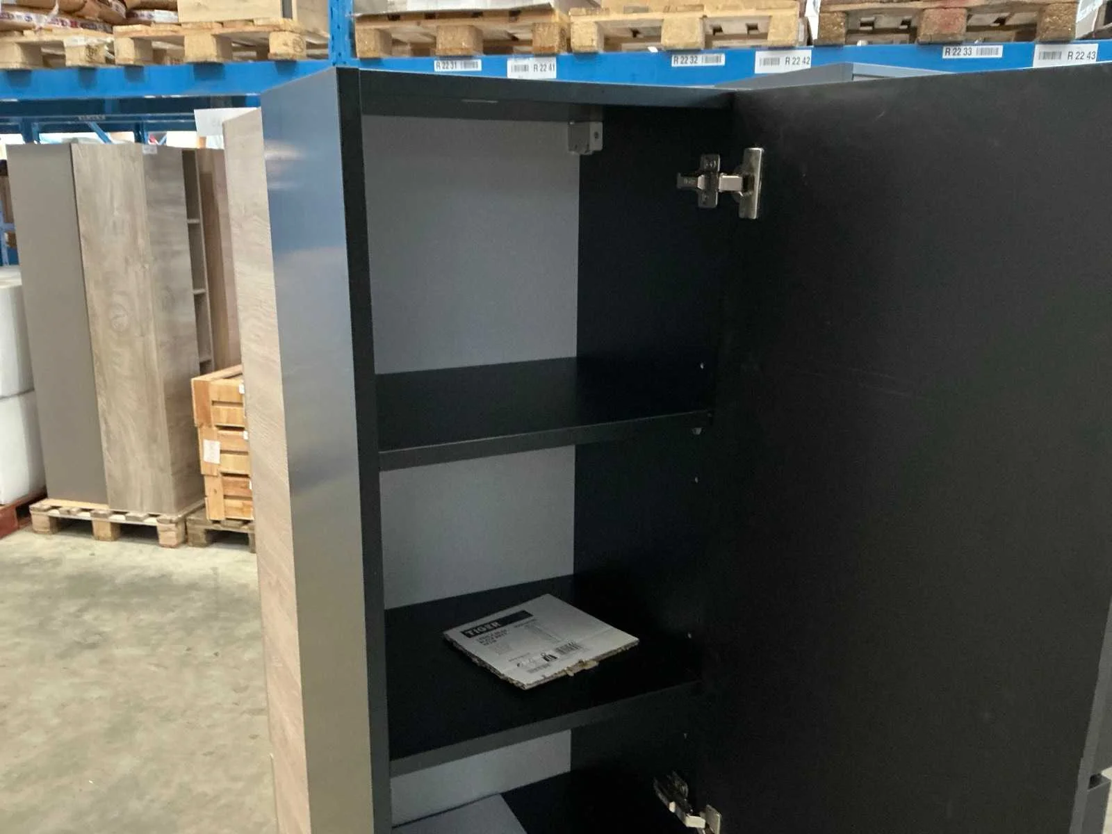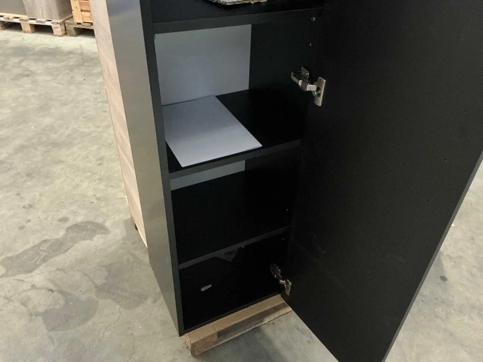 Licht beschadigd Model: Maryport Kleur: Zwart Lengte: 40cm Breedte: 35cm Hoogte: 160cm Materiaal: Hout
