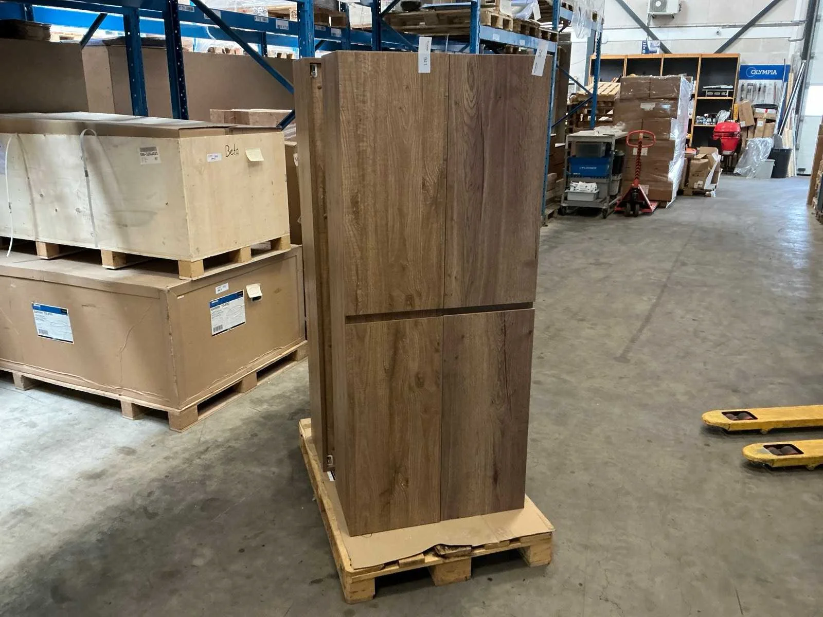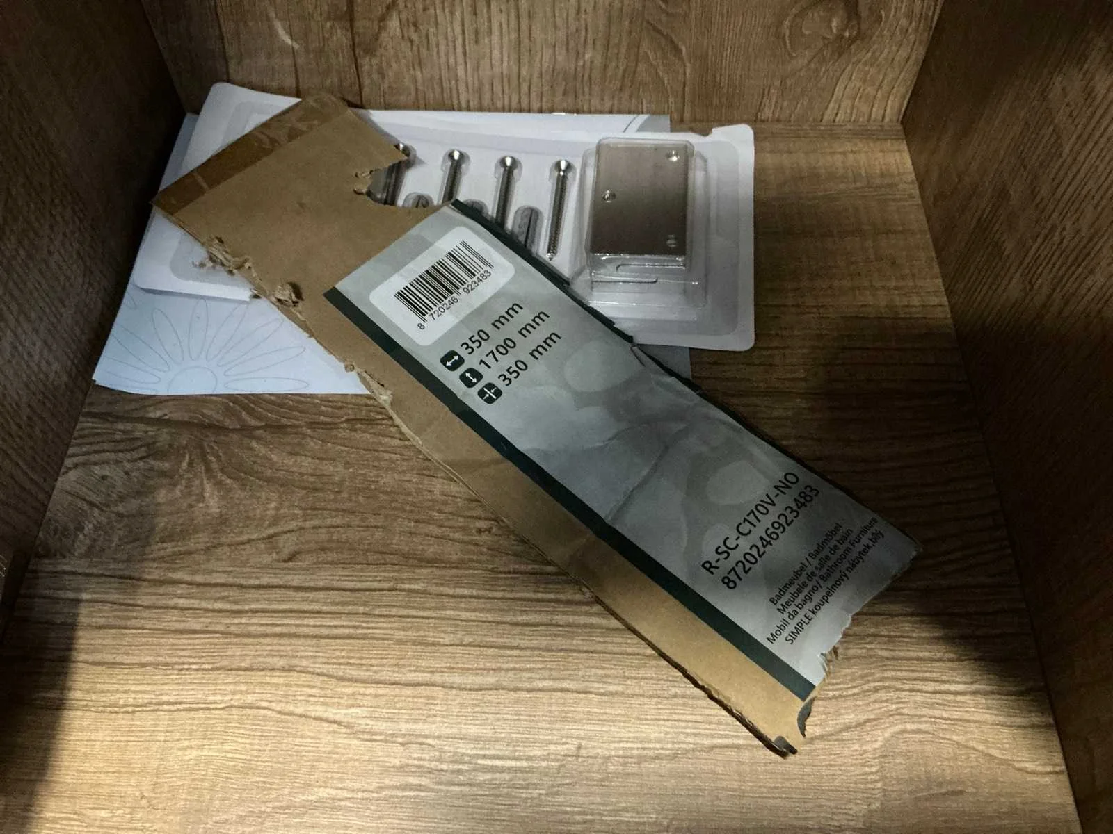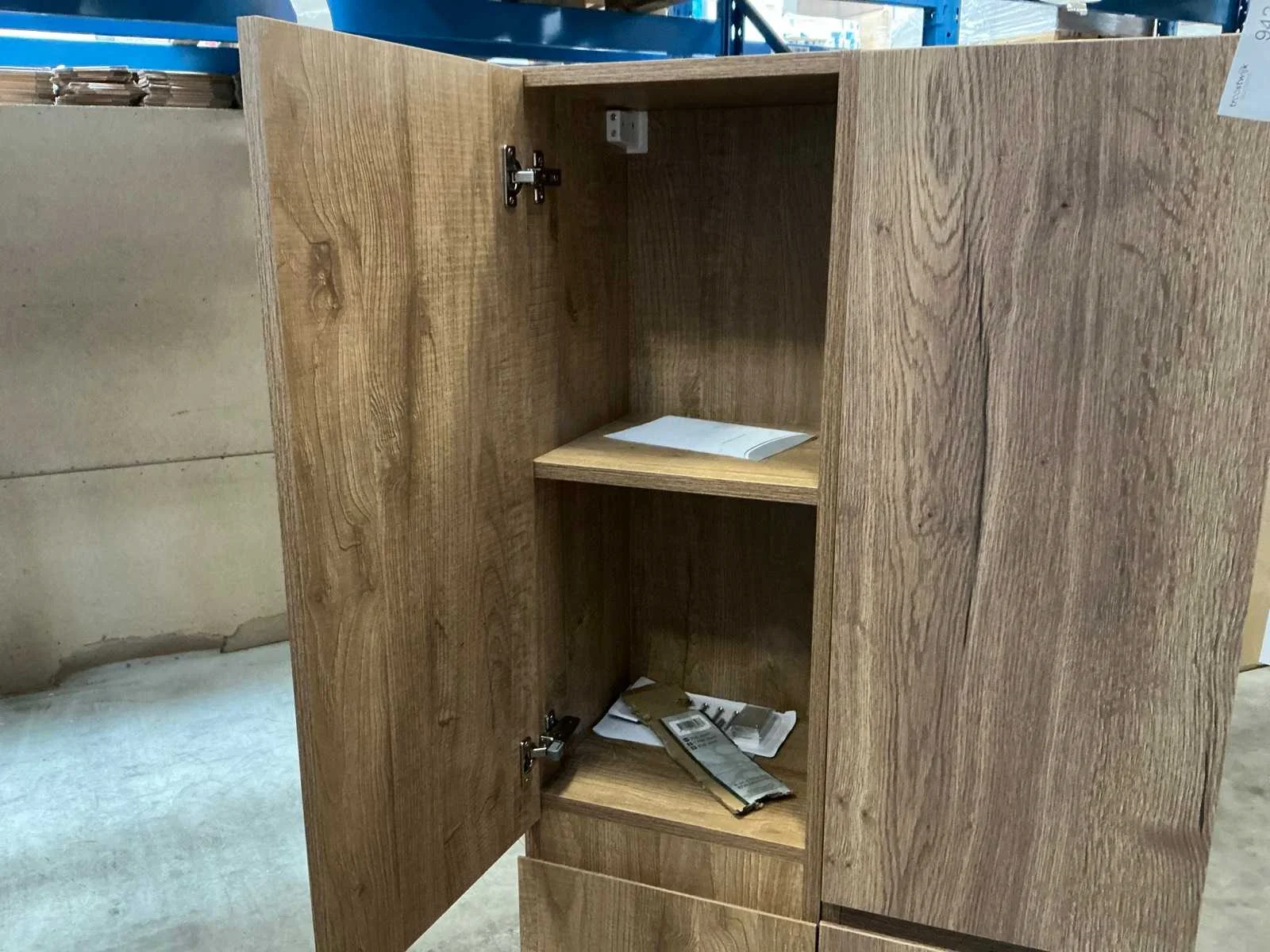 Betreft linker last, 2 deuren linksdraaiend Merk: Riho Kleur: Licht oak Lengte: 35cm Breedte: 35cm Hoogte: 170cm Materiaal: Hout