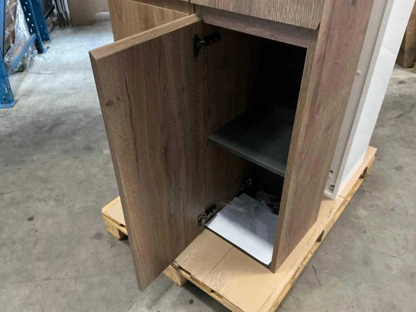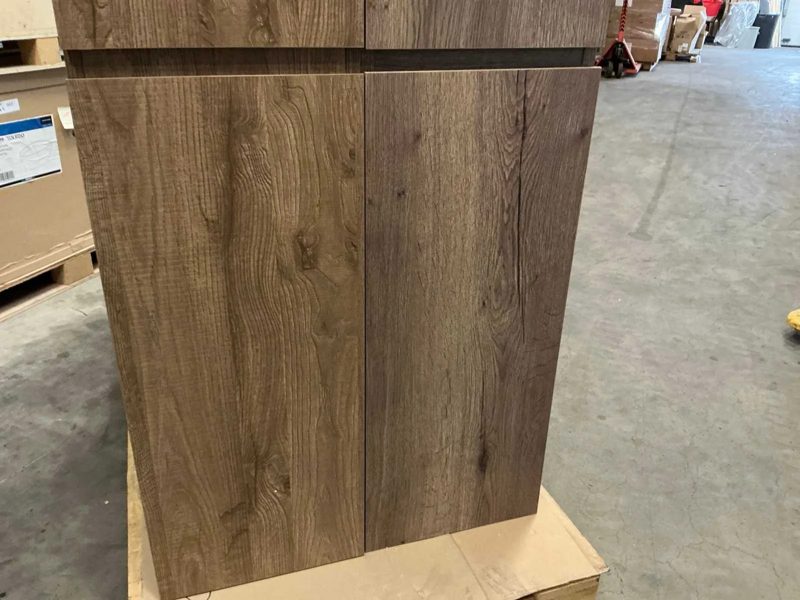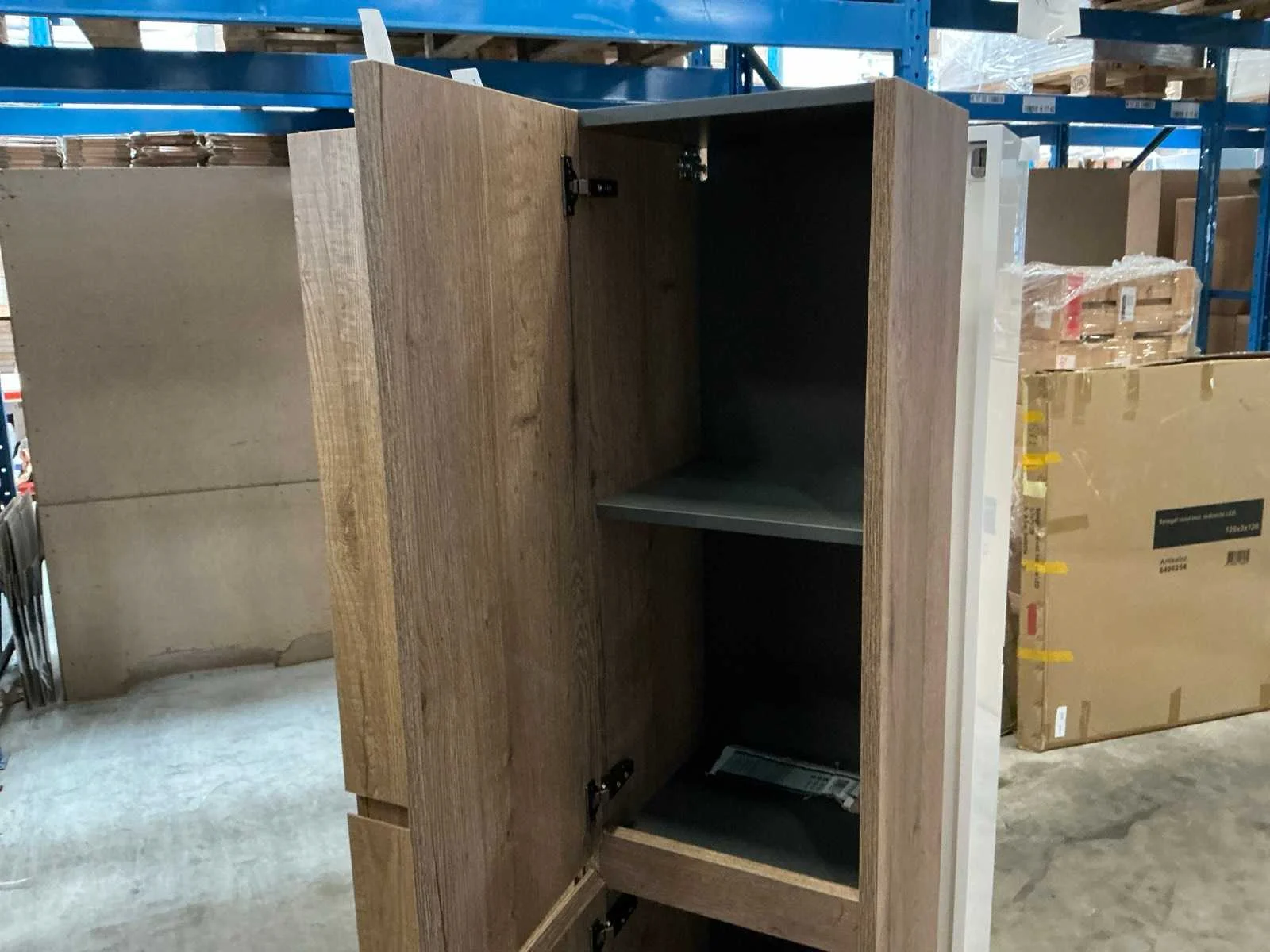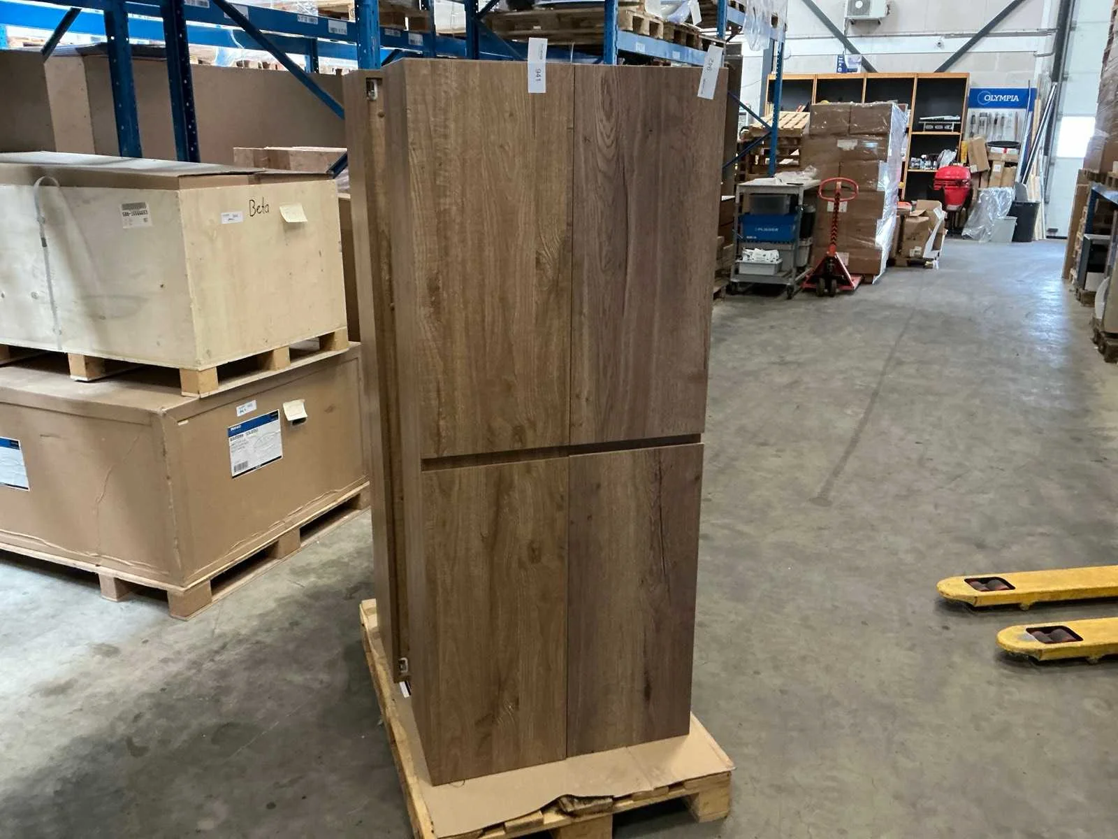 Betreft rechter last, 2 deuren linksdraaiend Merk: Riho Kleur: Tabacco oak Lengte: 35cm Breedte: 35cm Hoogte: 170cm Materiaal: Hout