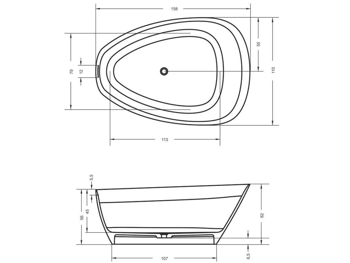 Merk: Riho Model: Toledo Kleur: Wit mat Lengte: 160cm Breedte: 110cm Hoogte: 61cm Materiaal: Solid surface