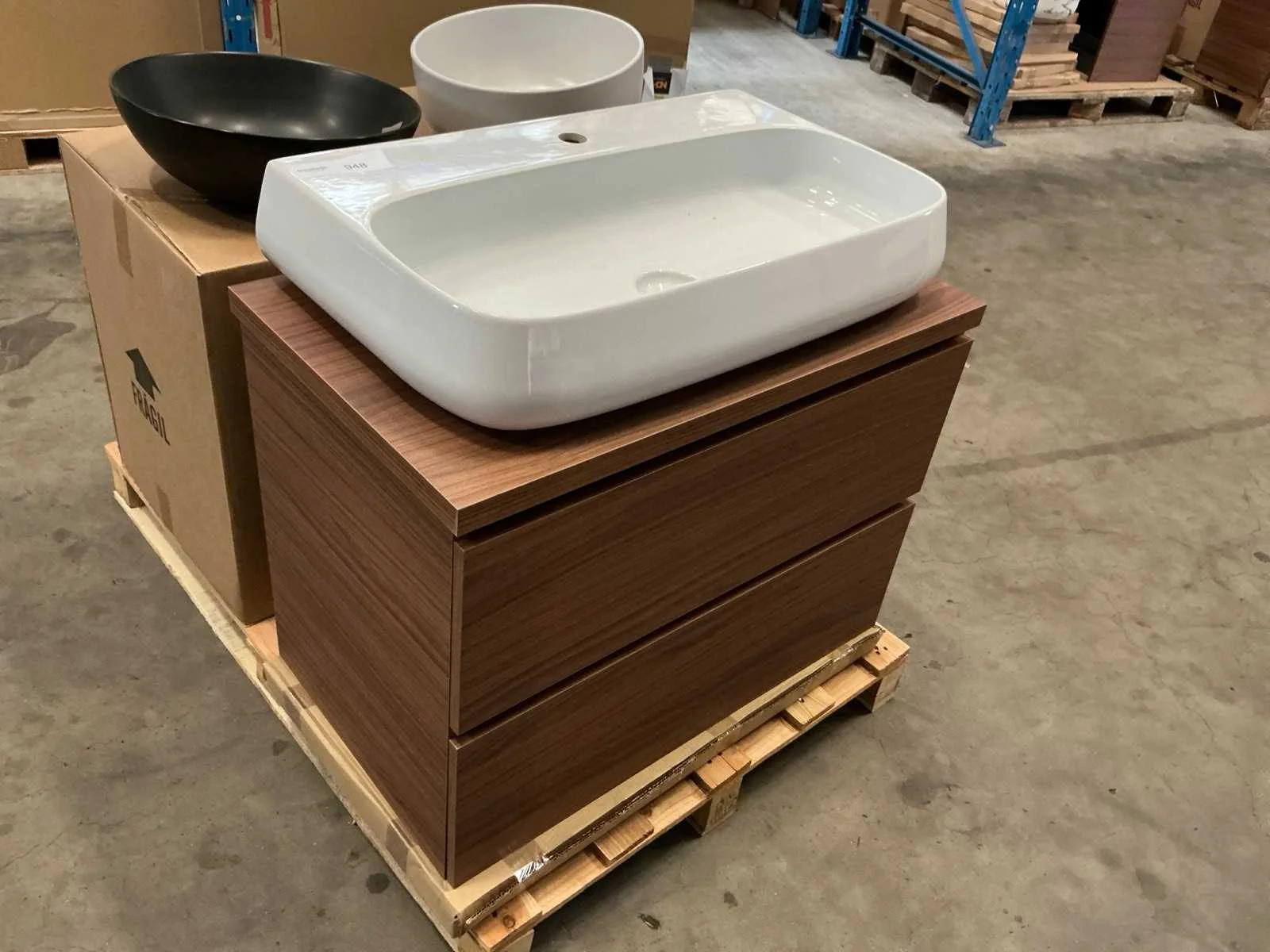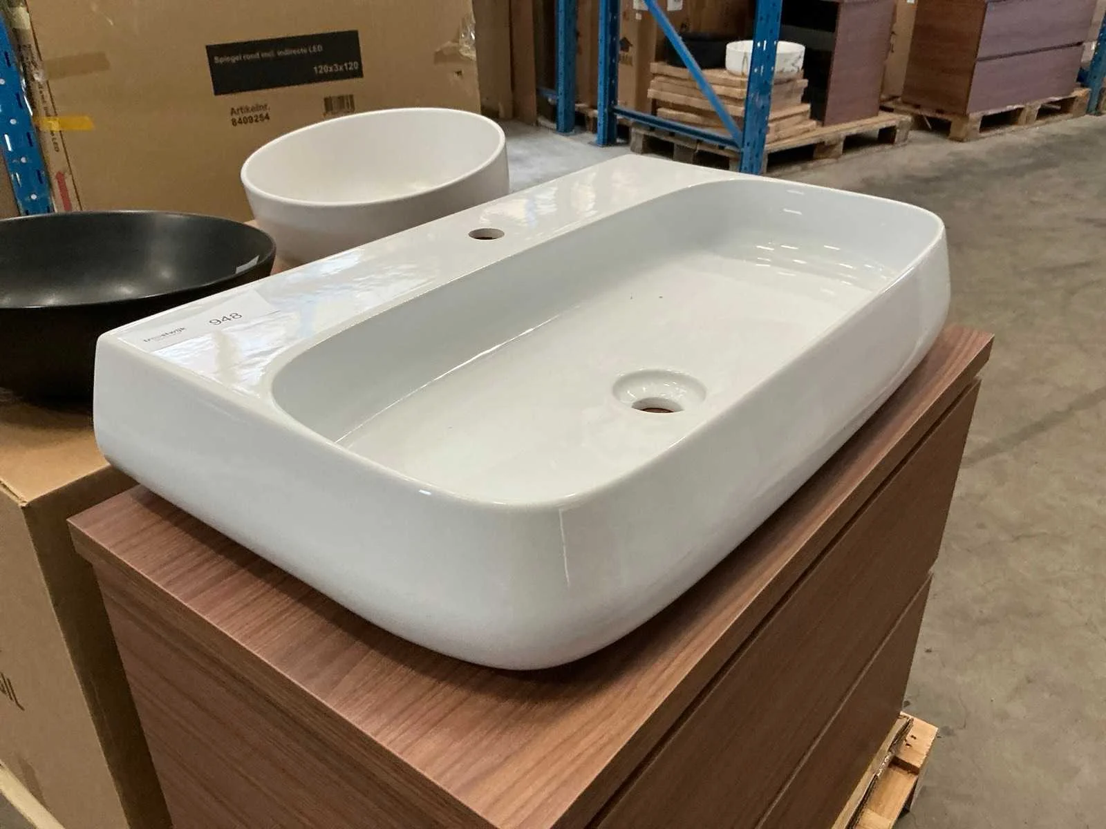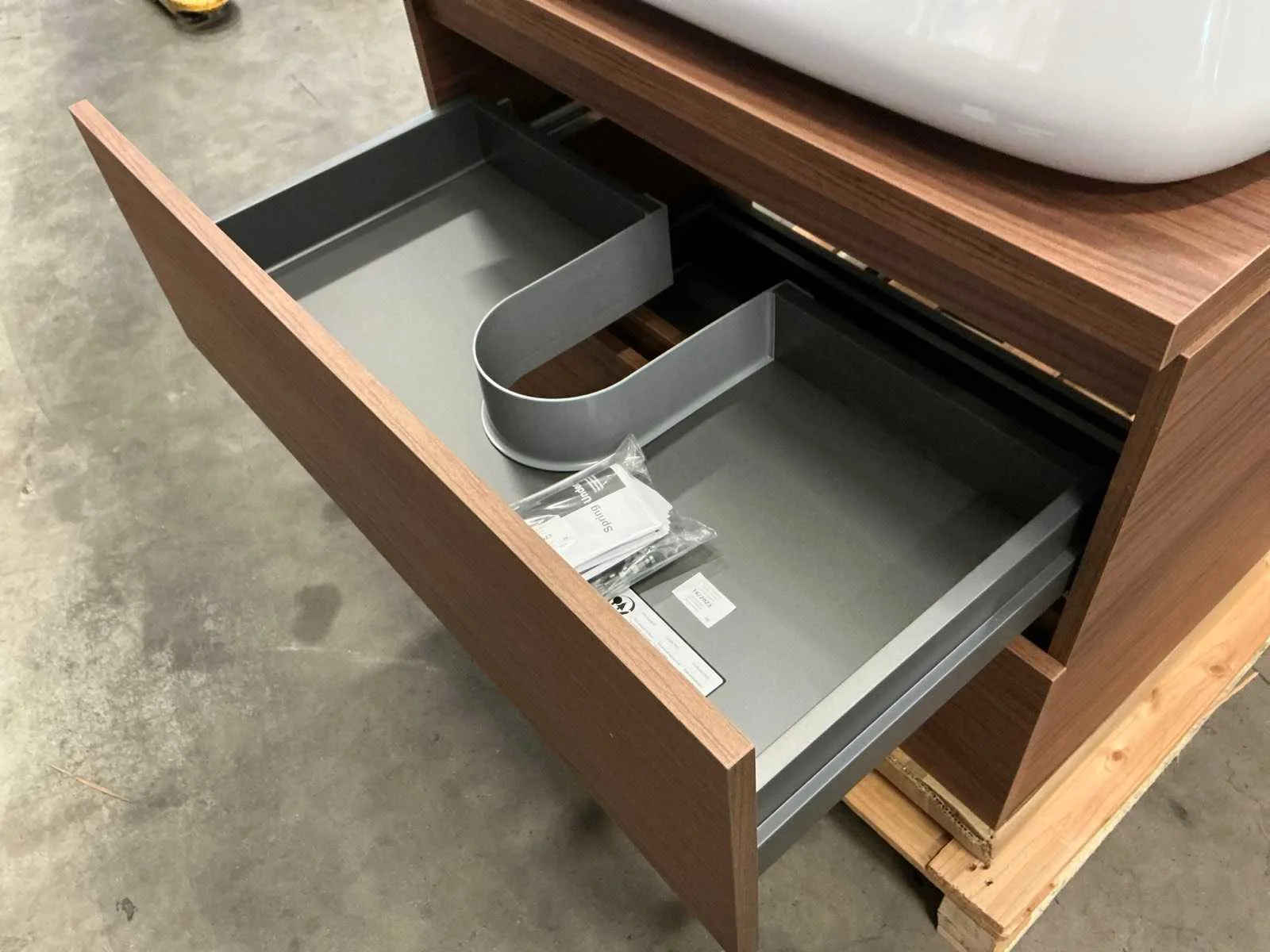 Merk: Riho Model: Spring Hoogte: 64cm Lengte: 80cm Breedte: 46cm Materiaal: Hout en keramiek Kleur: Oak Wastafel: Ja, met kraangat Onderkast: Ja Lades: 2 Softclose: true