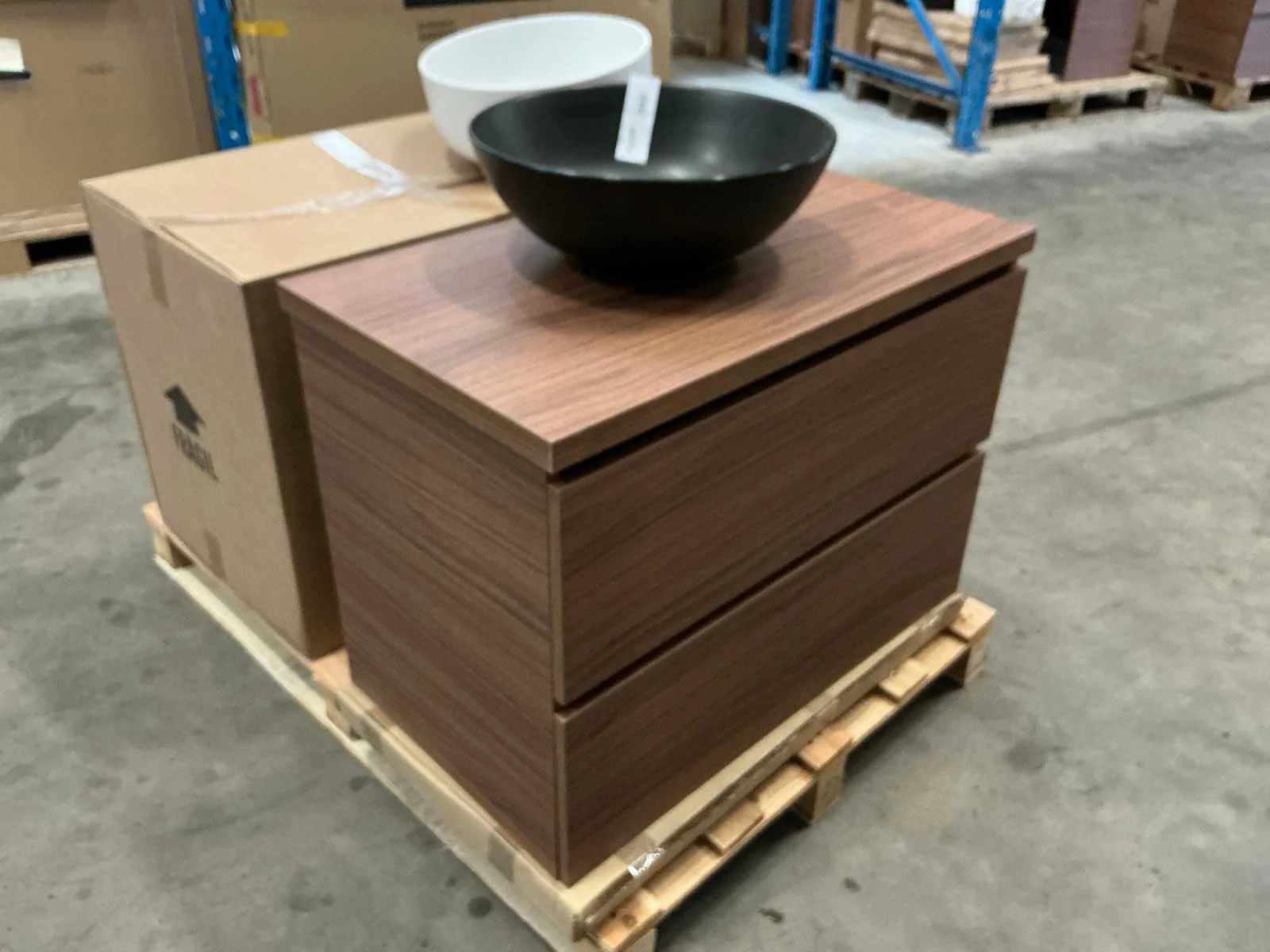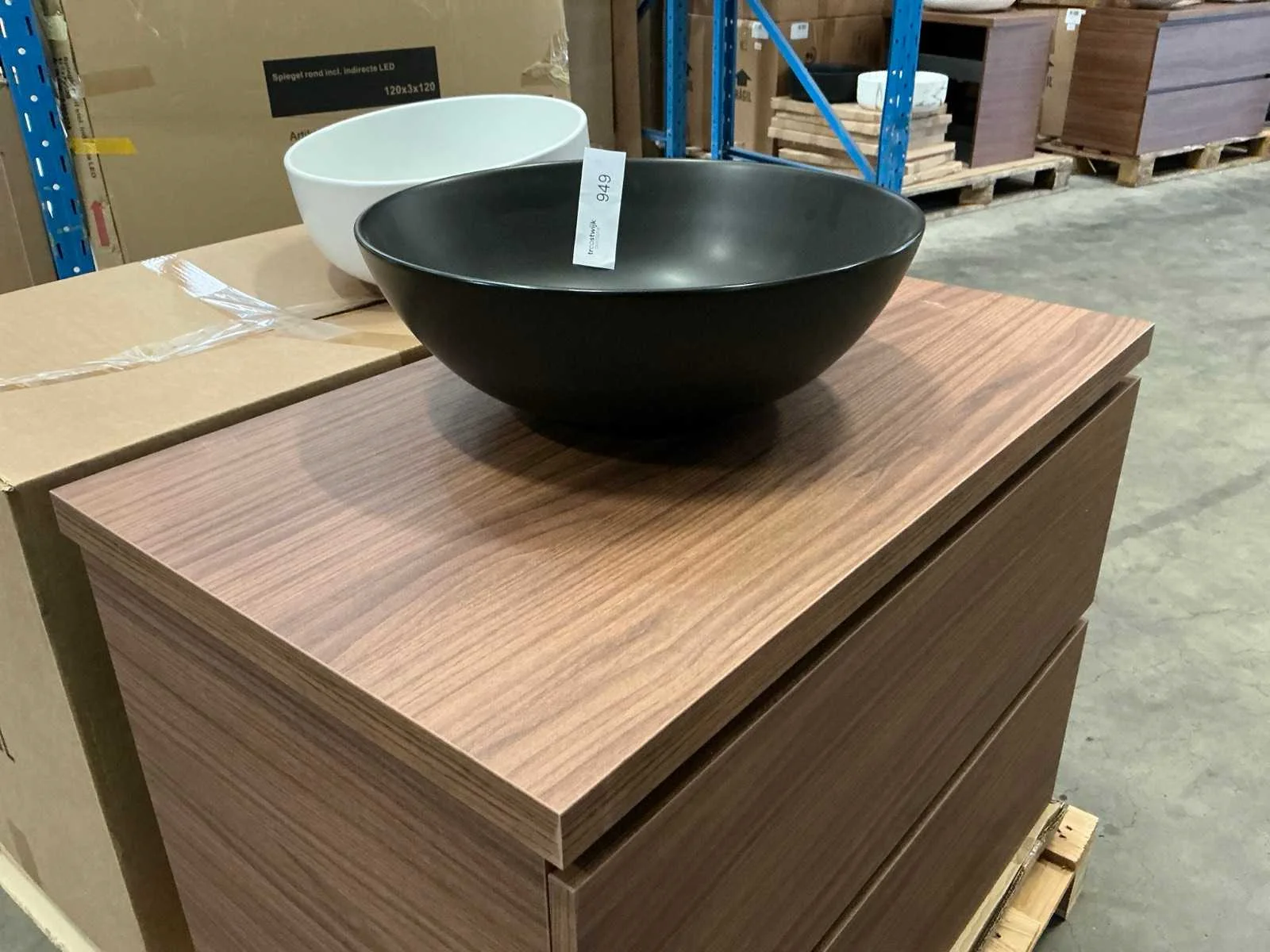 Merk: Riho Model: Spring Hoogte: 64cm Lengte: 80cm Breedte: 46cm Materiaal: Hout en keramiek Kleur: Oak Waskom: Ja Onderkast: Ja Lades: 2 Softclose: true