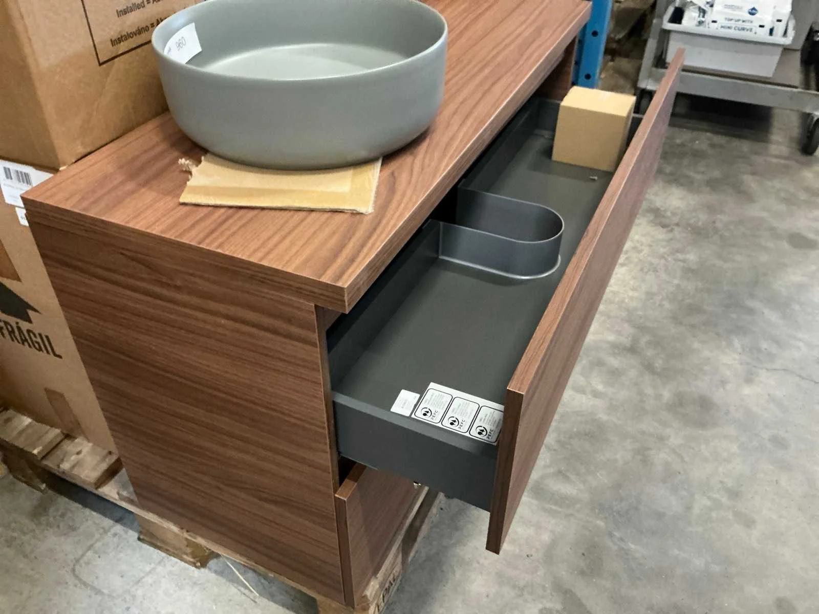 Merk: Riho Model: Spring Hoogte: 64cm Lengte: 100cm Breedte: 40cm Materiaal: Hout en keramiek Kleur: Oak Waskom: Ja, 35x35x12cm Onderkast: Ja Lades: 2 Softclose: true