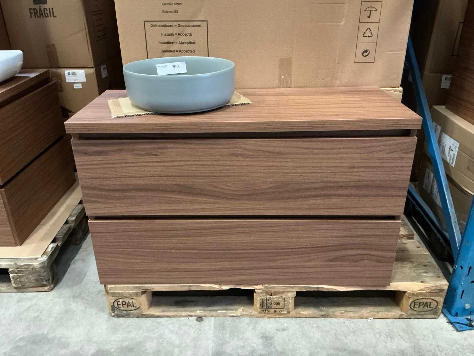 Merk: Riho Model: Spring Hoogte: 64cm Lengte: 100cm Breedte: 46cm Materiaal: Hout en keramiek Kleur: Oak Waskom: Ja, 35x35x12cm Onderkast: Ja Lades: 2 Softclose: true