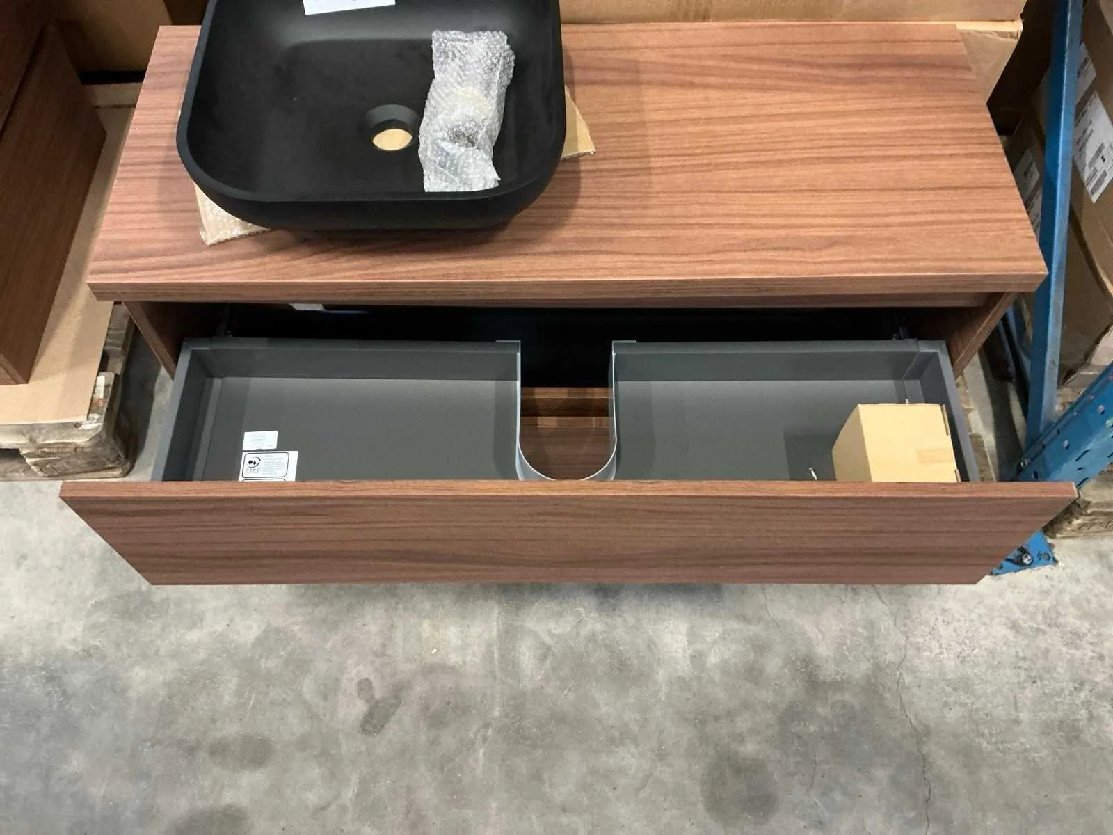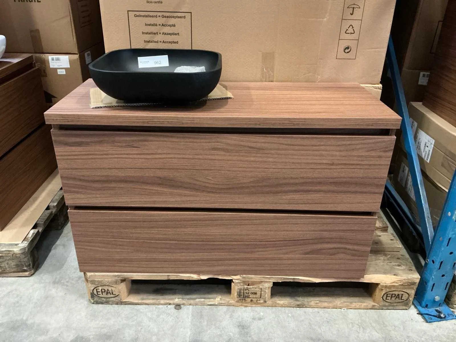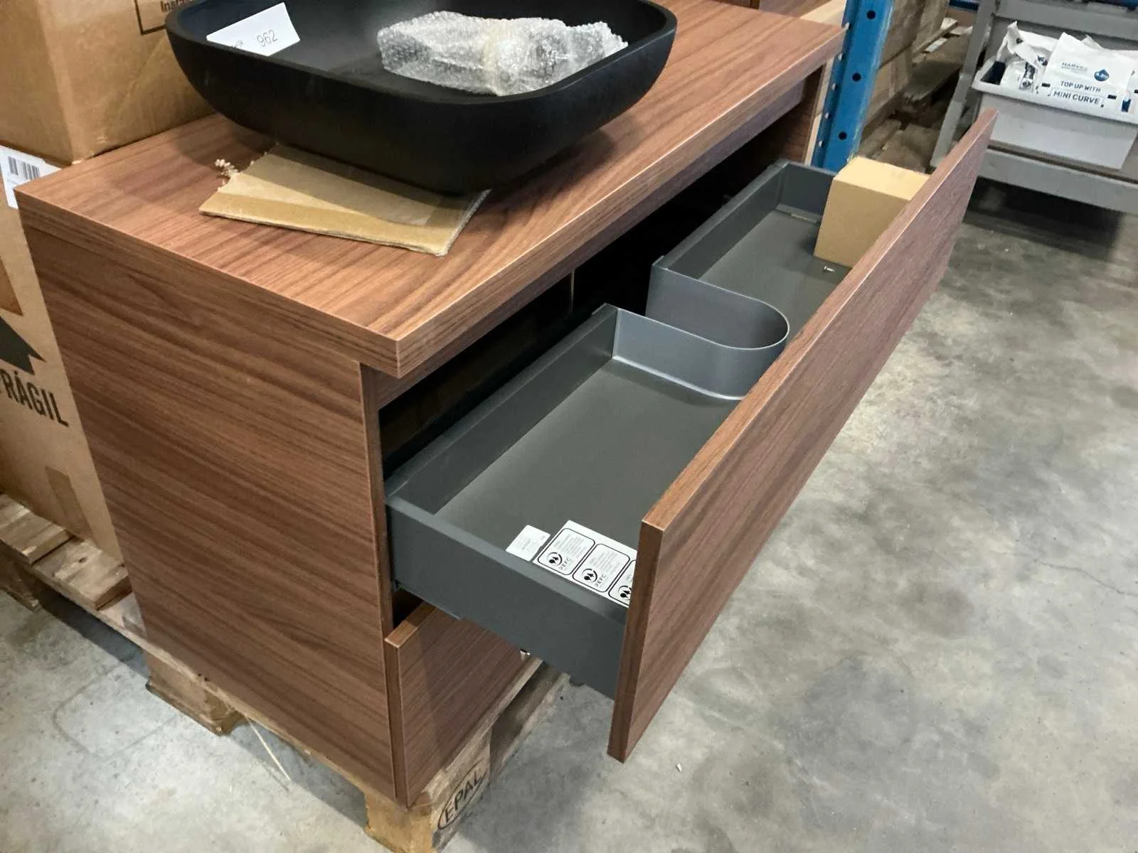 Merk: Riho Model: Spring Hoogte: 64cm Lengte: 100cm Breedte: 46cm Materiaal: Hout en keramiek Kleur: Oak Waskom: Ja, 38x38cm Onderkast: Ja Lades: 2 Softclose: true