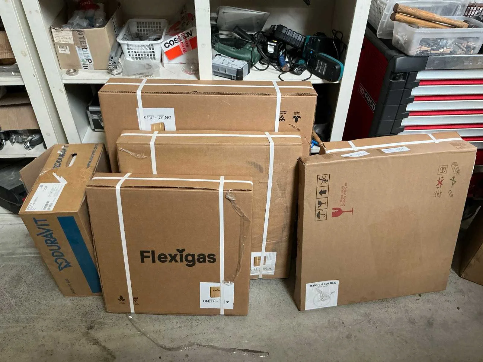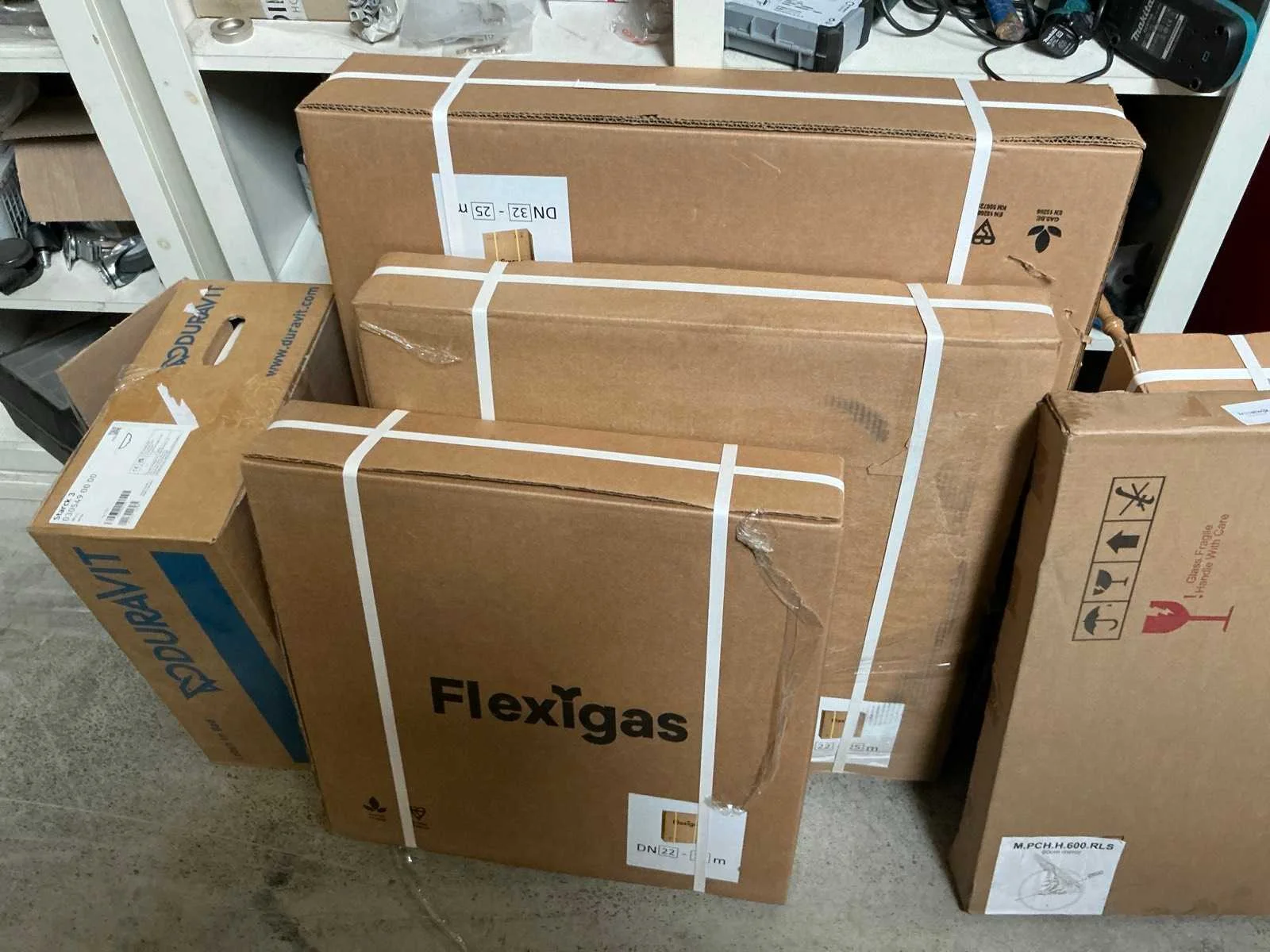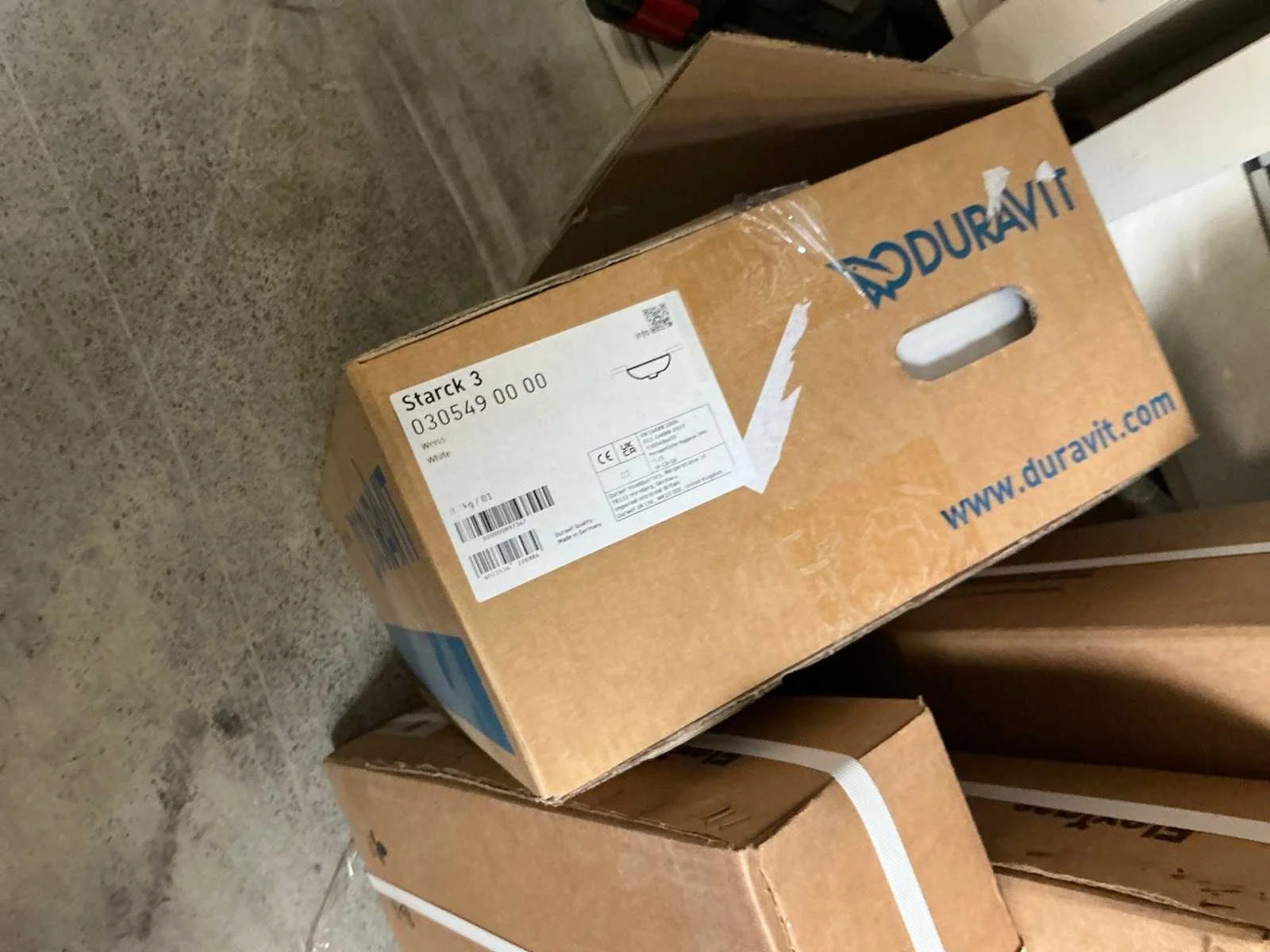 Bestaande uit: 4x spiegel divers en 1x Duravit Starck 3 waskom