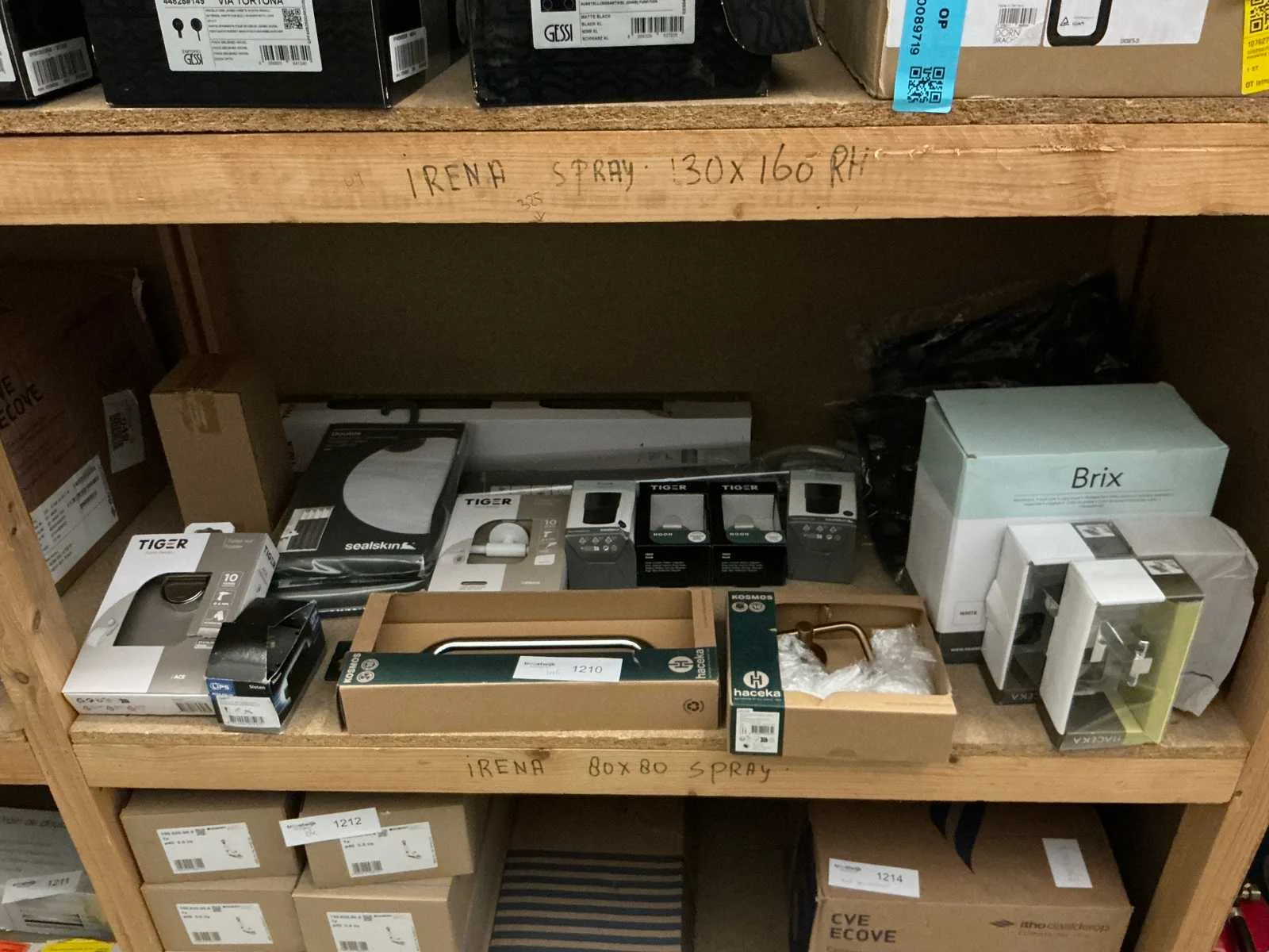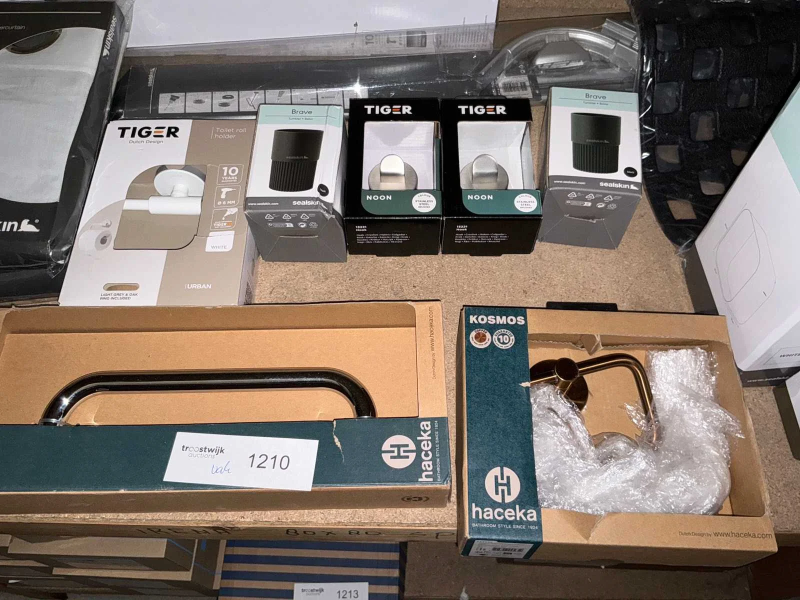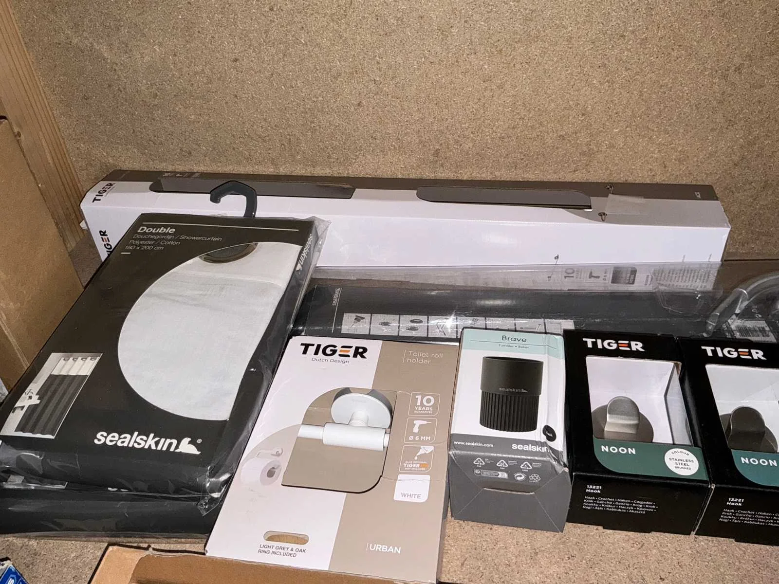 Bestaande uit: accessoires, steunen, gordijnen, toiletrolhouder, etc.