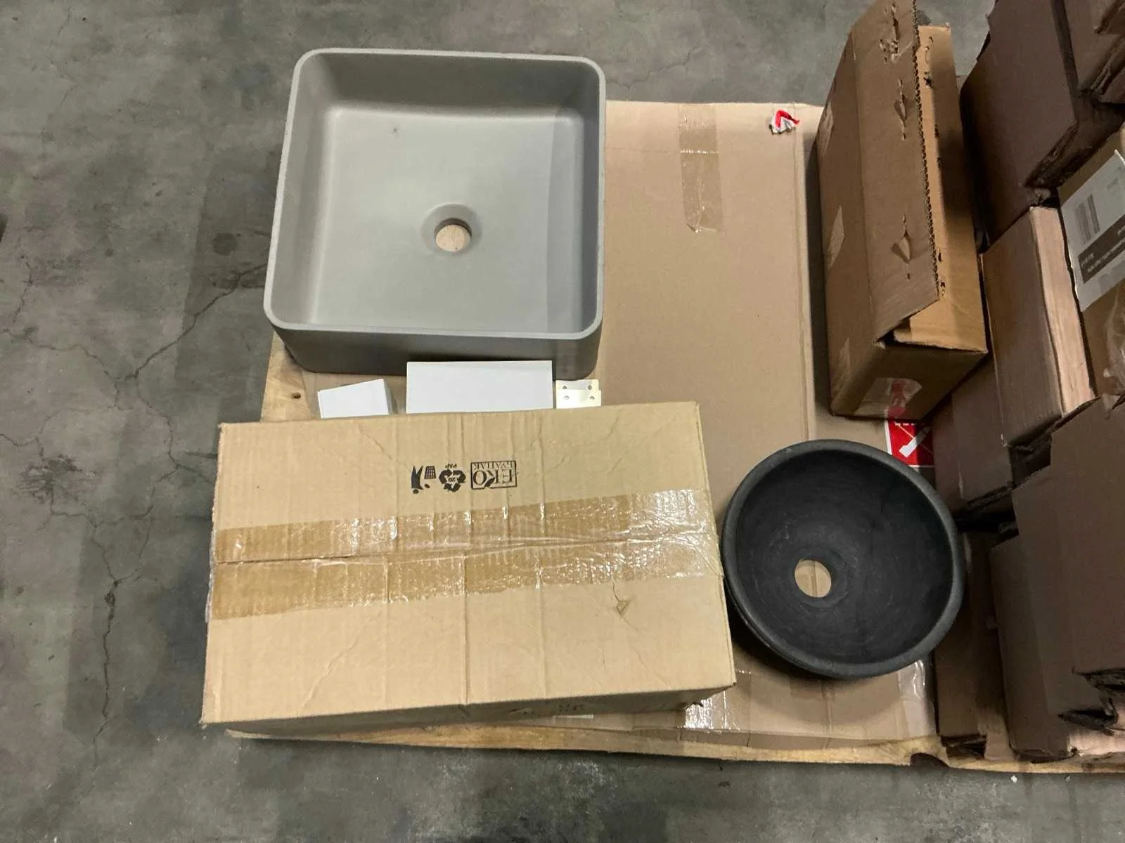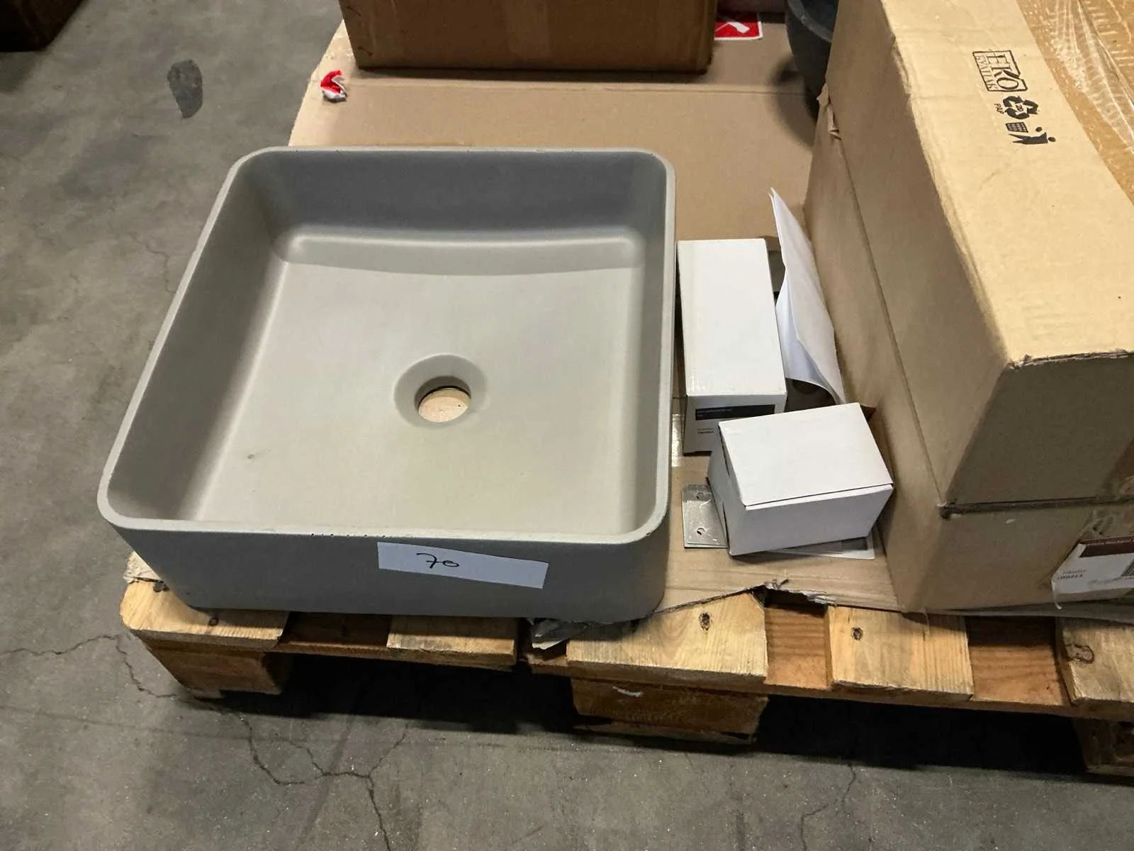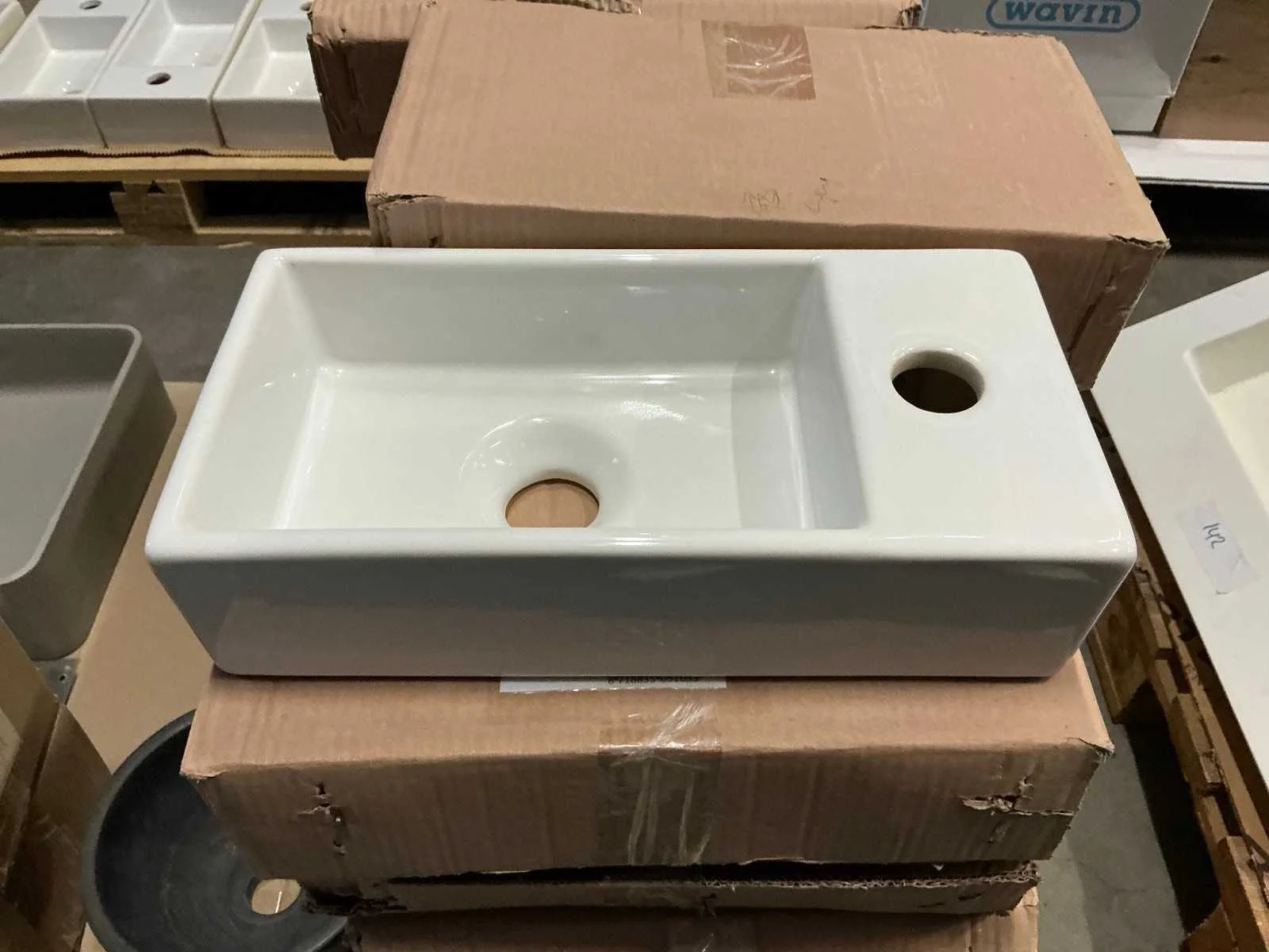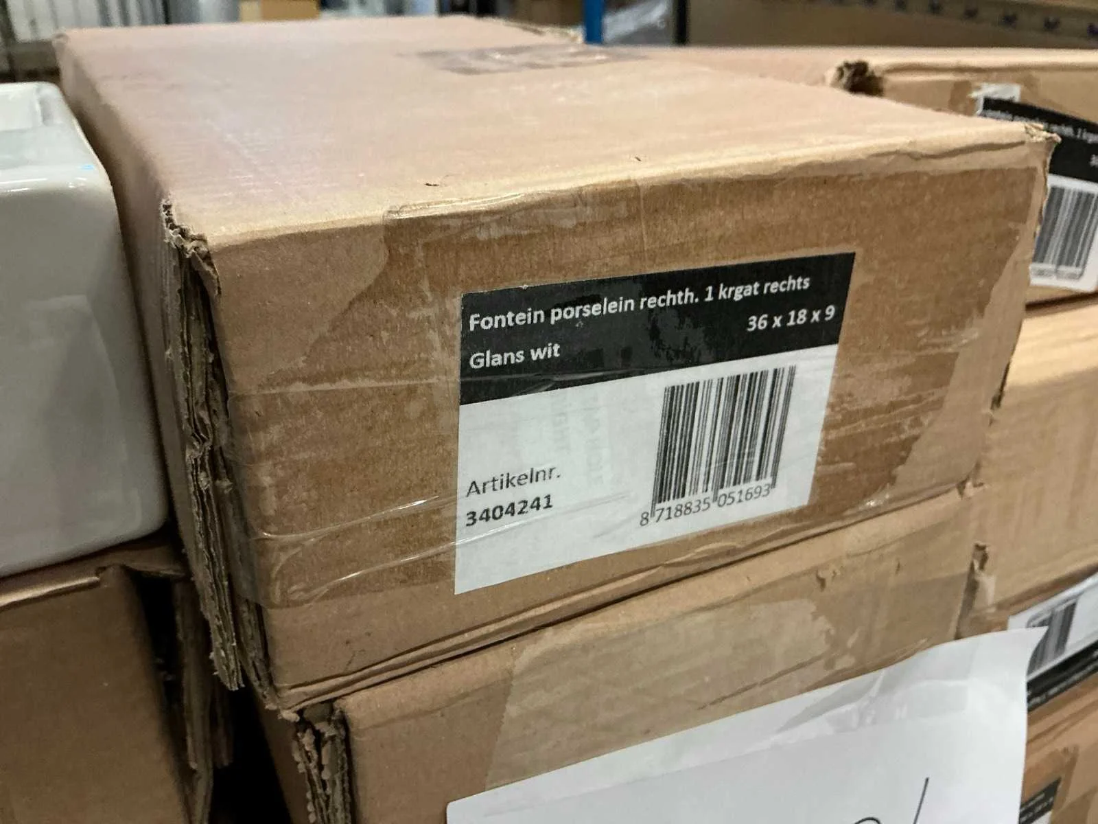 Bestaande uit: 21x fontein 36x18x9cm, wit, 1x waskom 36x36cm, 1x kom 24x24cm, 2x fontein 40x23x13cm