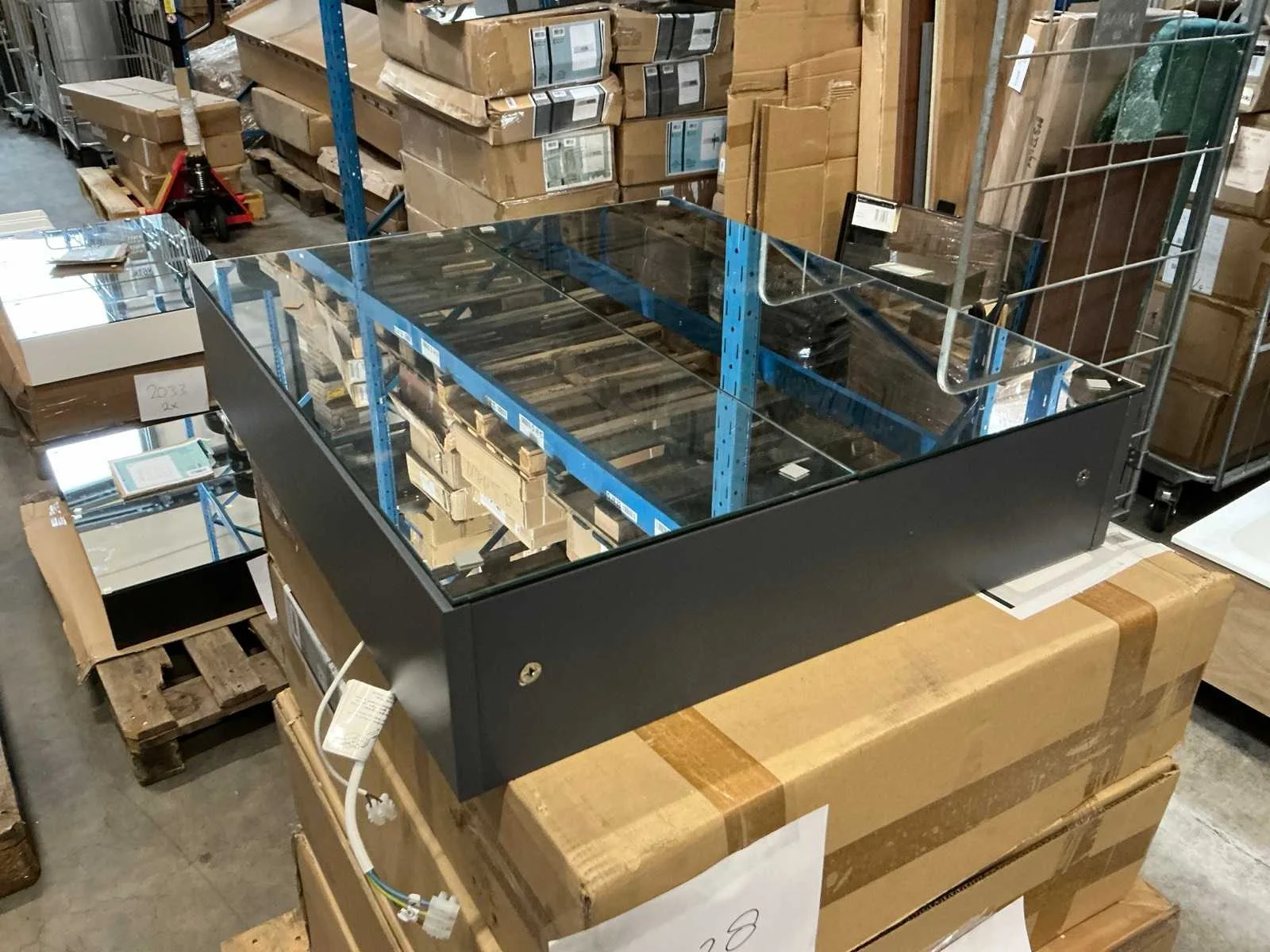 Merk: Riho Kleur: Painted mat antraciet Lengte: 60cm Breedte: 15cm Hoogte: 70cm Materiaal: Hout/glas