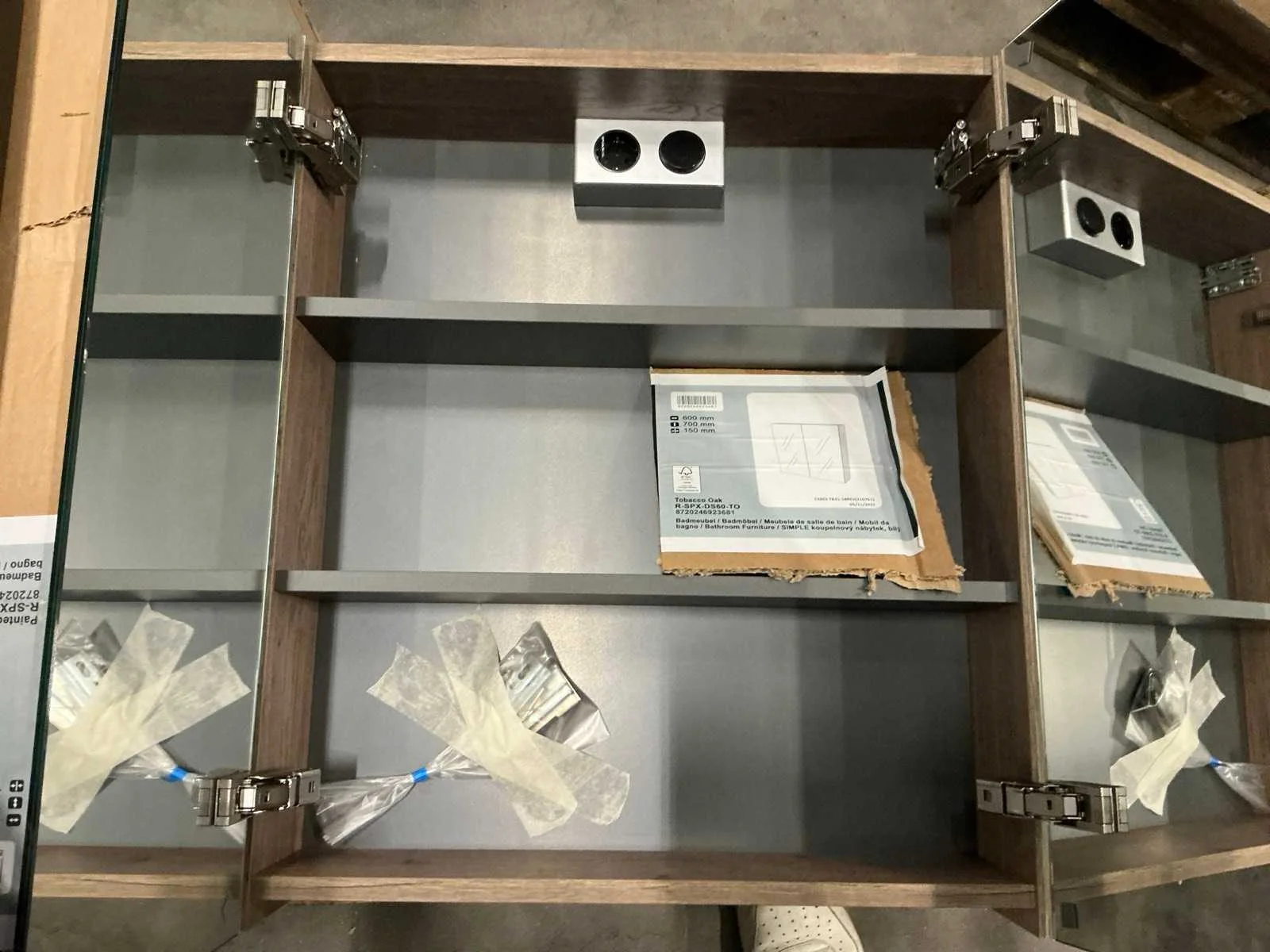 Merk: Riho Kleur: Tabaco oak Lengte: 60cm Breedte: 15cm Hoogte: 70cm Materiaal: Hout/glas