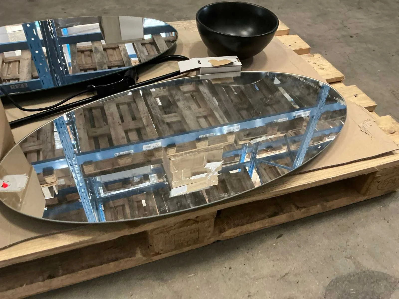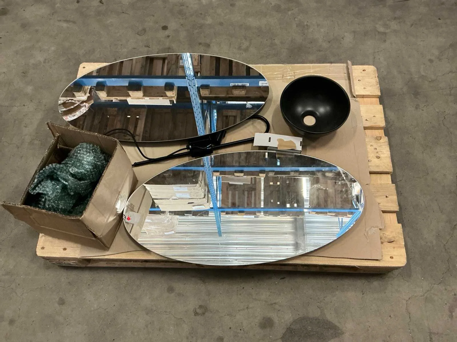 Bestaande uit: 2 spiegels 80x40cm, 1 waskom 24x24cm