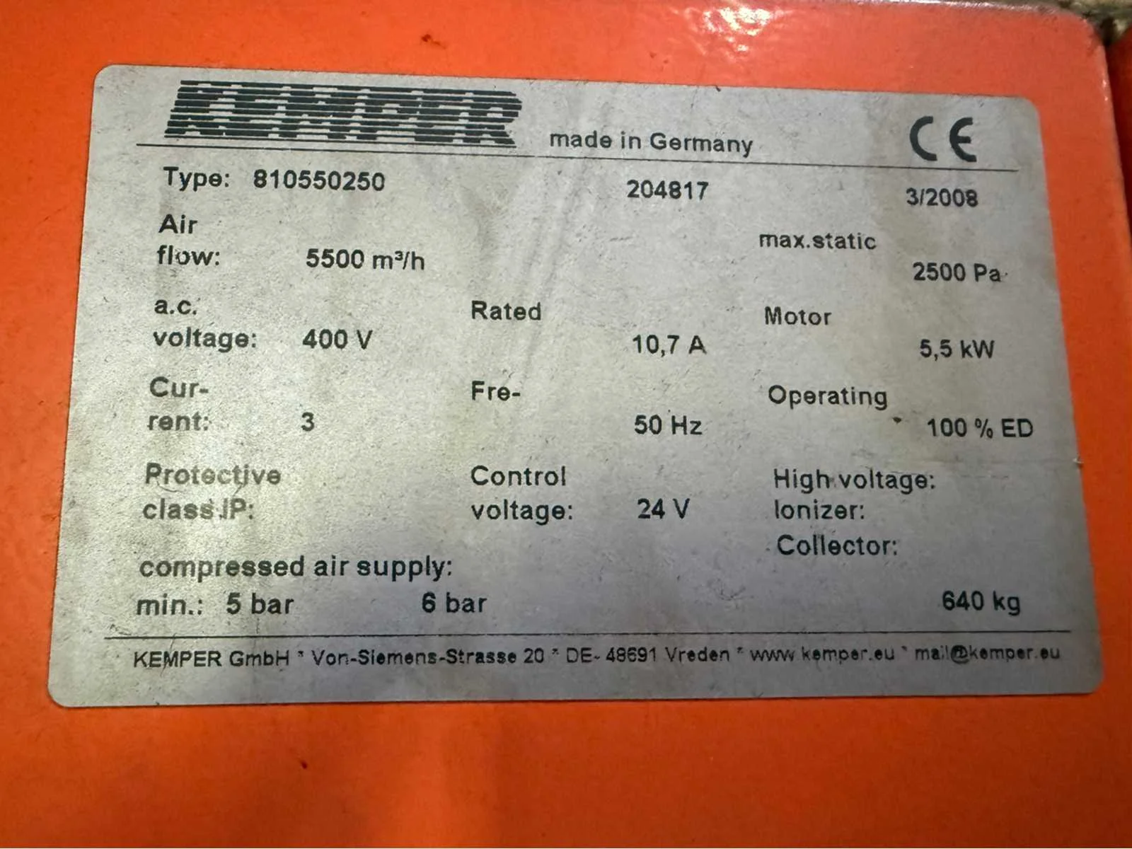2008 kemper system 8000 model: 810550250 lasdampafzuiginstallatie 5500m3/h