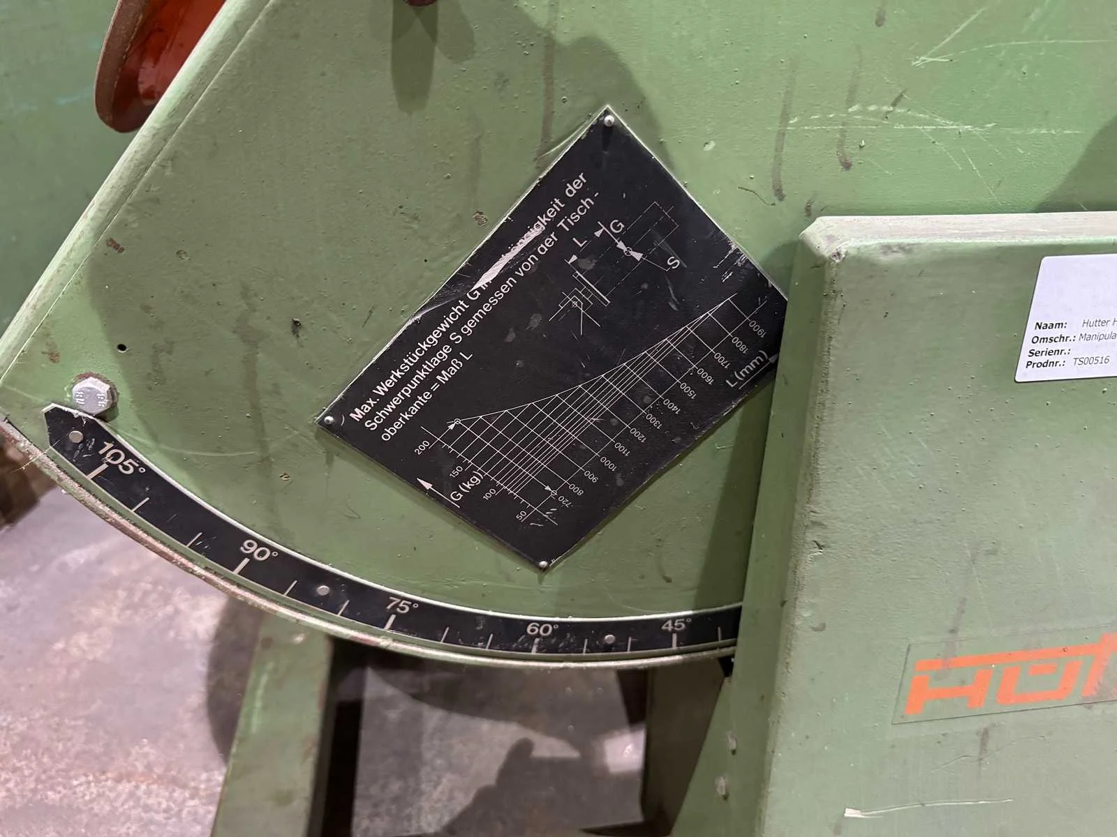 Merk: Hutter Type: HSD200 Draagcapaciteit: 200kg Kantelbaar: true Horizontaal: true Verticaal: true Draaisnelheid: 2rpm Tafel Ø: 350mm Voetbediening: true