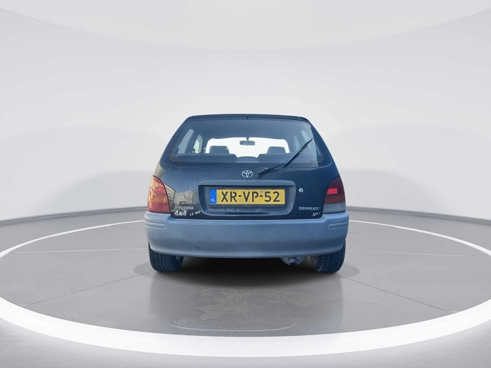 Kenteken: XR-VP-52 Merk: Toyota Model: Starlet Type: 1.3-16V XLi Bouwjaar: 1999 Afgelezen kilometerstand: 253816km Cilinderinhoud: 1332cc Vermogen (kW): 55kW Brandstof: Benzine Chassisnummer: JT152EP9100486365 Laadvermogen: 0kg Datum eerste toelating: 1999-01-25 Datum eerste toelating (NL): 1999-01-25 APK vervaldatum: 2026-01-16 Vermogen (pk): 75hp Aandrijving: FWD Aantal zitplaatsen: 5 Maximaal trekgewicht ongeremd: 400kg Maximaal trekgewicht geremd: 900kg Kleur: zwart Transmissie: Handgeschakeld Emissieklasse: 2 Aantal deuren: 2 Aantal sleutels: 1 Ledig gewicht: 820kg Bruto BPM (NL): 2170€ Aantal cilinders: 4 Carrosserie: hatchback CO2-uitstoot NEDC: 163 Carfax Link: https://was.carfax.eu/v0/api/ccdid/5100016408/svc/201/vinreg/XRVP52/checksum/eyJhbGciOiJIUzI1NiIsInR5cCI6IkpXVCJ9.eyJleHAiOjE3NjMzNzY3Mjh9.5o0B1RIKJ-HDrZ9uIt221YpTRcDdwdCO54mlO1lJ21I Start en rijdt: Start and drive startinformatie : Start en rijdt