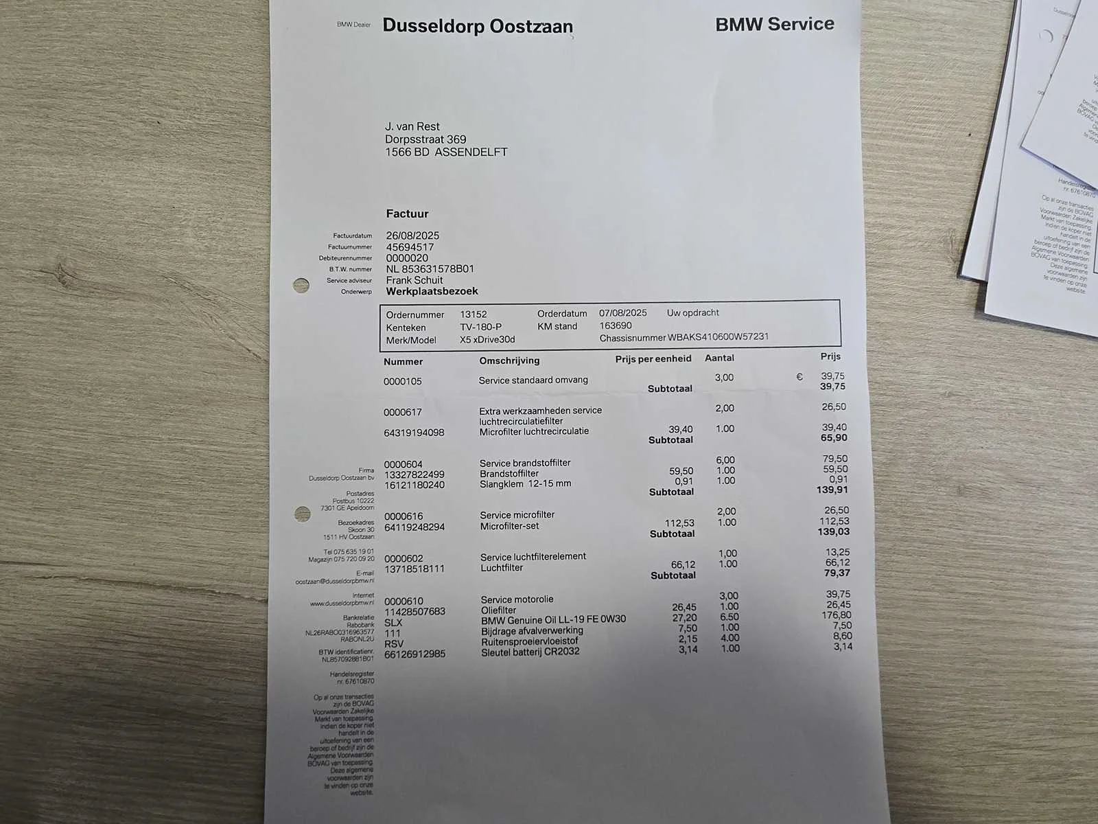 Let op! Voor Nederlandse kopers en kopers van buiten de EU komt de Rest-BPM bovenop het biedbedrag. De Rest-BPM bedraagt € 3103 en is niet inbegrepen in de totaalprijs bij het bieden. De totaalprijs is dus exclusief BPM. Deze regeling geldt uitsluitend voor kopers binnen Nederland en kopers buiten de EU. Voor kopers binnen de EU wordt een borg gevraagd die gelijk is aan de BPM. De Rest-BPM wordt na de correcte registratie van het voertuig in het vestigingsland binnen de EU per bank aan de koper teruggestort. Voor verdere informatie over BPM kunt u de veilinginformatie raadplegen, welke bovenaan de homepage van onze website te vinden is. Indien u vragen heeft over de BPM-regeling, kunt u contact opnemen met onze klantenservice en/of de belastingdienst. Kenteken: TV-180-P Merk: BMW Model: X5 Type: xDrive30d High Exec. Bouwjaar: 2017 Afgelezen kilometerstand: 165828km Cilinderinhoud: 2993cc Vermogen (kW): 190kW Brandstof: Diesel Chassisnummer: WBAKS410600W57231 Laadvermogen: 0kg NAP status: Geen oordeel Datum eerste toelating: 2017-07-18 Datum eerste toelating (NL): 2018-11-01 APK vervaldatum: 2026-05-02 Vermogen (pk): 258hp Aantal zitplaatsen: 5 Maximaal trekgewicht ongeremd: 750kg Maximaal trekgewicht geremd: 3500kg Kleur: bruin Transmissie: Automaat Emissieklasse: 6 Aantal deuren: 4 Aantal sleutels: 1 Ledig gewicht: 2045kg Bruto BPM (NL): 13053€ Aantal cilinders: 6 Carrosserie: stationwagen Carfax Link: https://was.carfax.eu/v0/api/ccdid/5100016408/svc/201/vinreg/TV180P/checksum/eyJhbGciOiJIUzI1NiIsInR5cCI6IkpXVCJ9.eyJleHAiOjE3NjQ1ODY5MDB9.V4BYNjJGzve_Qzu-0rkh7O6B4ZEAMKs5Ay42MyTws1E Start en rijdt: Start and drive startinformatie : Start en rijdt