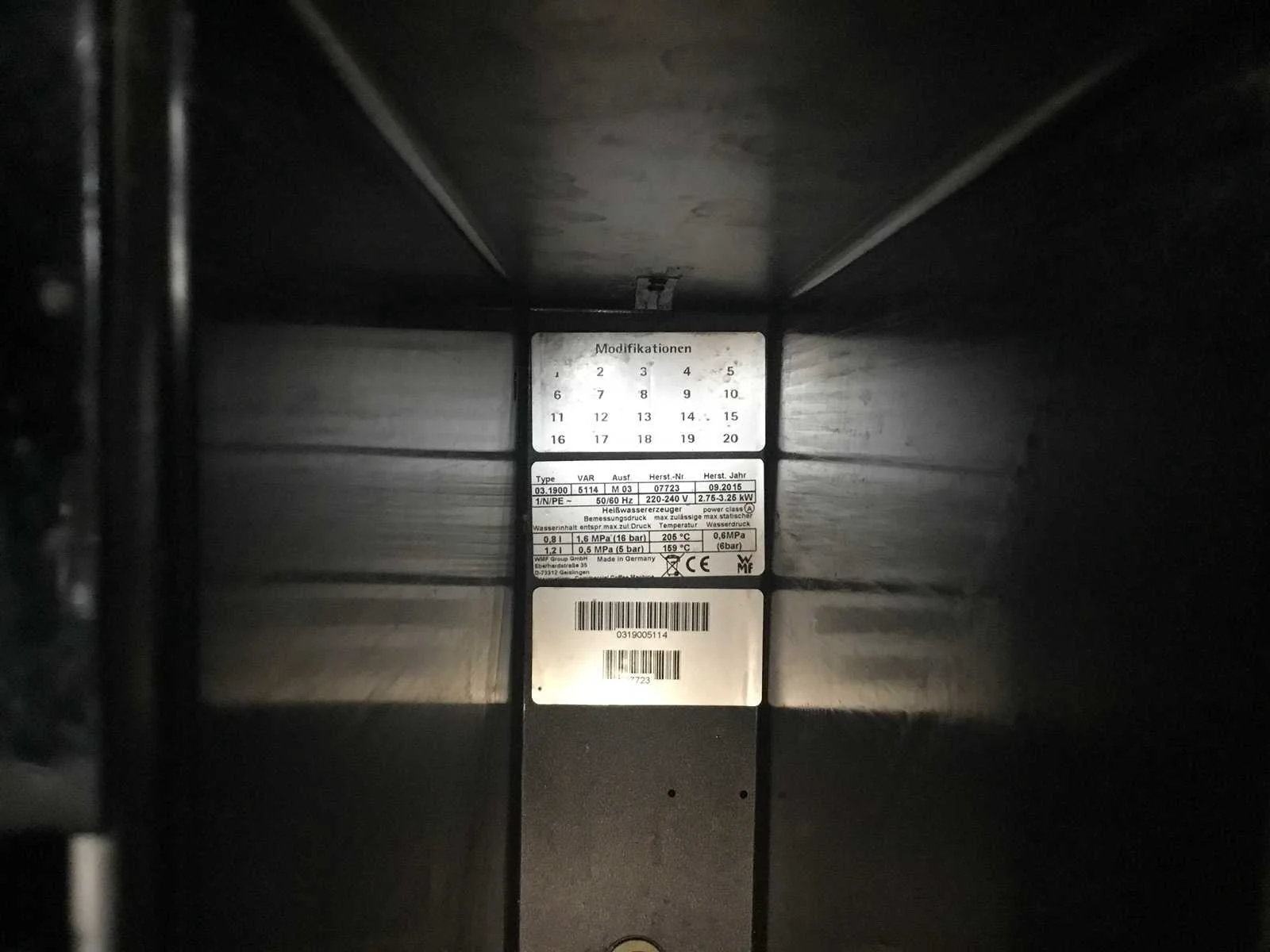Werkend. Inclusief melkkoeling Merk: WMF Type: 1500S Aansluiting: 230V Aantal groepen: 2pcs Digitale uitlezing: true Capaciteit.: 3.25kW Rvs: true Totale afmeting L: 560mm Totale afmeting Breedte: 590mm Totale afmeting Hoogte: 670mm