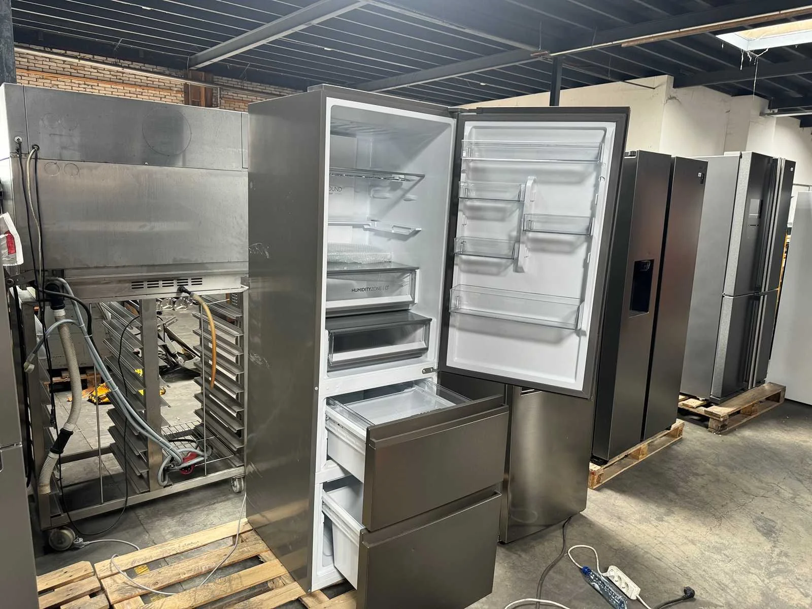 Geroutineerde Koel vries combinatie met ligt transportschade. Vriezer apart doormiddel van deur. Vriezer heeft 3 lades Merk: Lg Model: Gbb61pzjen Deur opent naar: Rechts Netto inhoud koelvakken: 234l Netto inhoud Vriesvak: 107l Plaats vriesvak: Onderzijde Vriesvak: 3 Vermogen: 130W Spanning: 230V Kleur: Zilver Lengte: 60cm Breedte: 68cm Hoogte: 186cm